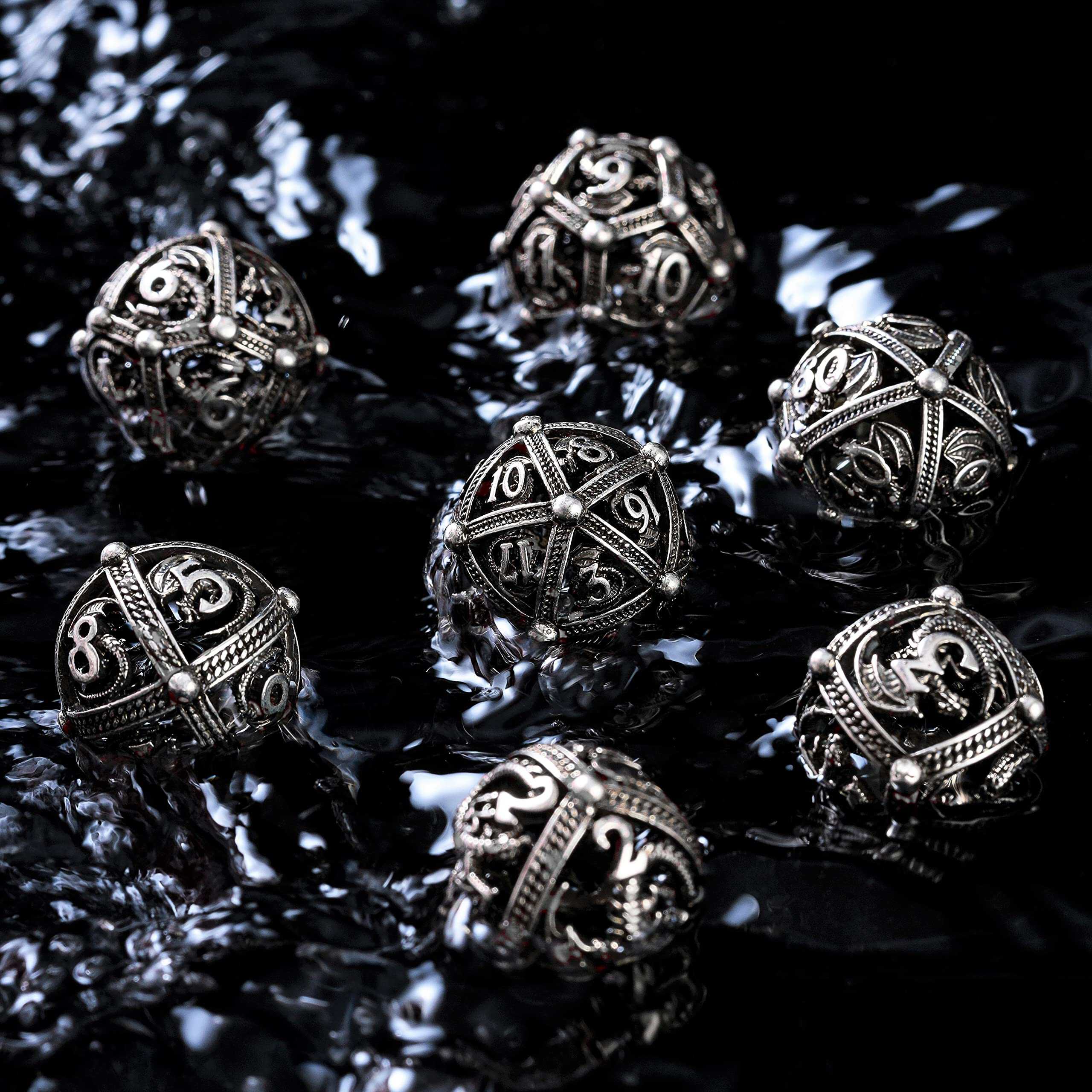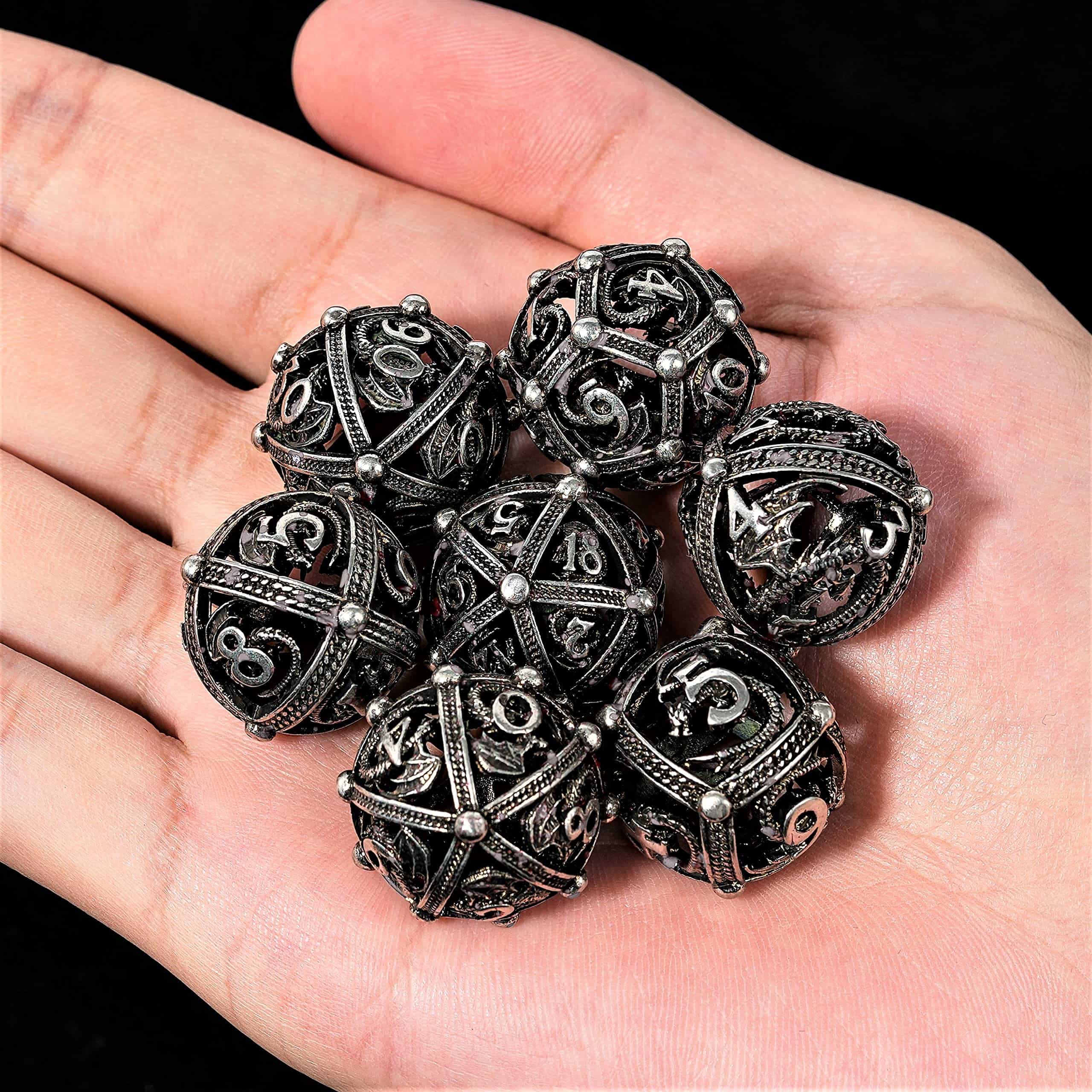 Hechos con dimensiones más grandes de lo habitual utilizando metal duradero pero liviano, estos dados de DND se sienten increíbles y se desempeñan de manera excelente en cualquier situación de campaña. ¡Haz de tu próxima noche de juegos una victoria abrumadora!