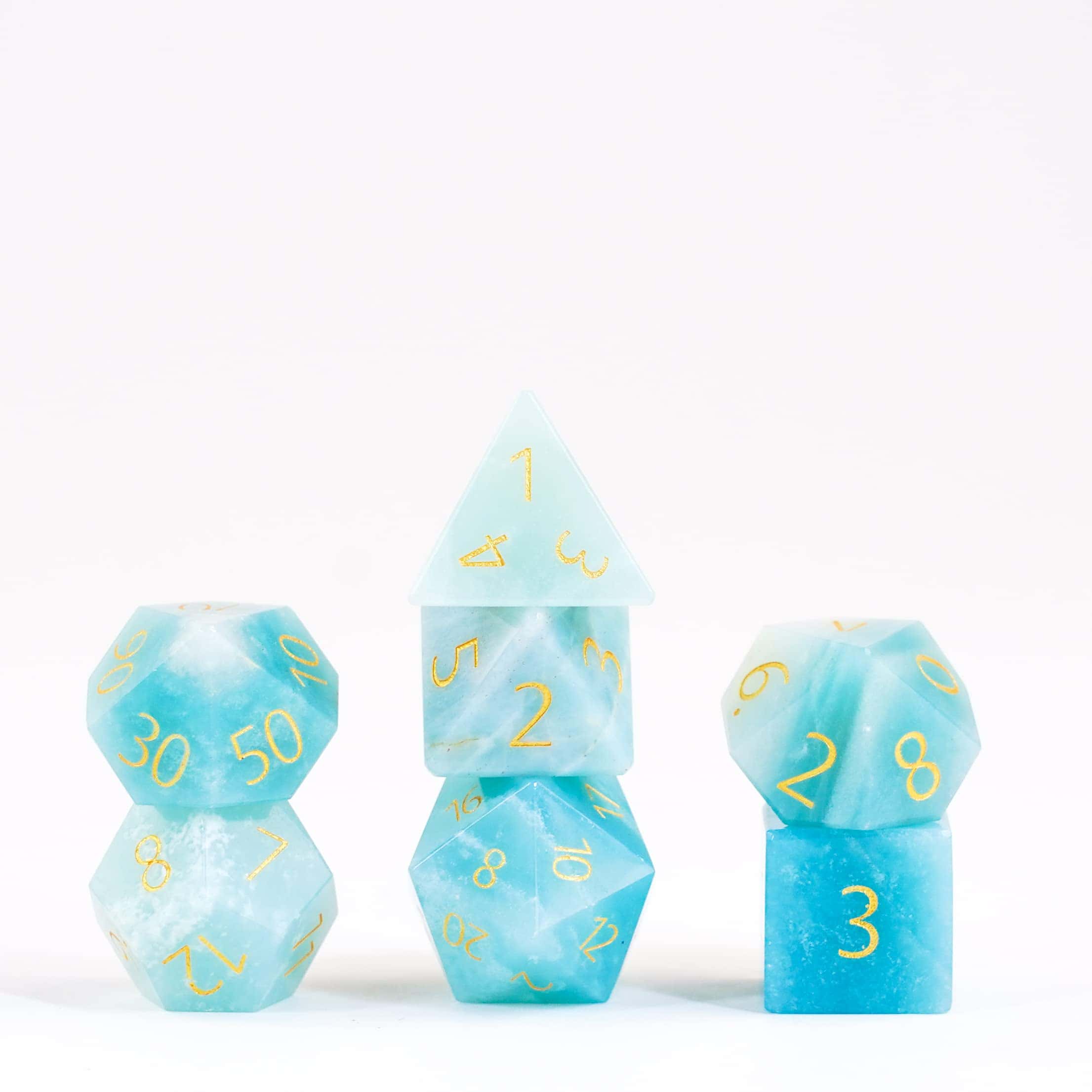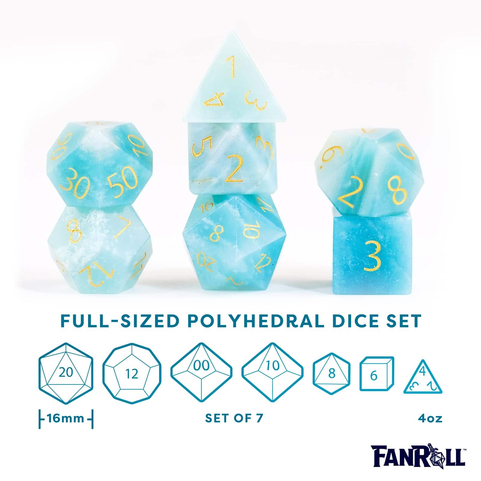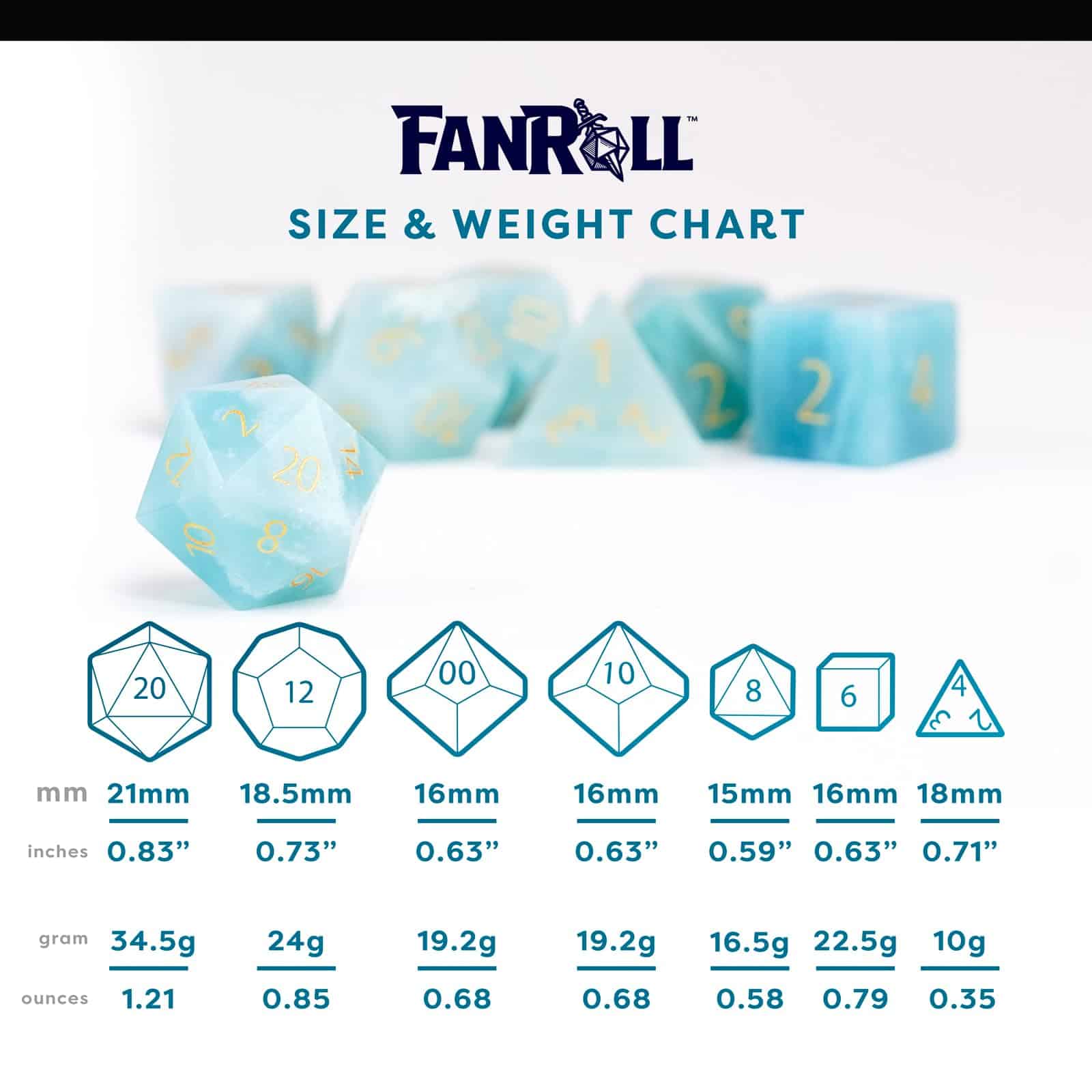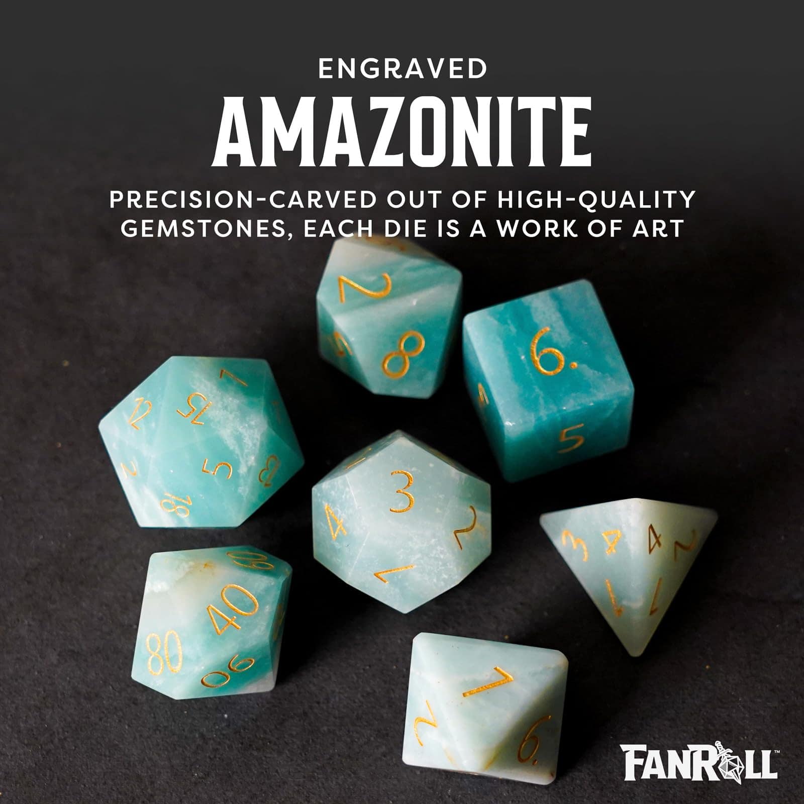 Set de Dados DND FanRoll de Metallic Dice -Amazonita Grabada