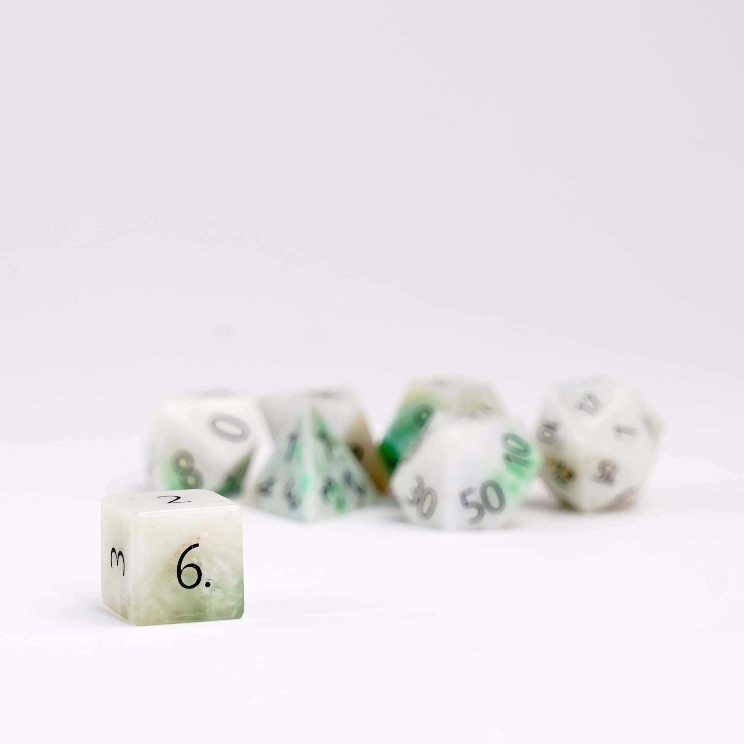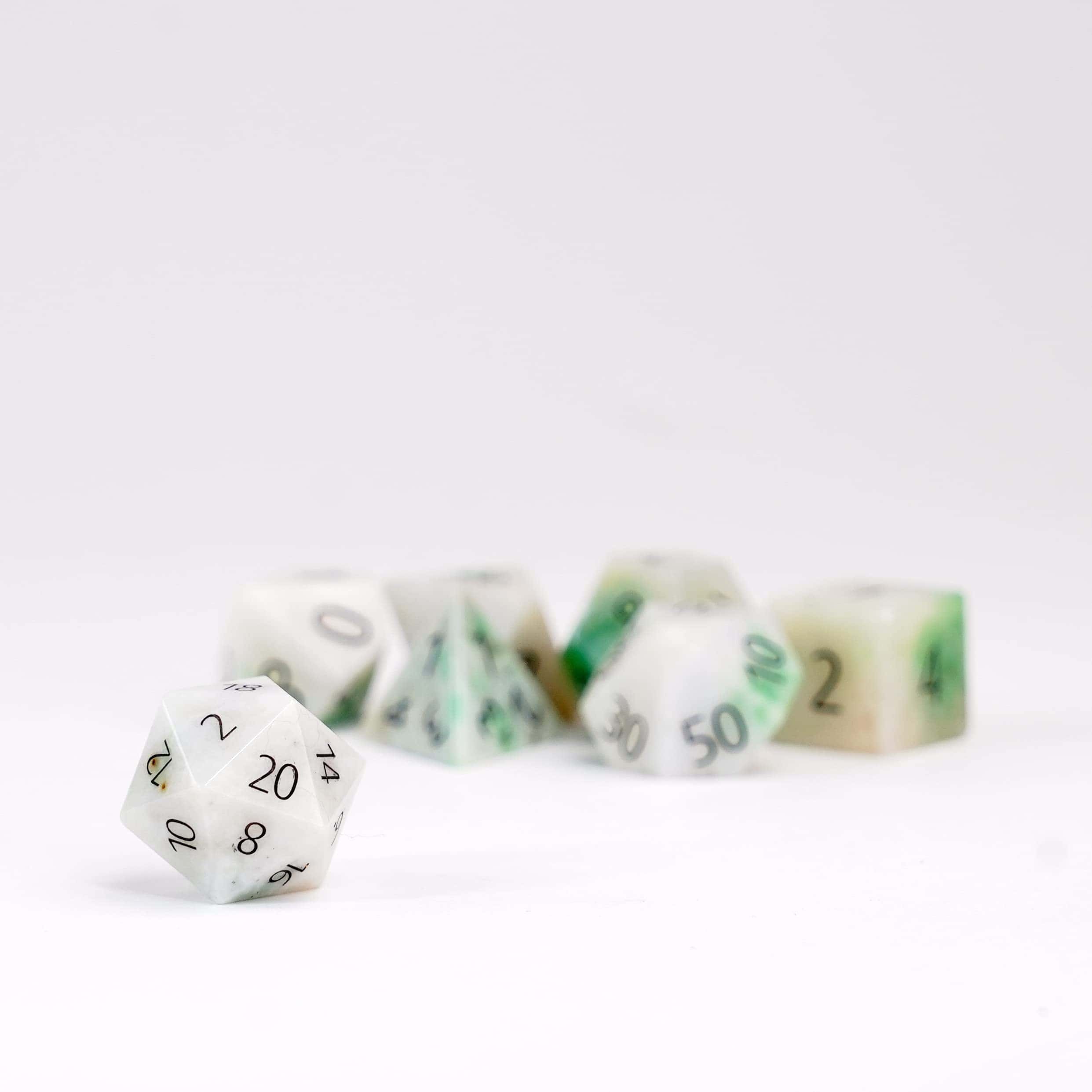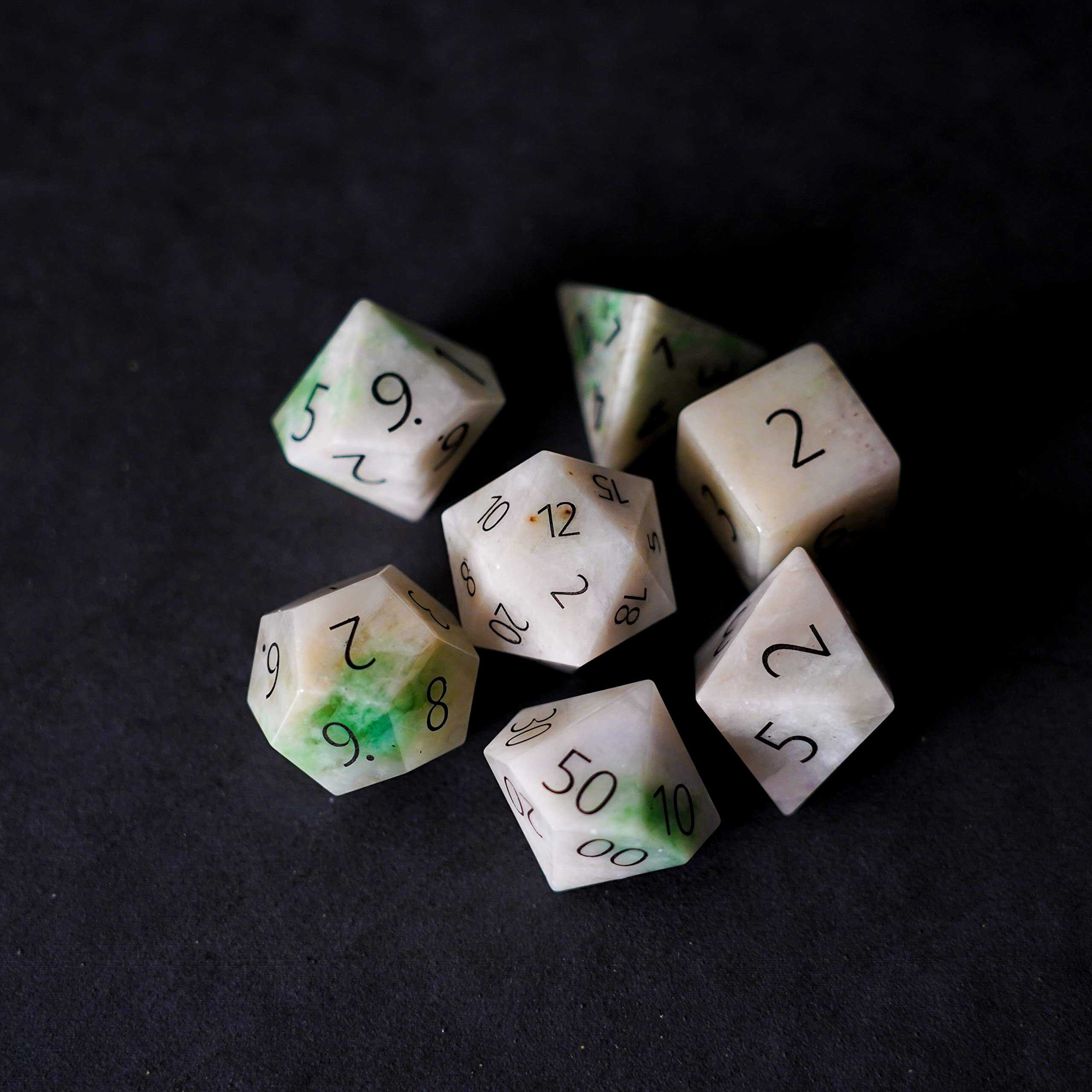 Nuestros Gemstone dice son inigualables. Tallados con precisión en gemas de alta calidad, cada dado es una obra de arte con números grabados. Desde el primer lanzamiento apreciarás el peso más pesado en comparación con los dados tradicionales. Recomendamos lanzar cualquier dado de piedra en superficies acolchadas. Compromiso con la Calidad: Cada set es minado a mano y elaborado con cuidado y precisión. Fácil de Transportar: Lleva estos dados contigo a donde vayas. Nuestros dados están envueltos individualmente y se colocan en un estuche protector para maximizar la protección. MDG fue fundado en 2013 en EE. UU. por un entusiasta de los dados de 22 años en Indiana que estaba cansado de no tener acceso a dados de metal de calidad. Lo que comenzó con dados de metal se ha expandido a piedra, resina, madera y nuevos materiales innovadores. MDG se enorgullece de hacer los productos de más alta calidad con un toque personal y garantía del 100% de satisfacción. Un buen set de dados puede durar toda la vida, no te conformes con menos, elige calidad y personalidad!