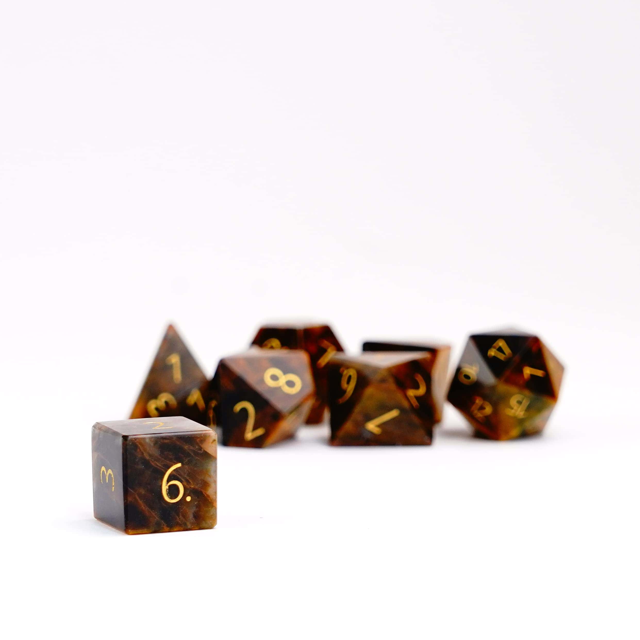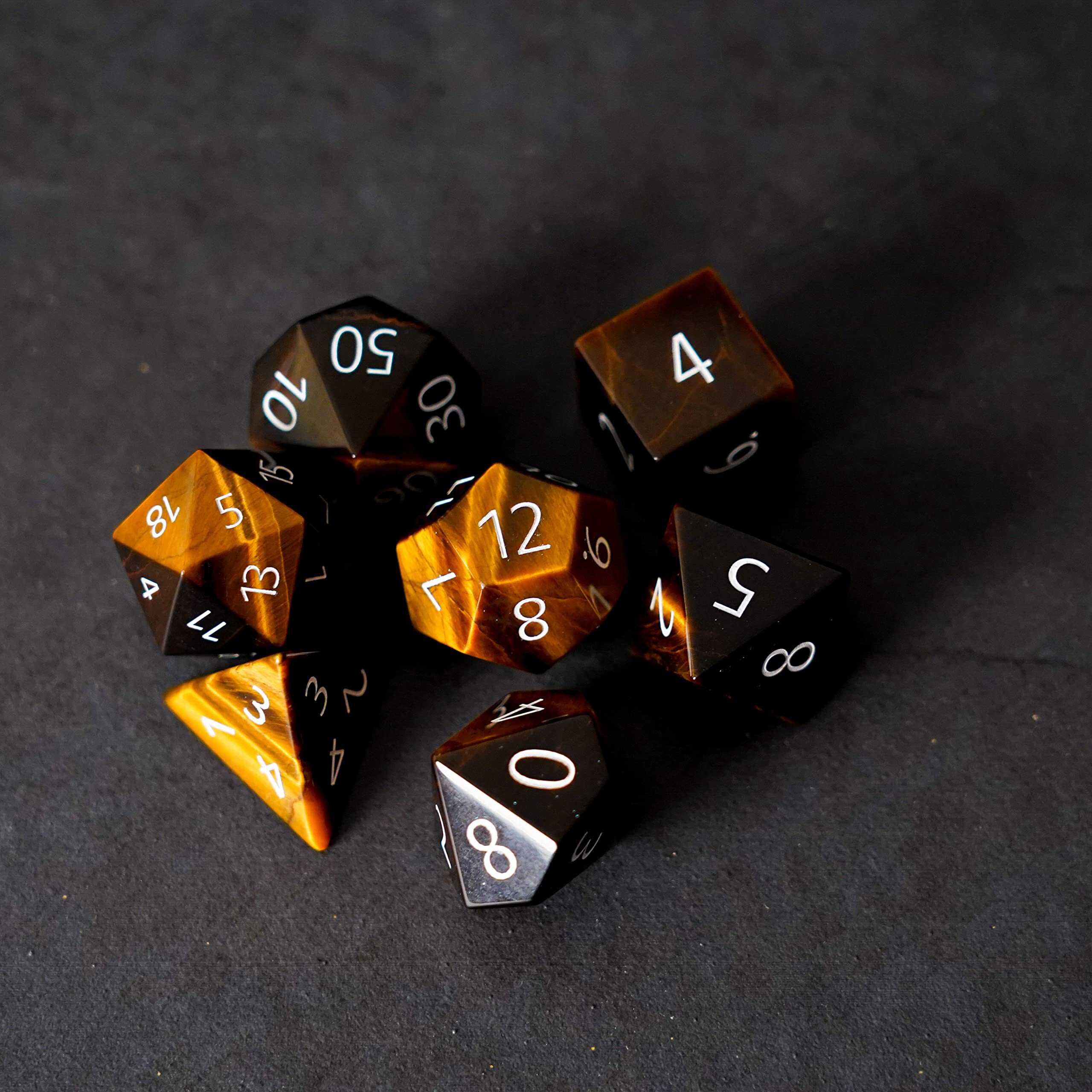 1. Nuestros dados de piedras preciosas son incomparables. Tallados con precisión en piedras de alta calidad, cada dado es una obra de arte con números grabados.