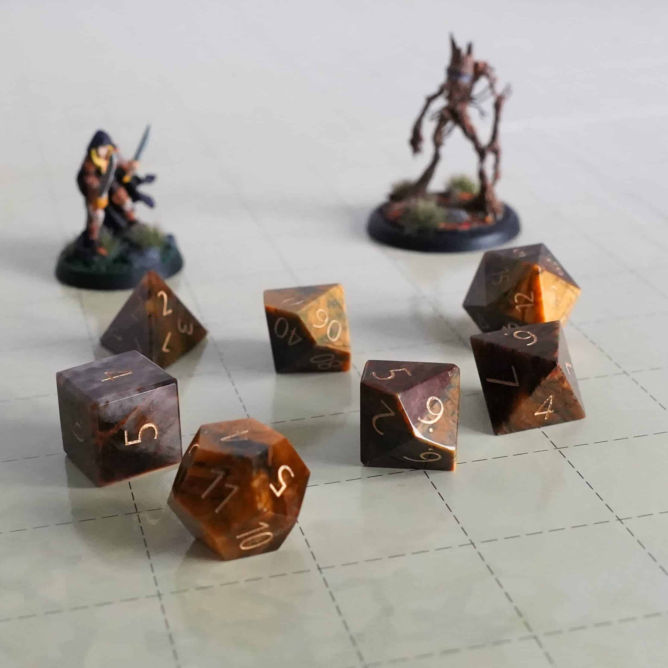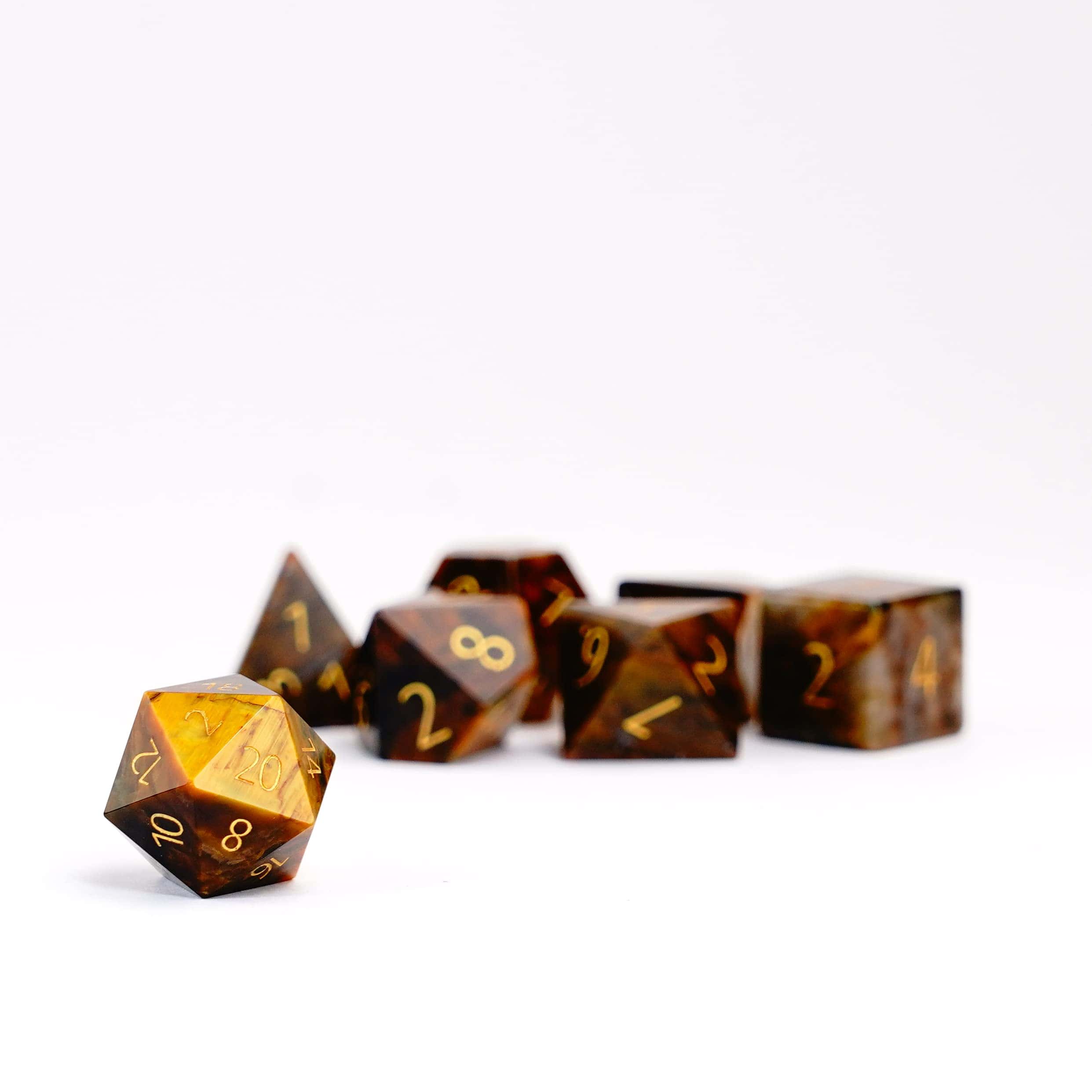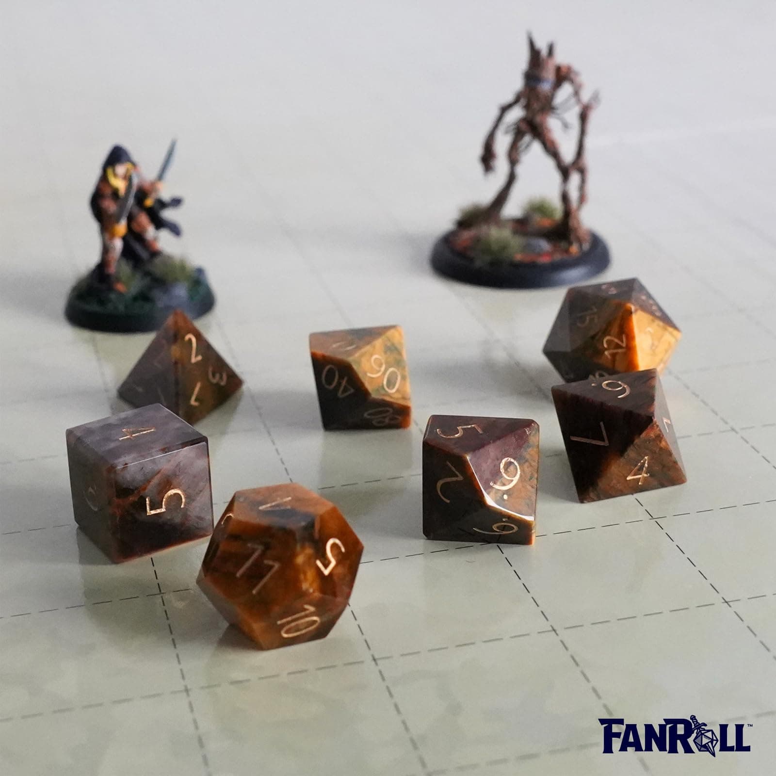 Set de dados DND FanRoll de Metallic Dice -Ojo de Tigre Matr