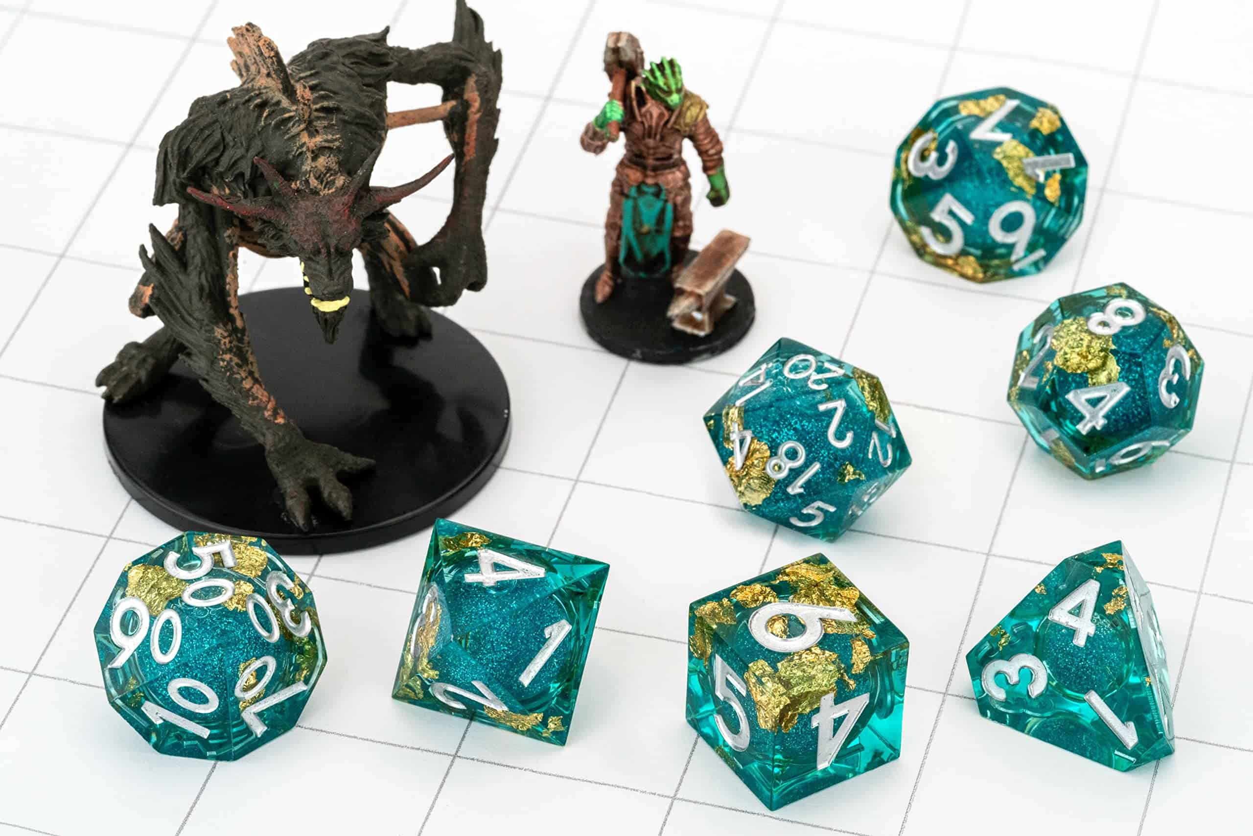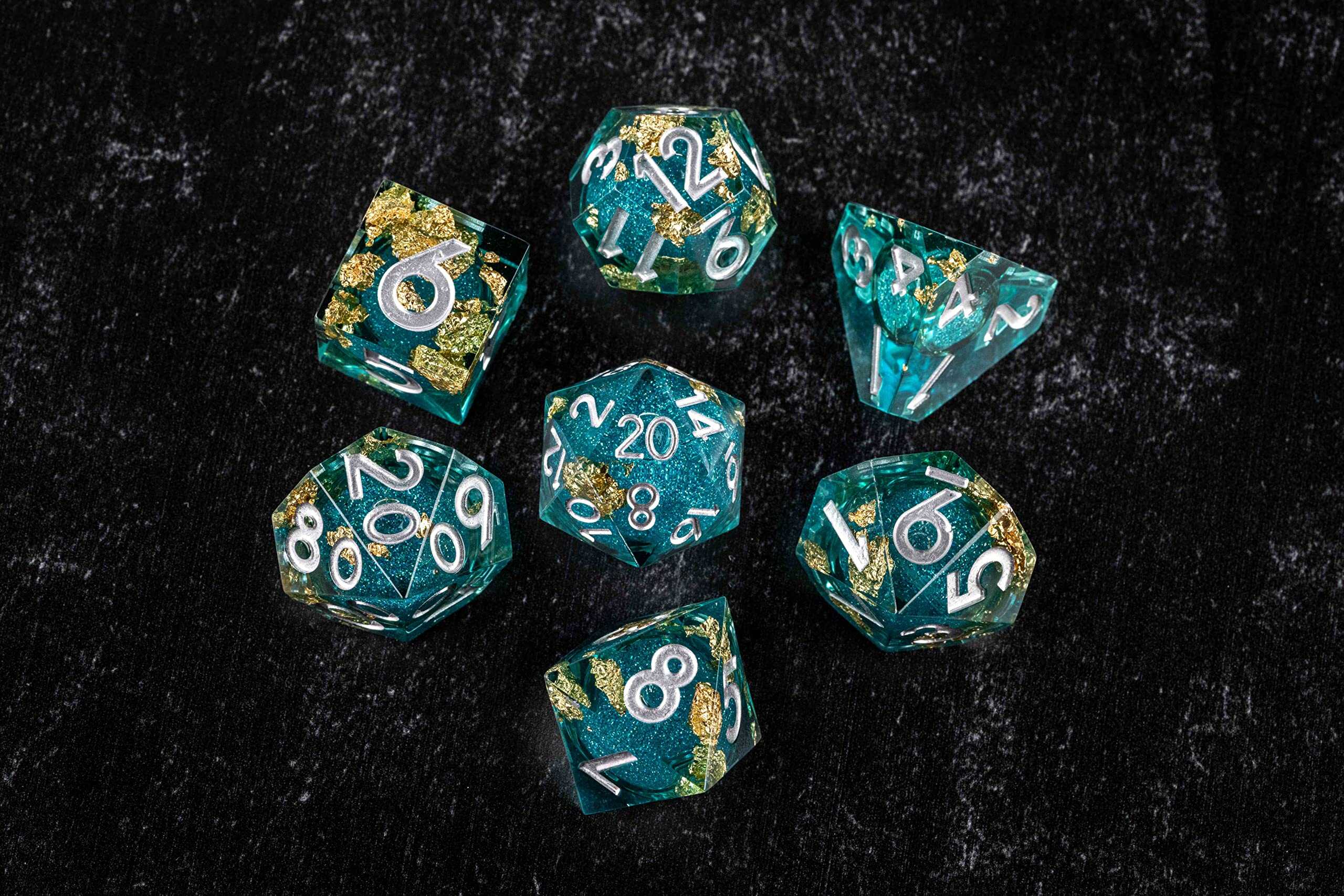 Dados artesanales de Metallic Dice Games con núcleo líquido Elixir afilado para Dungeons and Dragons. MDG fue fundado en 2013 en EE. UU. por un entusiasta de los dados de 22 años en Indiana, que estaba harto de no tener acceso a dados de metal de calidad. MDG se enorgullece de hacer productos de la más alta calidad con un toque personal y garantía de satisfacción del 100%. Un buen set de dados puede durar toda la vida, no te conformes con menos, elige calidad y personalidad.