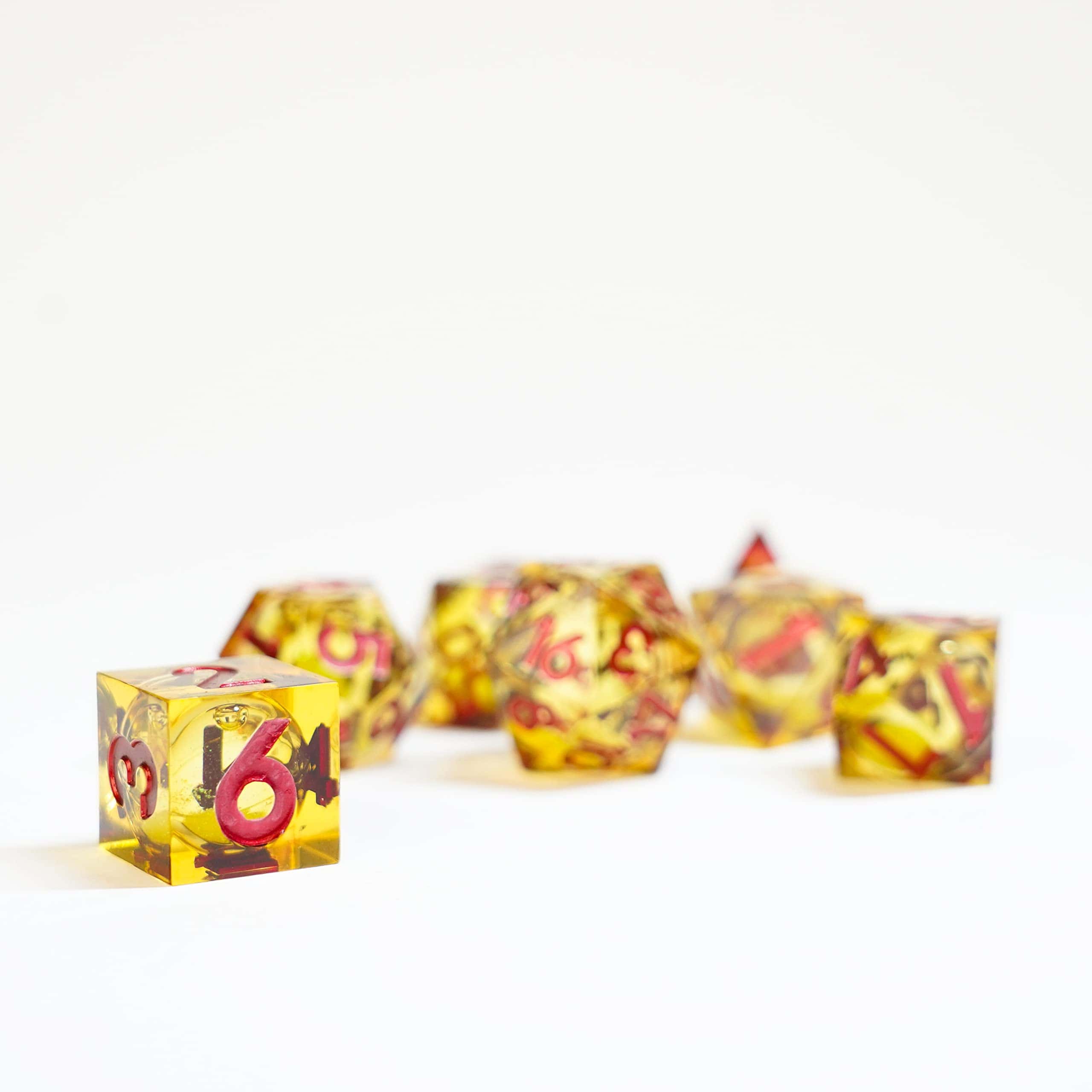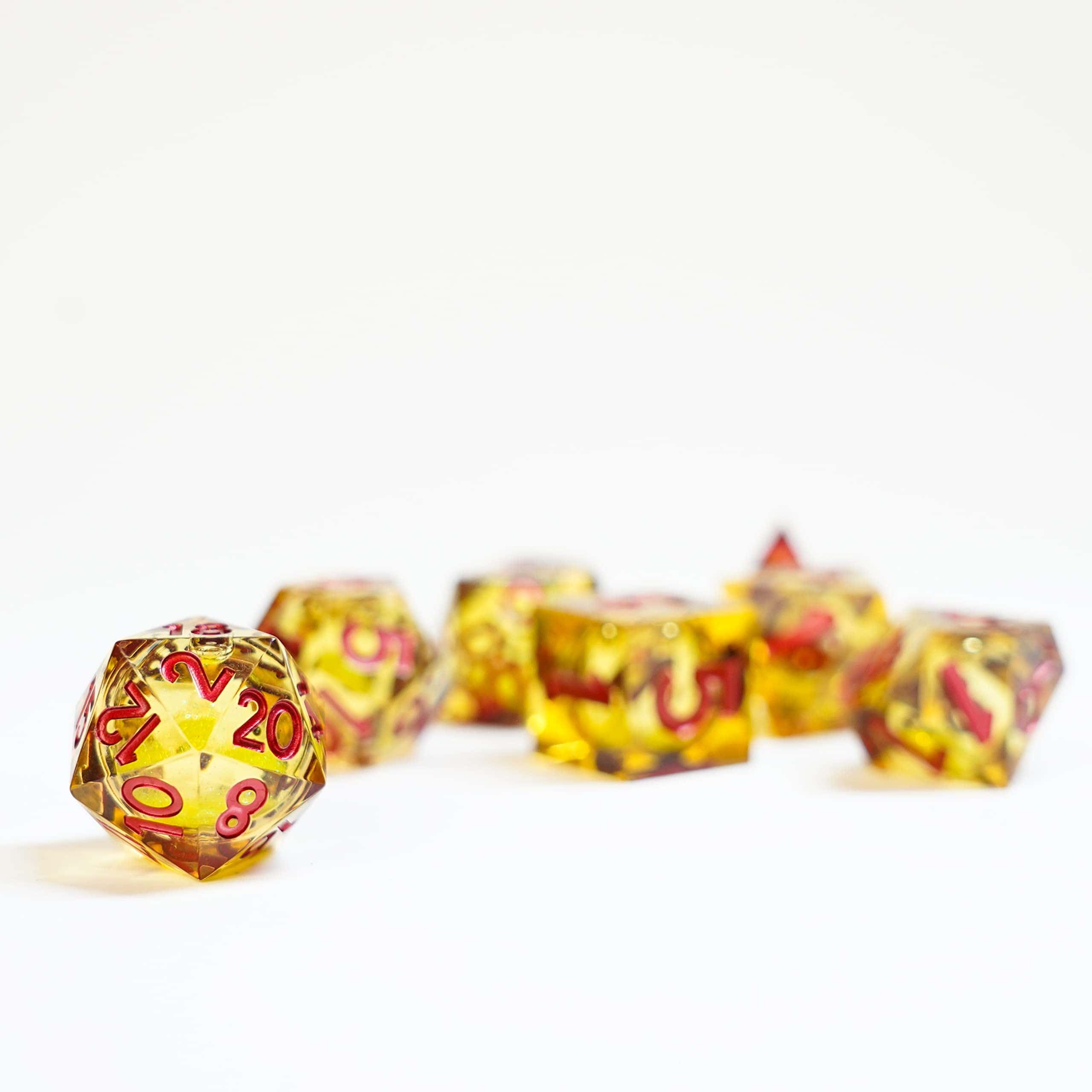 Dados Artesanales FanRoll by Metallic Dice Games con Borde Afilado y Núcleo Líquido para Dungeons and Dragons. MDG se fundó en 2013 en los EE. UU. por un entusiasta de los dados de 22 años en Indiana que estaba cansado de no tener acceso a dados de metal de calidad. MDG se enorgullece de hacer los productos de la más alta calidad con un toque personal y garantía del 100% de satisfacción. ¡Un buen set de dados puede durar toda la vida, no te conformes con menos, ve con calidad y personalidad!