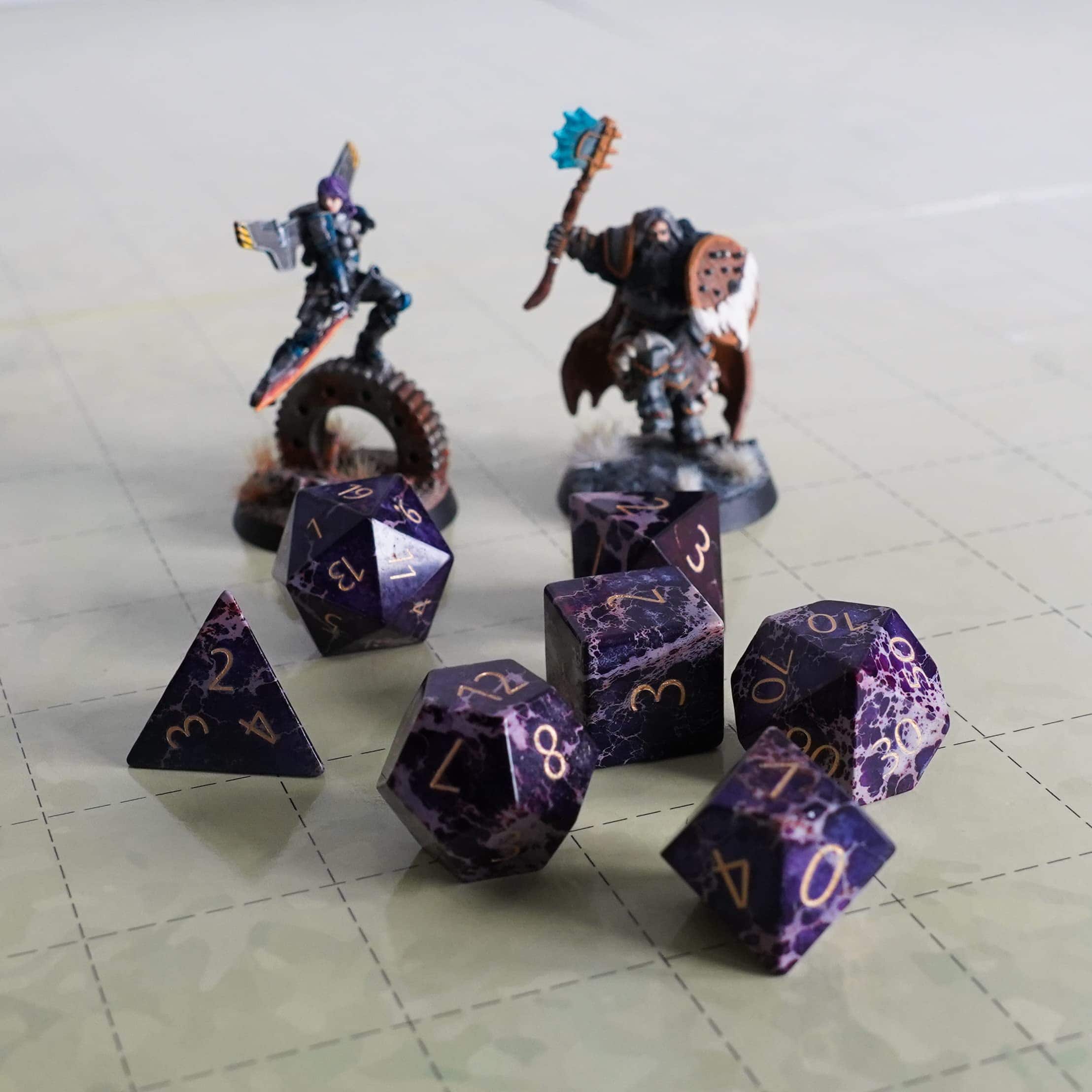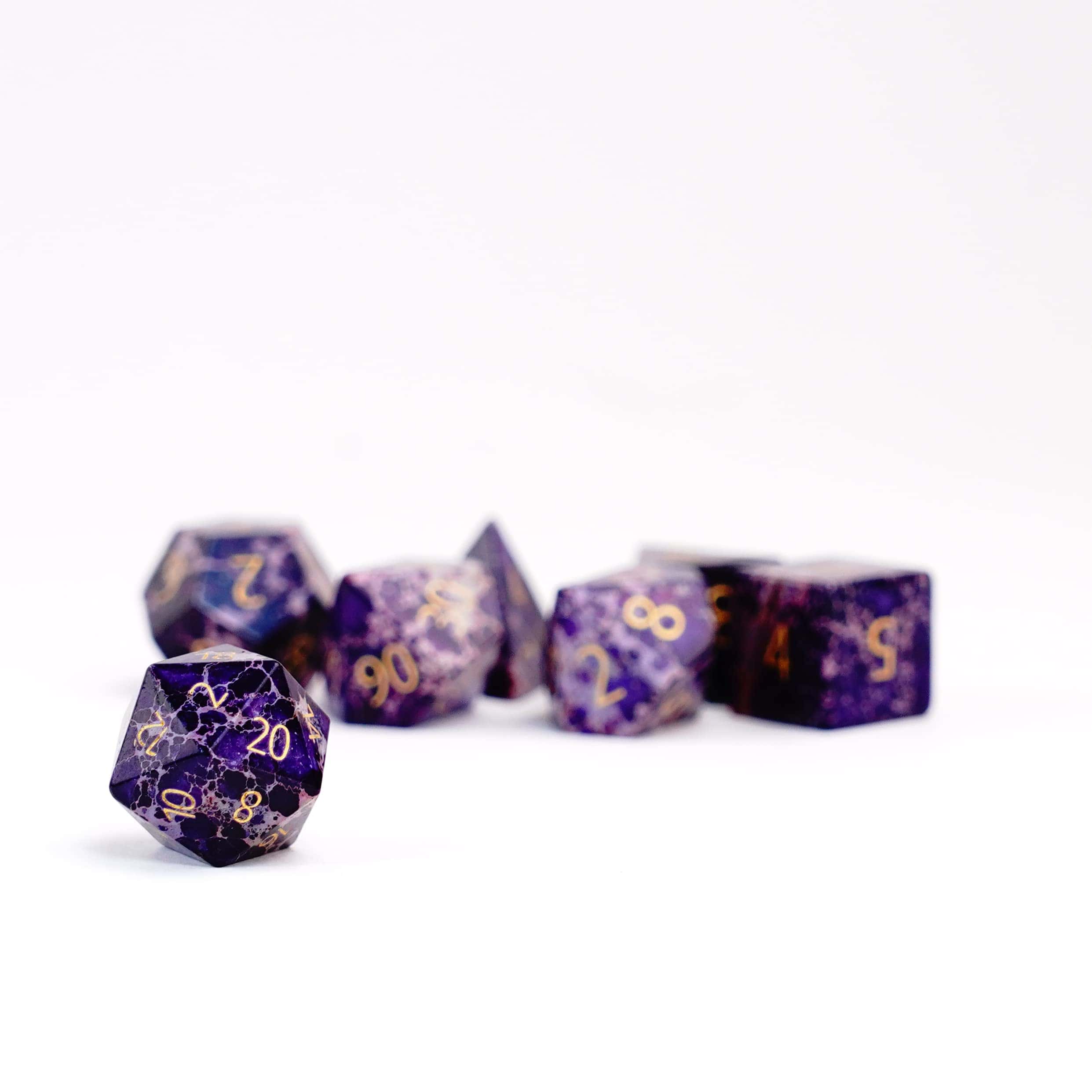 1. Nuestros dados de piedra preciosa son incomparables. Tallados con precisión en gemas de alta calidad, cada dado es una obra de arte con números grabados.