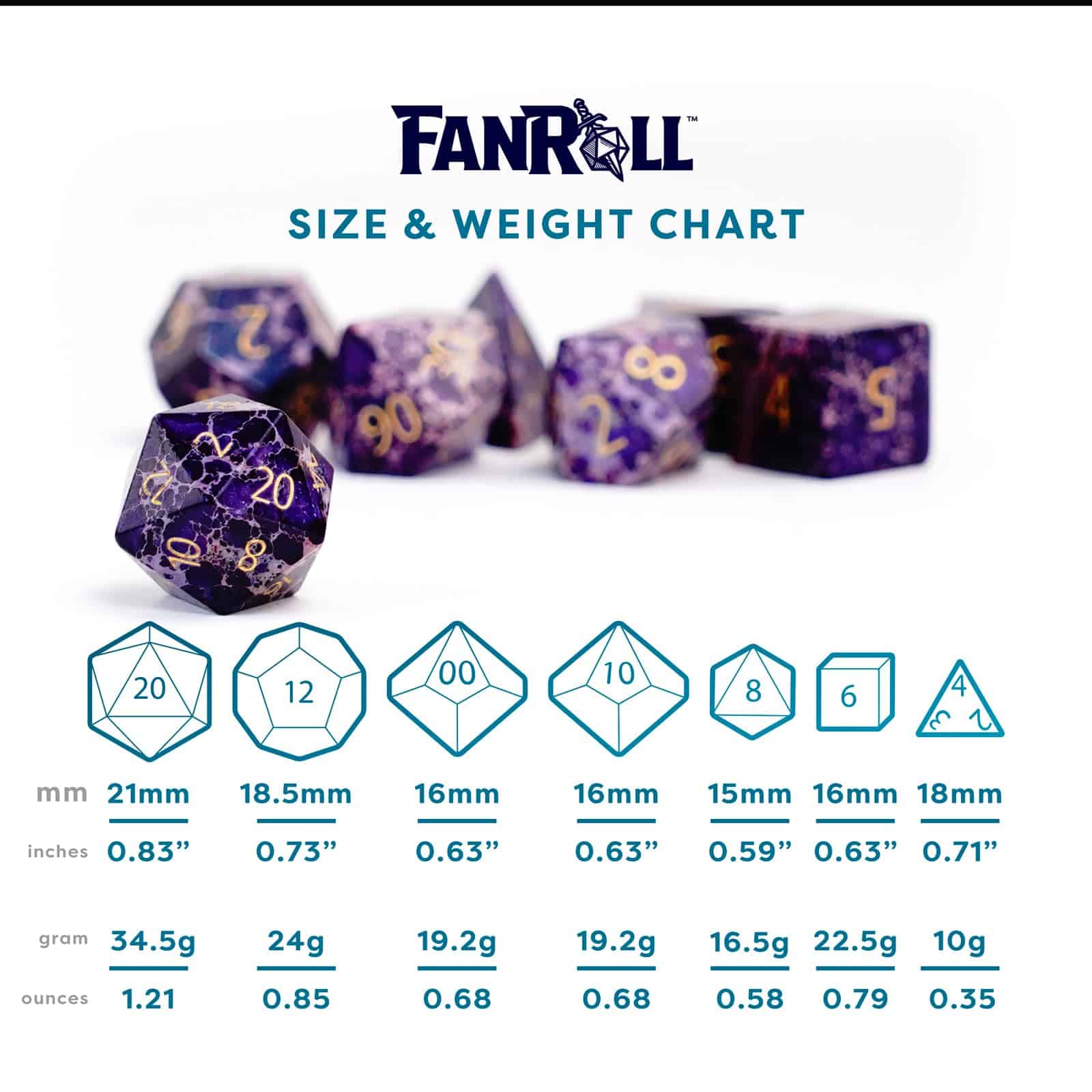 Set de Dados FanRoll de Metallic Dice Games 16mm en Piedra