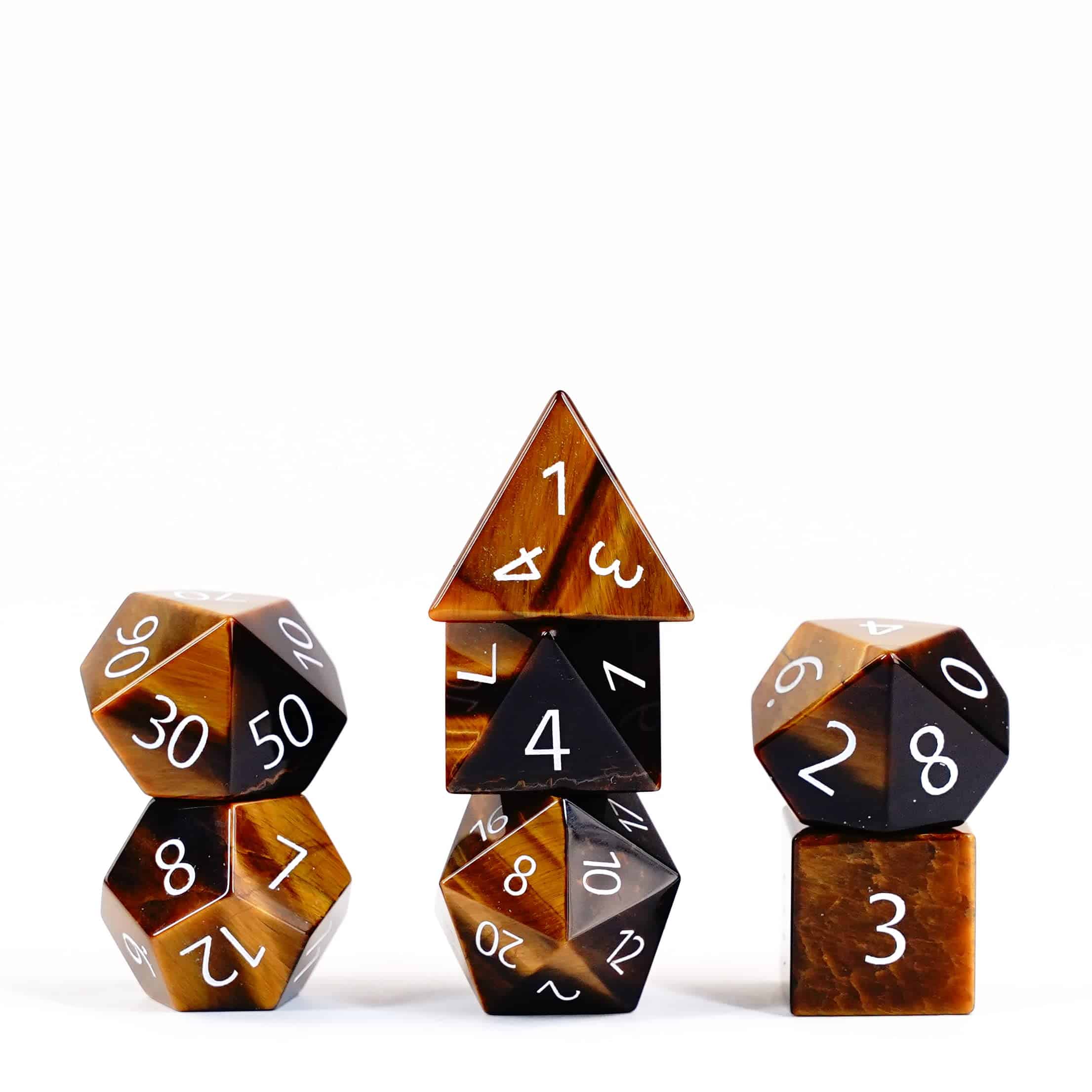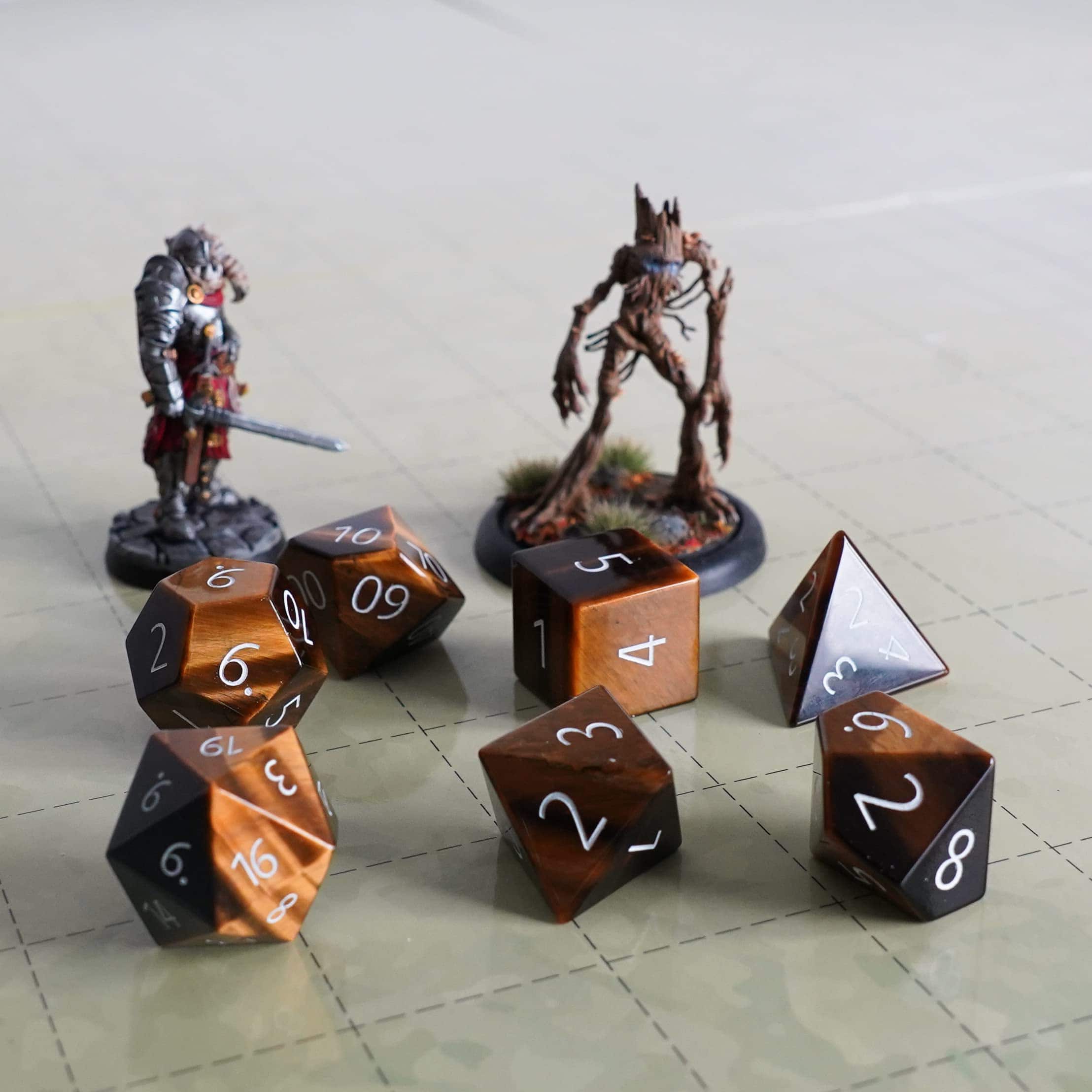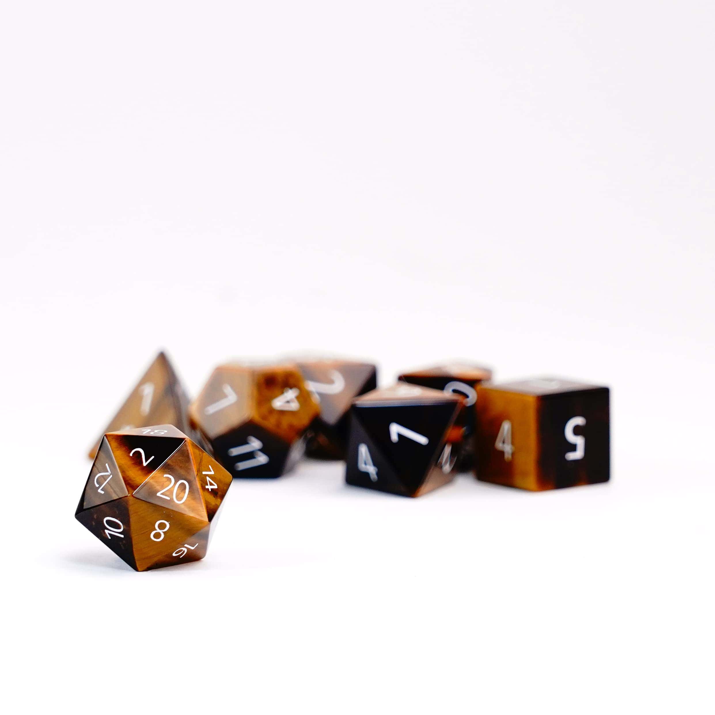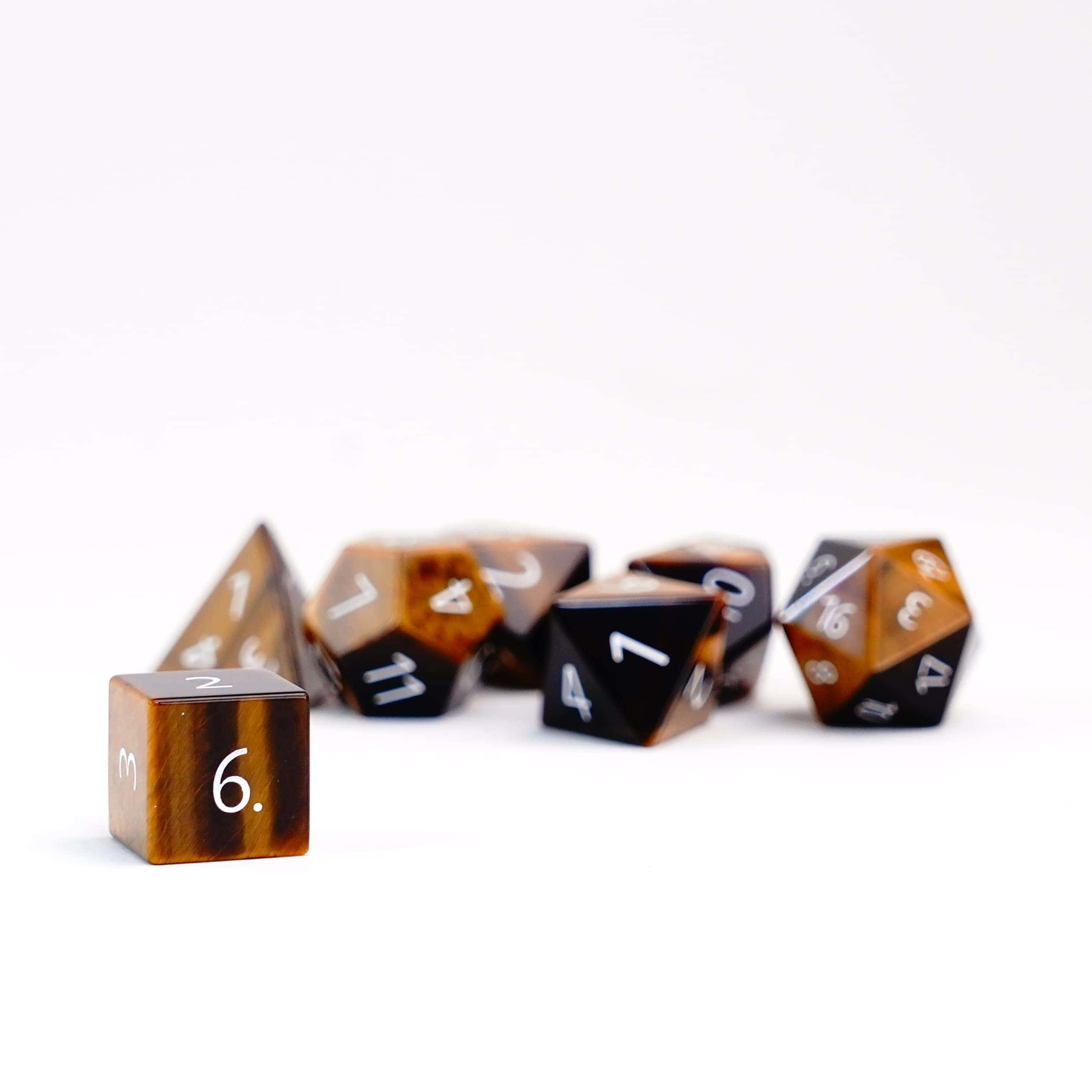 Con su peso sustancial y aspecto cautivador, este set de dados de piedras preciosas es la actualización perfecta para cualquier mesa de juego. También es un gran regalo para tu compañero de juegos favorito. Recomendamos lanzar dados de piedra en superficies acolchadas como nuestras bandejas de dados acolchadas.