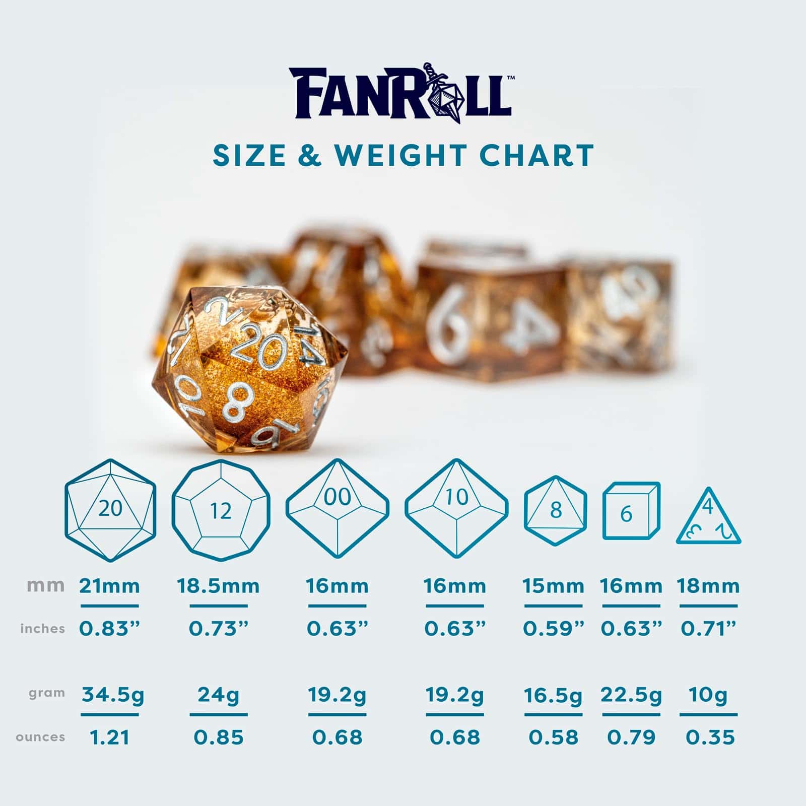 Set de Dados FanRoll de Metallic Dice Games, Núcleo Líquido