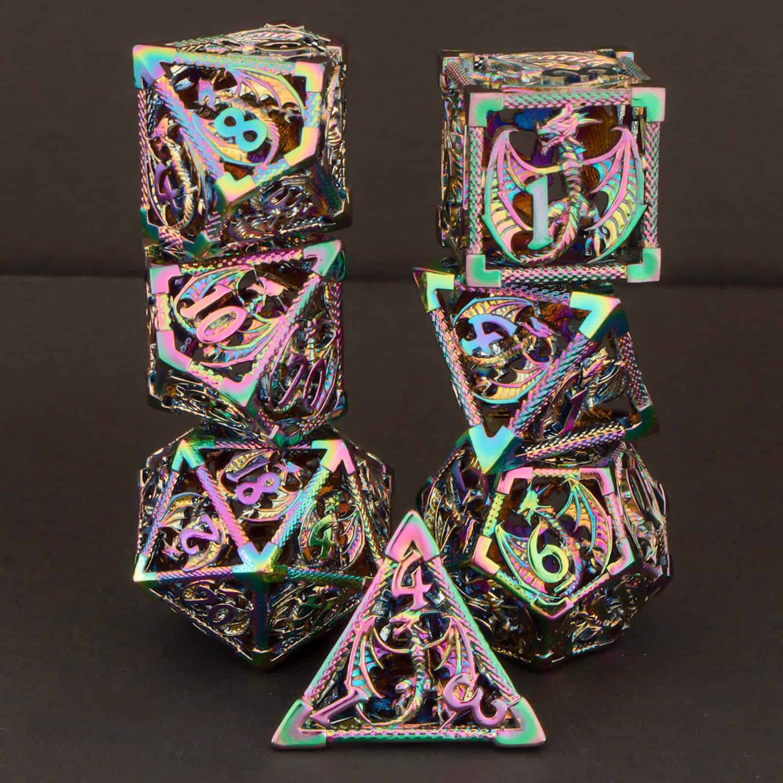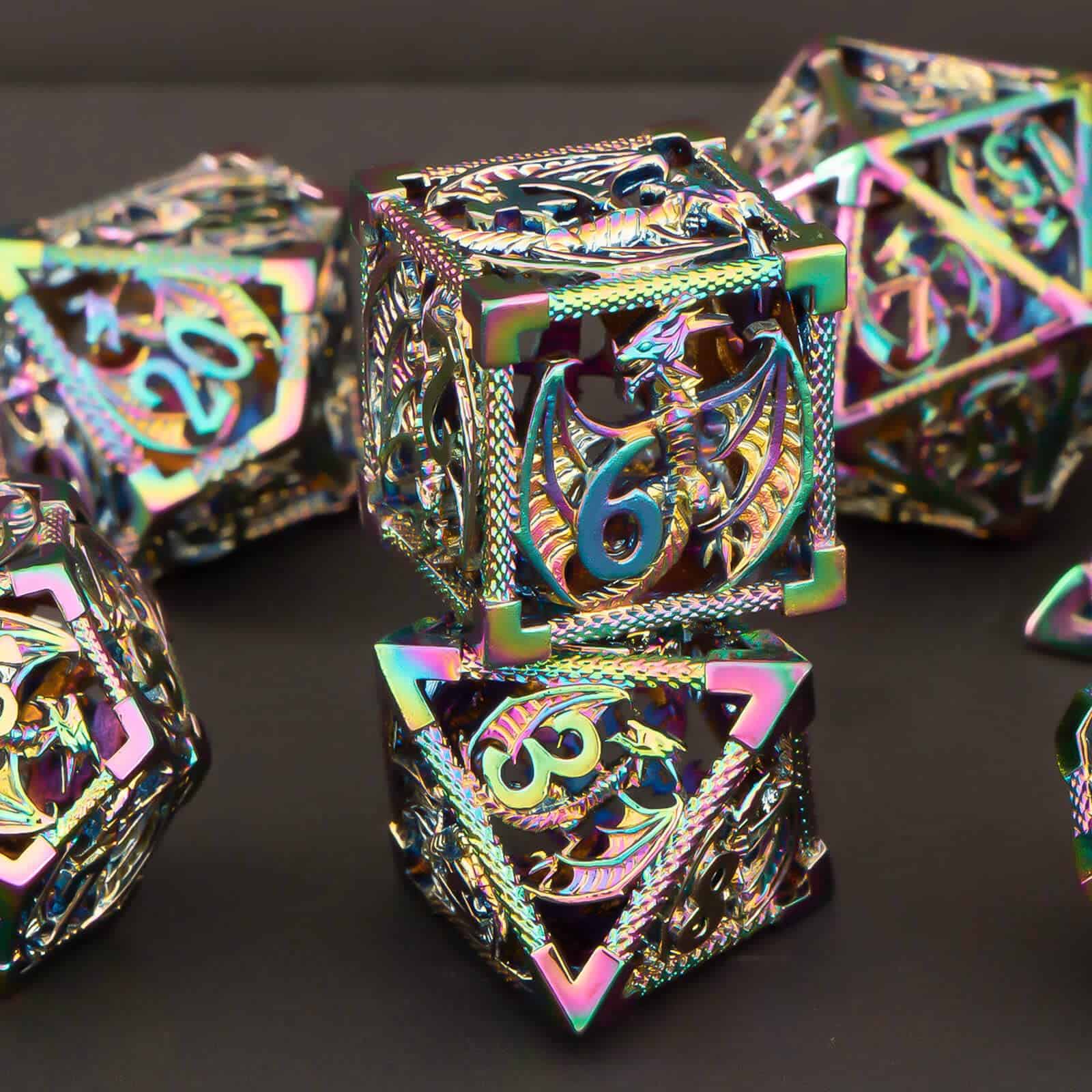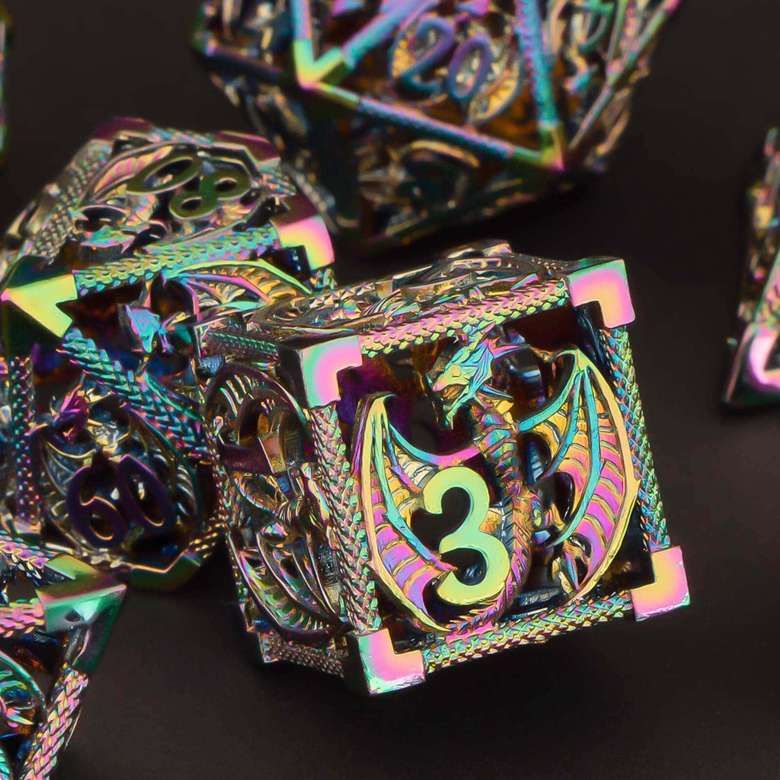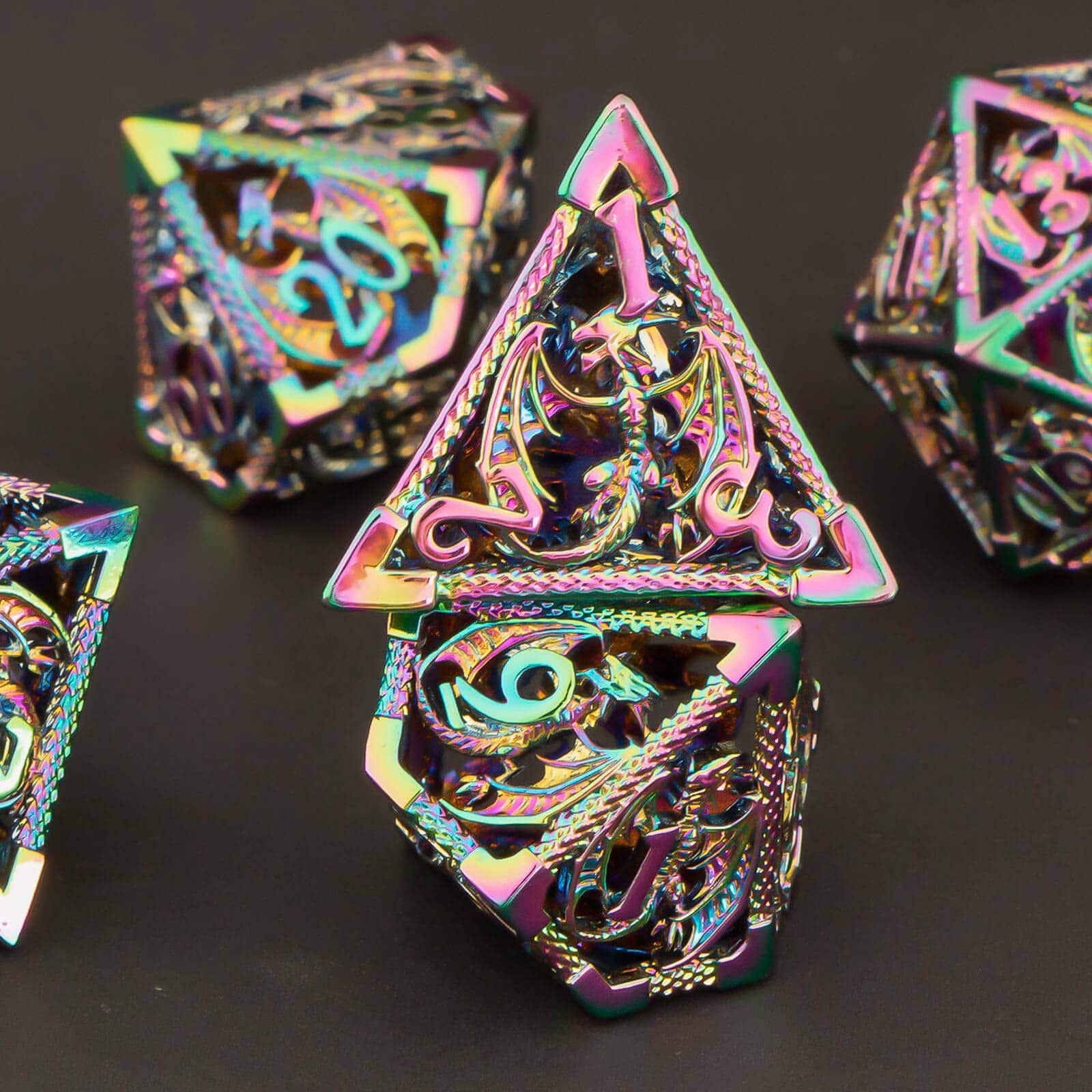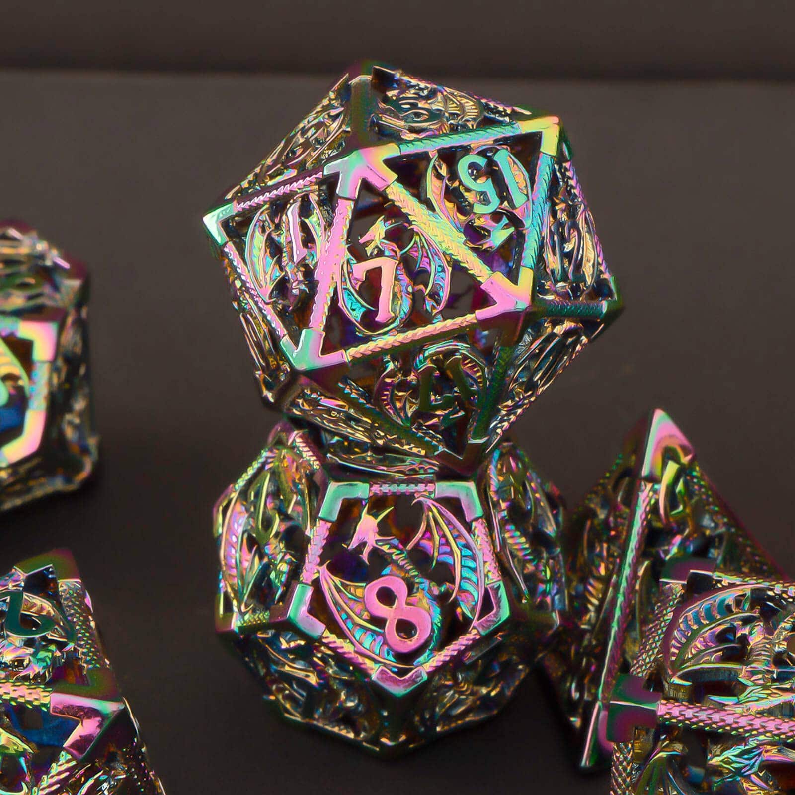 1. Set de dados huecos: El set de dados d&d utiliza dragones como elemento principal, esculpidos con exquisita artesanía hueca. Cuando se colocan sobre la mesa de juego, recibirán muchos cumplidos y envidias.