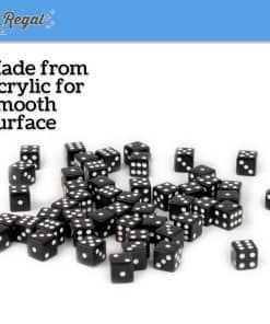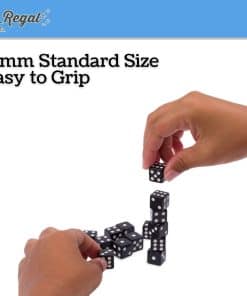 Set de Dados de Seis Lados Regal Games, cada uno midiendo 16mm, diseñado para eventos grandes, juegos en grupo y compras a granel. Hechos de acrílico duradero, facilitan un agarre fácil para lanzamientos precisos. Más allá de propósitos recreativos, este paquete de dados sirve como valiosa herramienta educativa en las aulas, ayudando en conceptos matemáticos como el ordenamiento, la suma, la resta y la probabilidad. Además, estos versátiles dados de 16mm son compatibles con varios juegos de mesa clásicos como Craps, Backgammon, Boggle, y juegos de rol como Dungeons and Dragons, asegurando su utilidad en diversos entornos. Ya sea para uso recreativo en juegos de mesa clásicos o como herramientas educativas para conceptos matemáticos, estos versátiles dados estándar de juego disponibles en negro y blanco, satisfacen una amplia gama de necesidades, prometiendo horas de diversión y aprendizaje por igual.