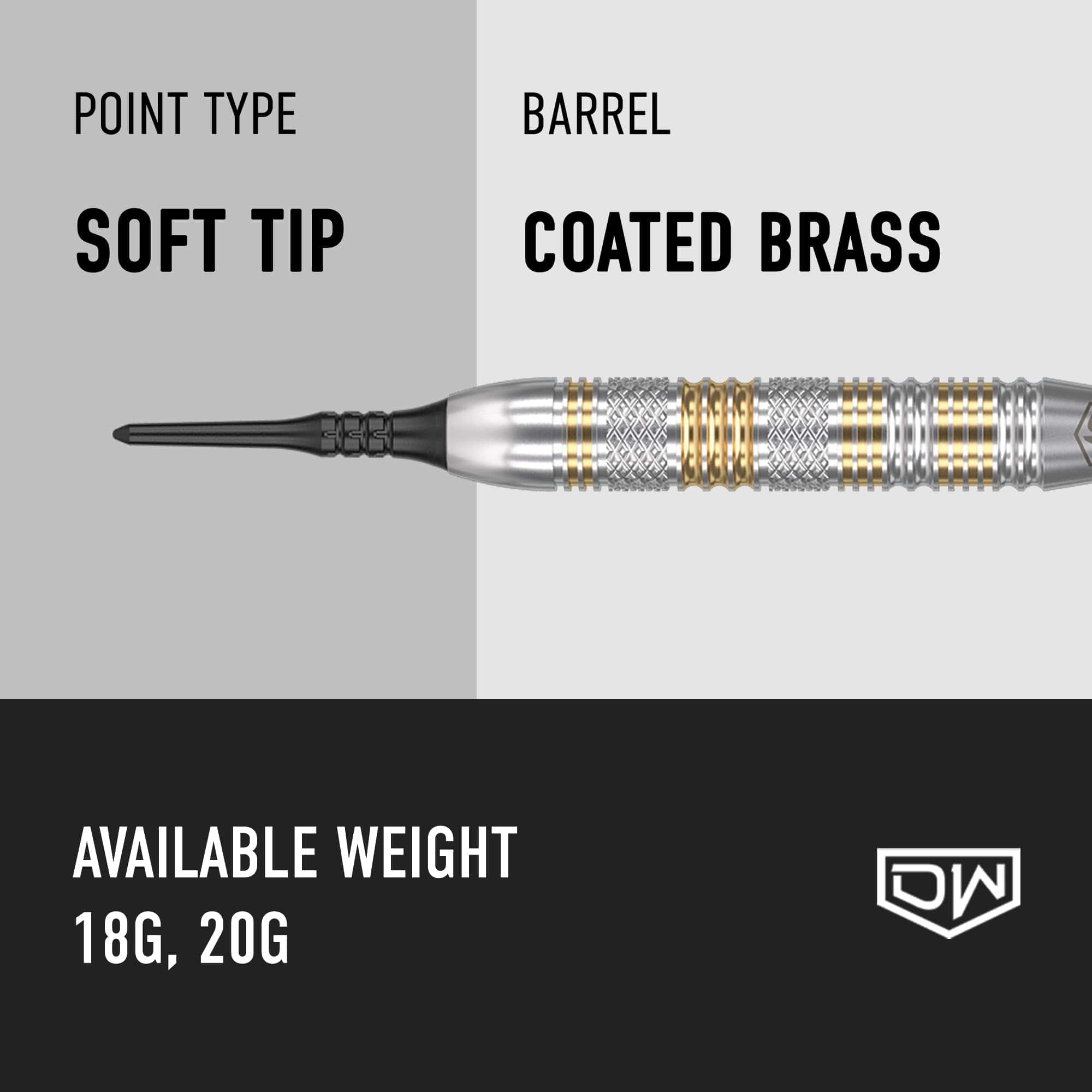 Set de Dardos Blandos DW Challenger 18G, Barril de Latón –