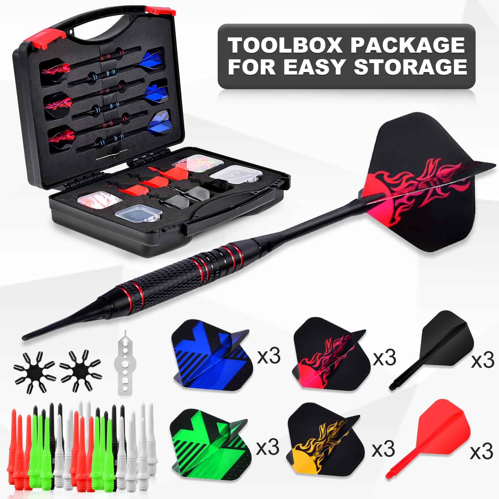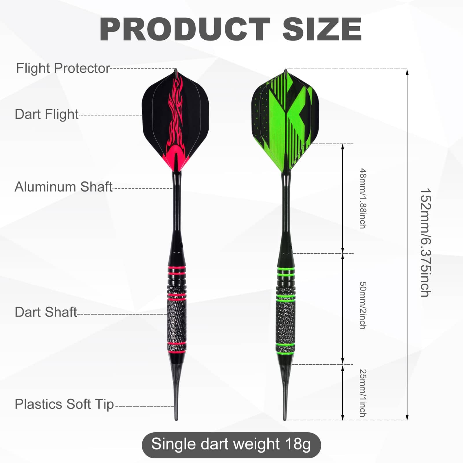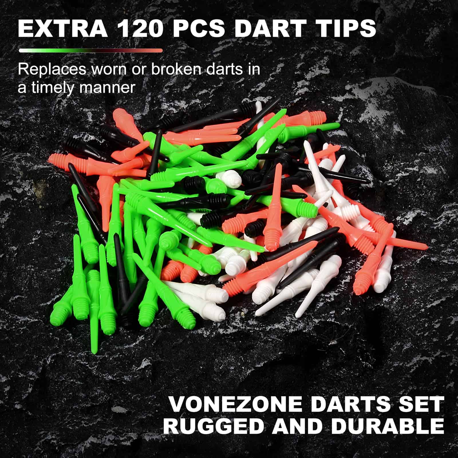 vonezone Darts Plastic Soft Tip, Professional Dart Set, 12Pcs 18Gram with 120 Extra Tips, 6 One-Piece Dart Wings, Flight Protector, Tool Wrench, Storage Case, Darts Set for Electronic Dartboard