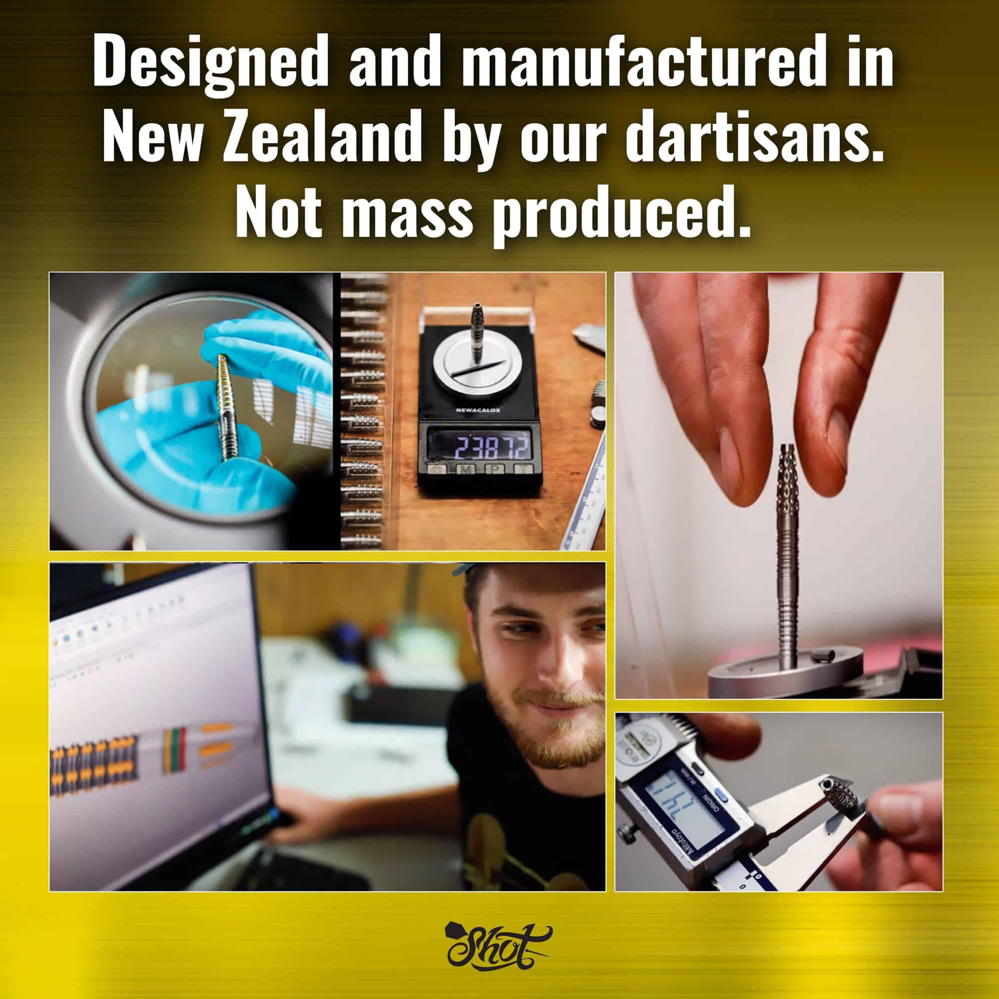4. HECHO EN NUEVA ZELANDA – Desde 1970, la dedicación de Shot Darts es brindarte los mejores dardos profesionales y de calidad en el mercado. PROMESA DE SATISFACCIÓN DEL 100% – Respaldamos la alta calidad de nuestros productos. Todos los barriles de dardos de tungsteno de Shot tienen una garantía de por vida. Cuando compras un set de dardos de tungsteno del 90%, se pesan a mano en nuestra fábrica con una tolerancia de +/-0.05gm, lo que significa mejores resultados en general. Características clave del producto.