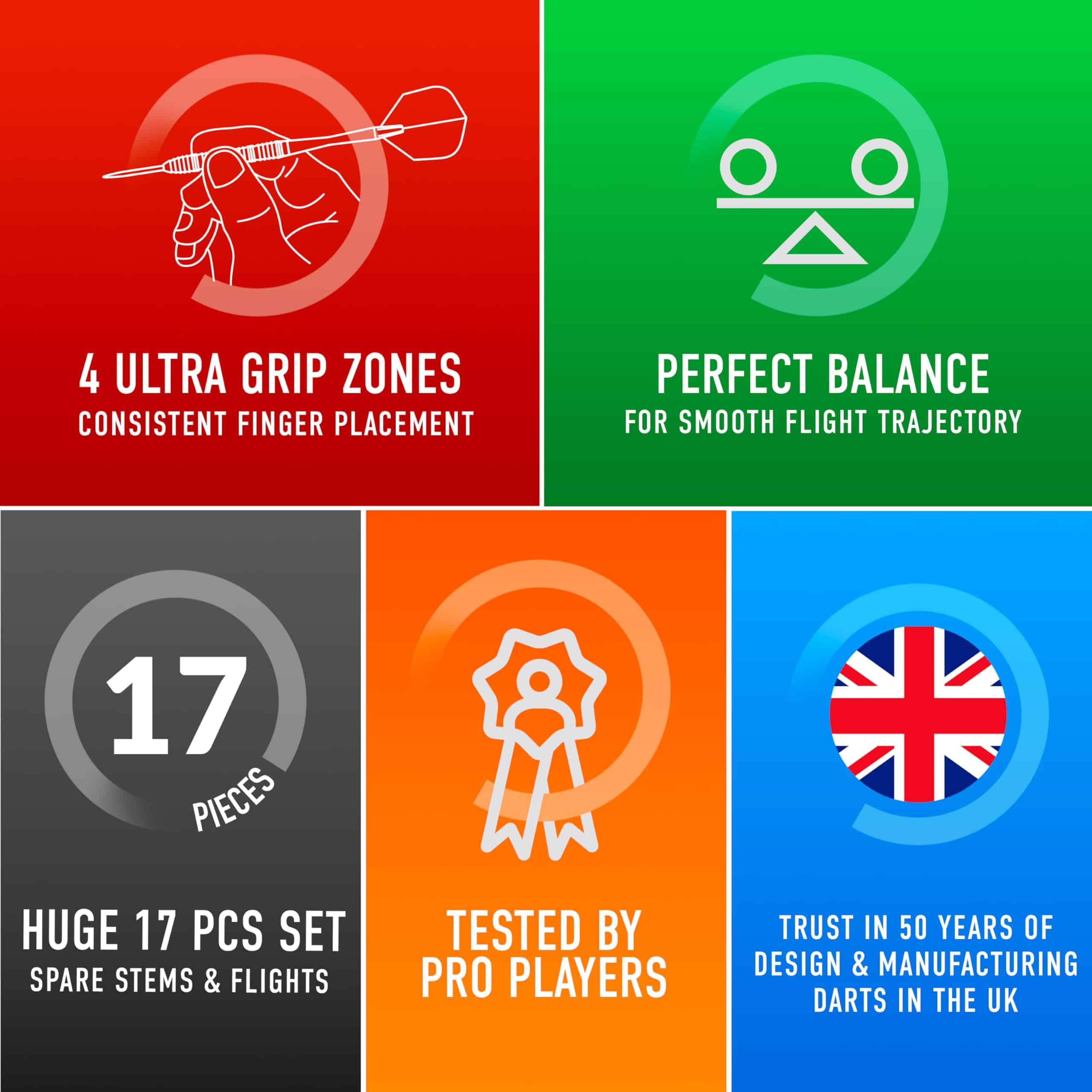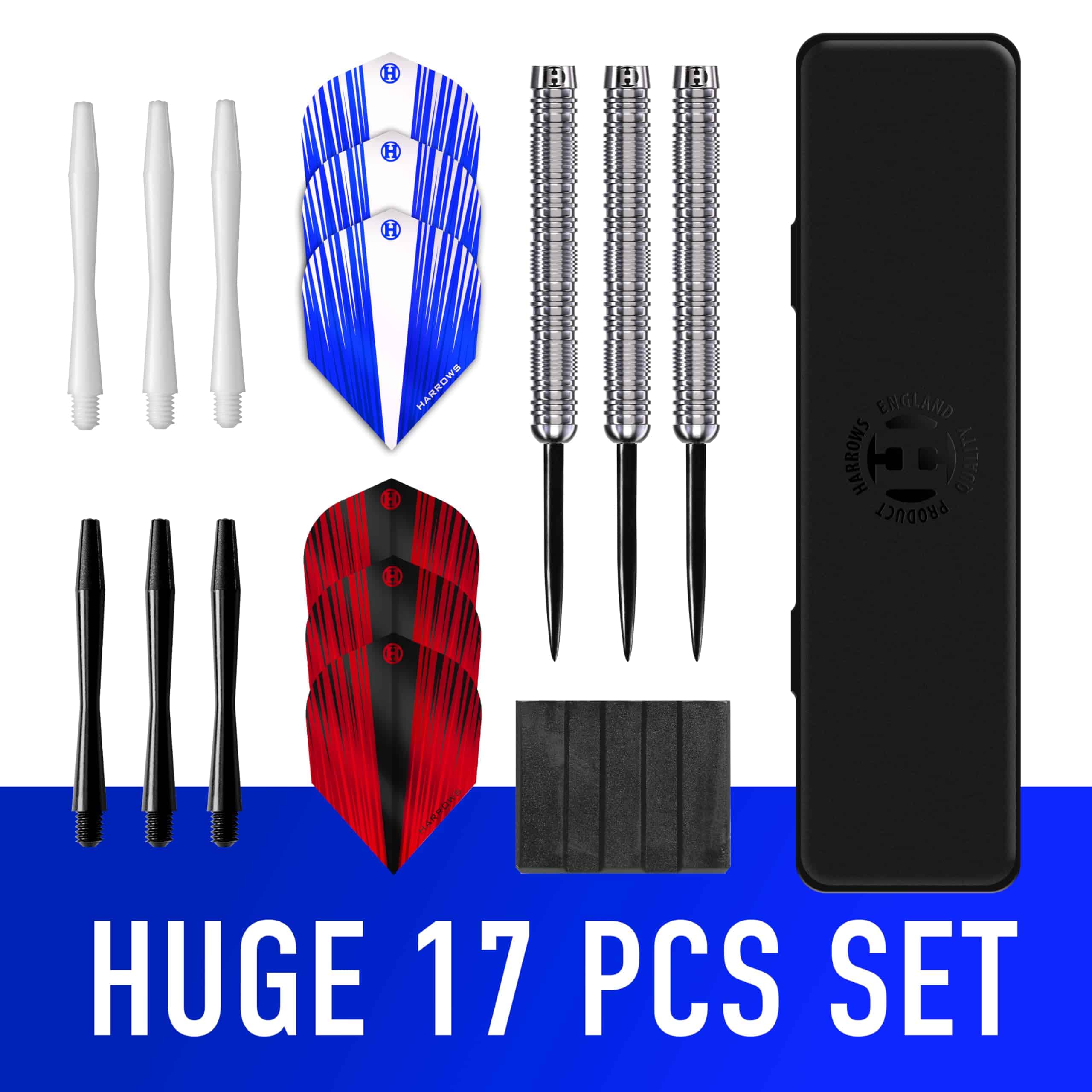 1. : Los dardos Harrows Caliber están expertamente fabricados con un 90% de tungsteno, la misma especificación que los jugadores profesionales en la gira PDC, asegurando precisión y durabilidad durante el juego, y agrupaciones más ajustadas en tus lanzamientos a los trebles y doubles. 2. & : Con tecnología avanzada de agarre de la I+D de Harrows, incluyendo pruebas por nuestros jugadores profesionales, estos dardos proporcionan un control excepcional y estabilidad para una precisión exacta en el tablero de dardos. 3. : Enorme set completo de 16 piezas, con tres dardos Caliber, ejes adicionales, vuelos adicionales y todos en un estuche de viaje compacto. Ejes y vuelos en diferentes colores para personalizar tu configuración, así que estarás bien equipado para enfrentarte a cualquier oponente con confianza y estilo. 4. & : Los ejes de dardos Harrows son reconocidos como líderes en agarre de vuelo tipo torno, reduciendo la posibilidad de que los vuelos se desprendan durante el juego. Combinados con los super fuertes vuelos Marathon Dart, fabricados en el Reino Unido. 5. : Estos dardos Harrows Caliber solo se encuentran en nuestra tienda, por menos de 30, ofrecen un 90% de tungsteno, en un set completo con muchos accesorios, a un valor excepcional por tu dinero. 6. : Más de 50 años de fabricación de dardos, únete a la marca de dardos más distribuida en el mundo y comienza tu camino para jugar como los jugadores profesionales de Harrows.