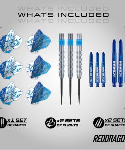 1. GERWYN ICEMAN PRICE: Adéntrate en el mundo de los dardos de élite con el Set de Dardos de Punta de Acero RED DRAGON Game On Gerwyn ‘Iceman’ Price 20g. Diseñados en colaboración con el campeón mundial Gerwyn Price, estos dardos encarnan la potencia, precisión y estilo audaz que han convertido al Iceman en una fuerza formidable en el oche. 2. DARDOS DE ACERO INOXIDABLE DE PRECISIÓN: Estos barriles de acero Inox de alta calidad están diseñados para un equilibrio y durabilidad imbatibles. El peso de 20g proporciona un equilibrio ideal entre control y potencia, lo que facilita apuntar con precisión. Los barriles cuentan con elegantes anillos azules, que no solo mejoran el atractivo visual, sino que también proporcionan una superficie texturizada para un agarre seguro y consistente. 3. VUELOS ESTÁNDAR ICEMAN YIN YANG: Estabilidad y precisión mejoradas. Con un núcleo extra grueso de 100 micras, estos vuelos de dardos Polymetronic están diseñados para mejorar la aerodinámica de tus dardos. Esto resulta en una estabilidad de vuelo superior y precisión, permitiéndote golpear tu objetivo con precisión de forma consistente. 4. EJES DE DARDOS ICEMAN VRX: Incluye ejes de dardos Iceman VRX de tamaño medio y corto, lo que te permite adaptar tus dardos a tu estilo de juego preferido. Estos ejes cuentan con una construcción extra resistente y un sistema de bloqueo de ejes que asegura que tu vuelo permanezca firmemente en su lugar, proporcionando un rendimiento consistente y confiable en cada lanzamiento. 5. APTOS PARA TODOS LOS NIVELES: Ya seas un principiante o un profesional experimentado, los dardos de la Serie Game On están diseñados para mejorar tu precisión, consistencia y confianza con cada lanzamiento.