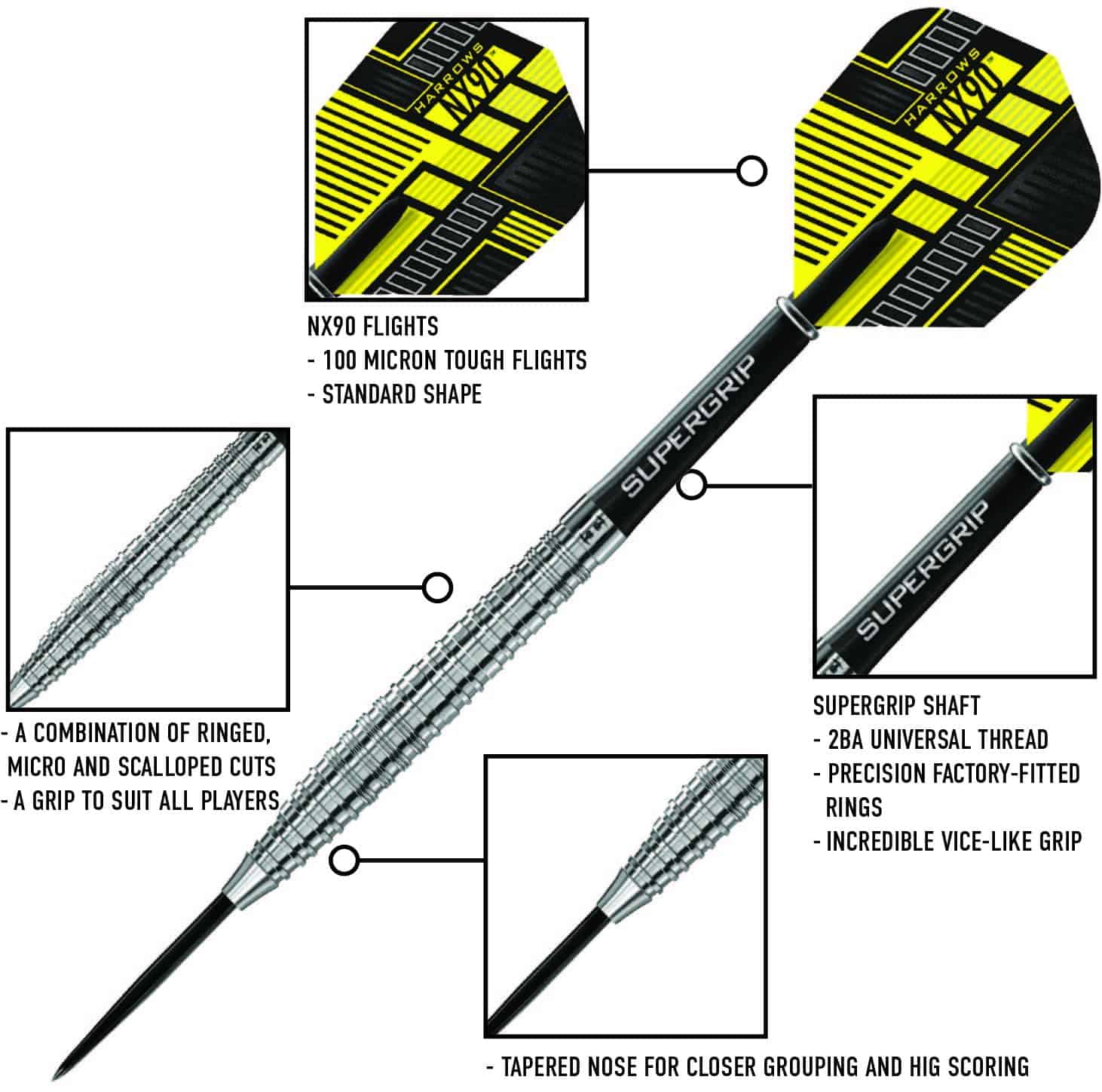 Set de Dardos Harrows NX90, Dardos de Punta de Acero de