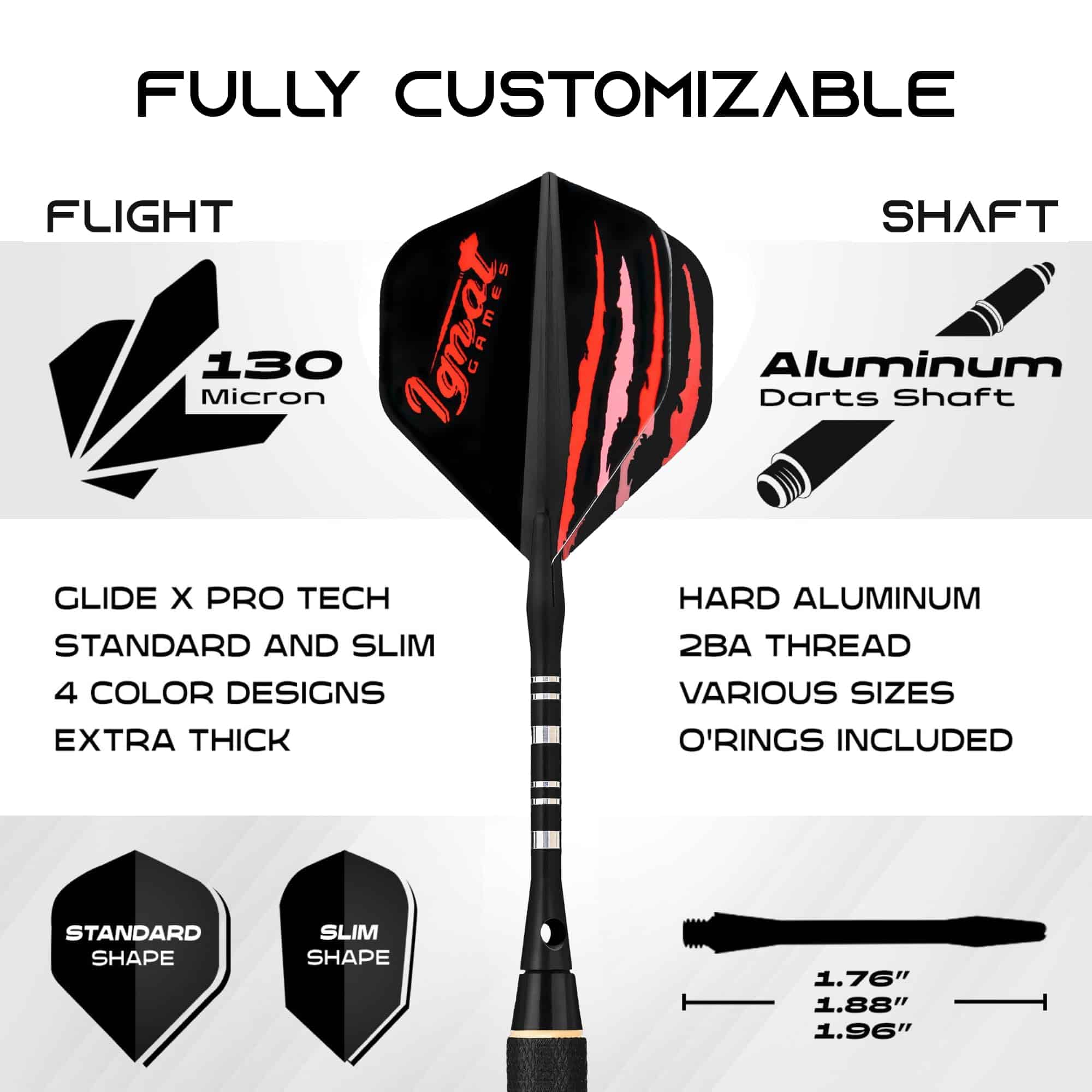 3. ¡Mejora tu técnica! Mejora tu juego con un set de dardos de metal premium que incluye 16 piezas de vuelos GlideXPRO 130m para máxima estabilidad. Garantía de 10 años después del registro del producto en línea.