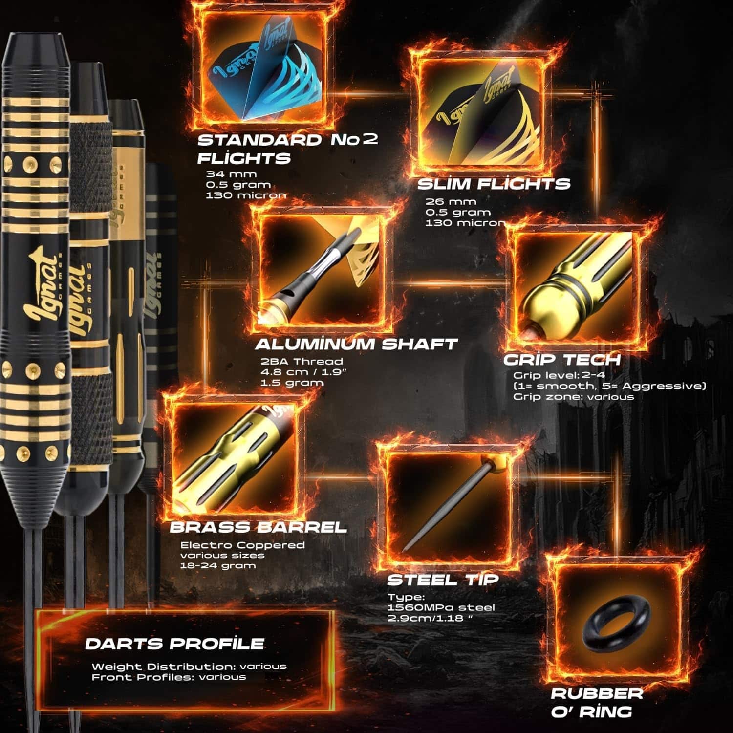 Set de Dardos IgnatGames Steel Tip - 12 Pack Premium 18-24