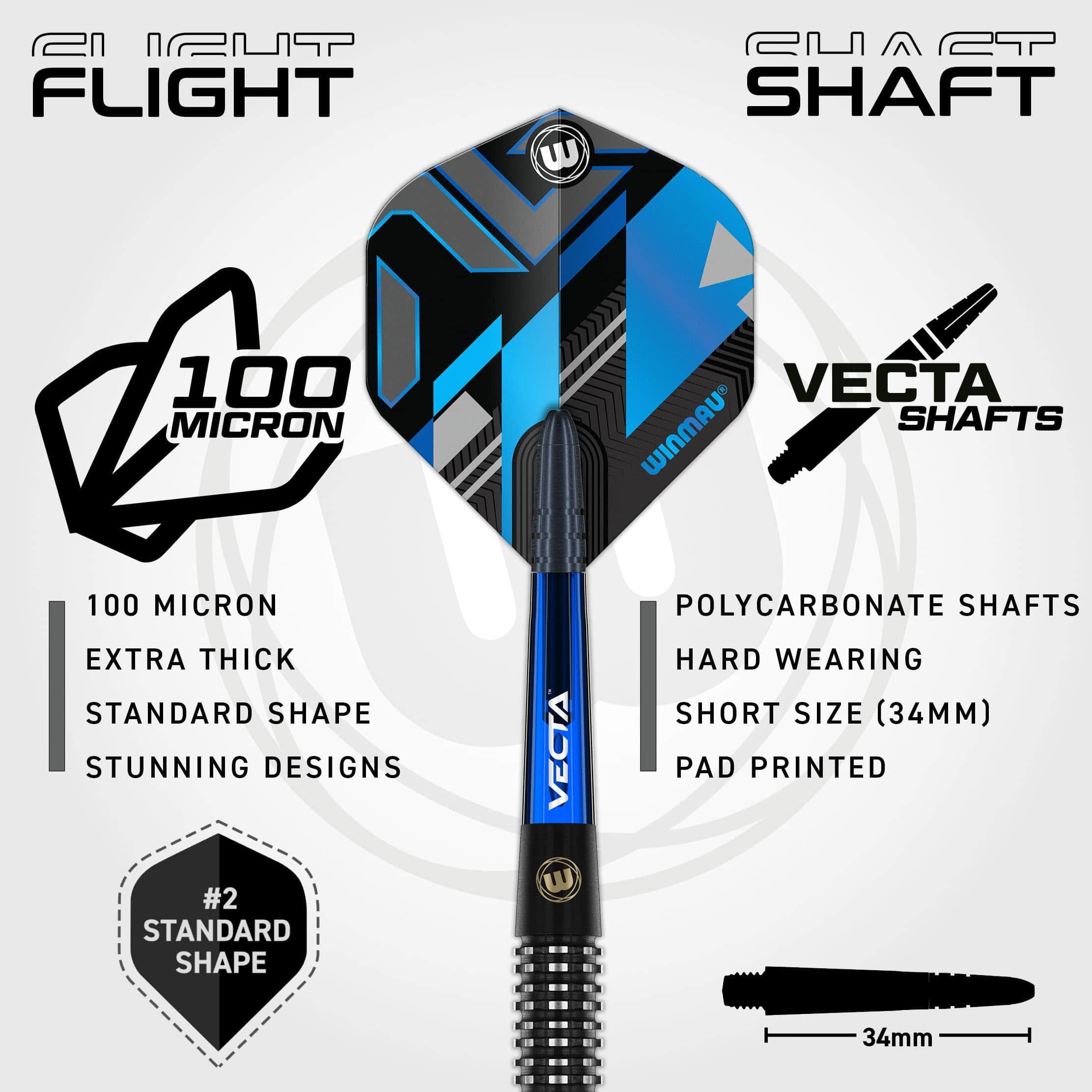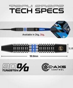 Para mejorar aún más tu juego, los Galactics vienen equipados con ejes de dardo Vecta azules cortos y Vuelos de Dardo Prism Delta estándar. Los ejes cortos Vecta están diseñados para una mayor estabilidad y un menor arrastre, permitiendo una liberación más suave y rápida. Los Vuelos Prism Delta, conocidos por su durabilidad y estabilidad en el vuelo, ofrecen precisión y control, asegurando que tus dardos permanezcan fieles a su trayectoria.