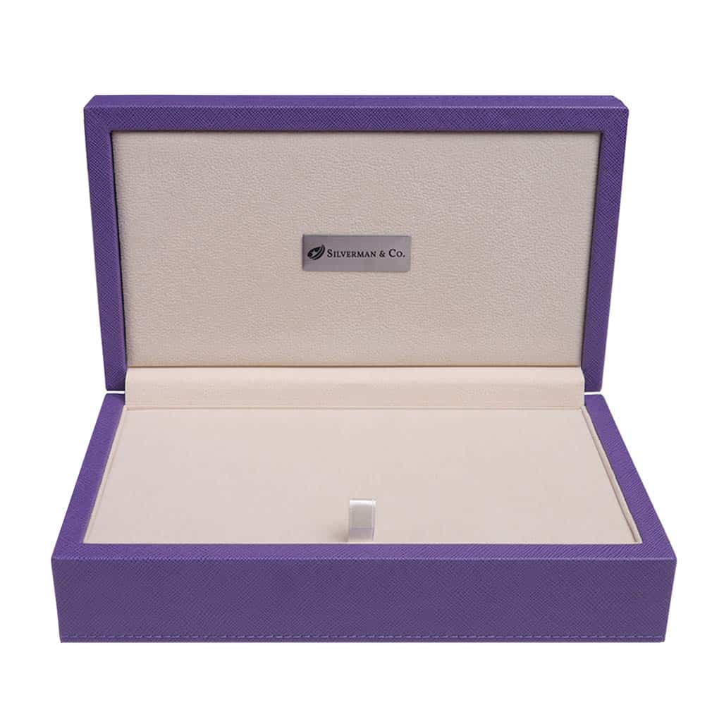 Dominós tan hermosos requieren más que una caja de almacenamiento ordinaria. Silverman & Co. ha creado una caja de almacenamiento estilo joyería única en su tipo que no solo luce impresionante, sino que también está diseñada para mantener estos dominós bien protegidos después del juego. Como se ve en las fotos de arriba, cada capa de dominós está dividida por un separador de fieltro grueso y suave para mayor tranquilidad.