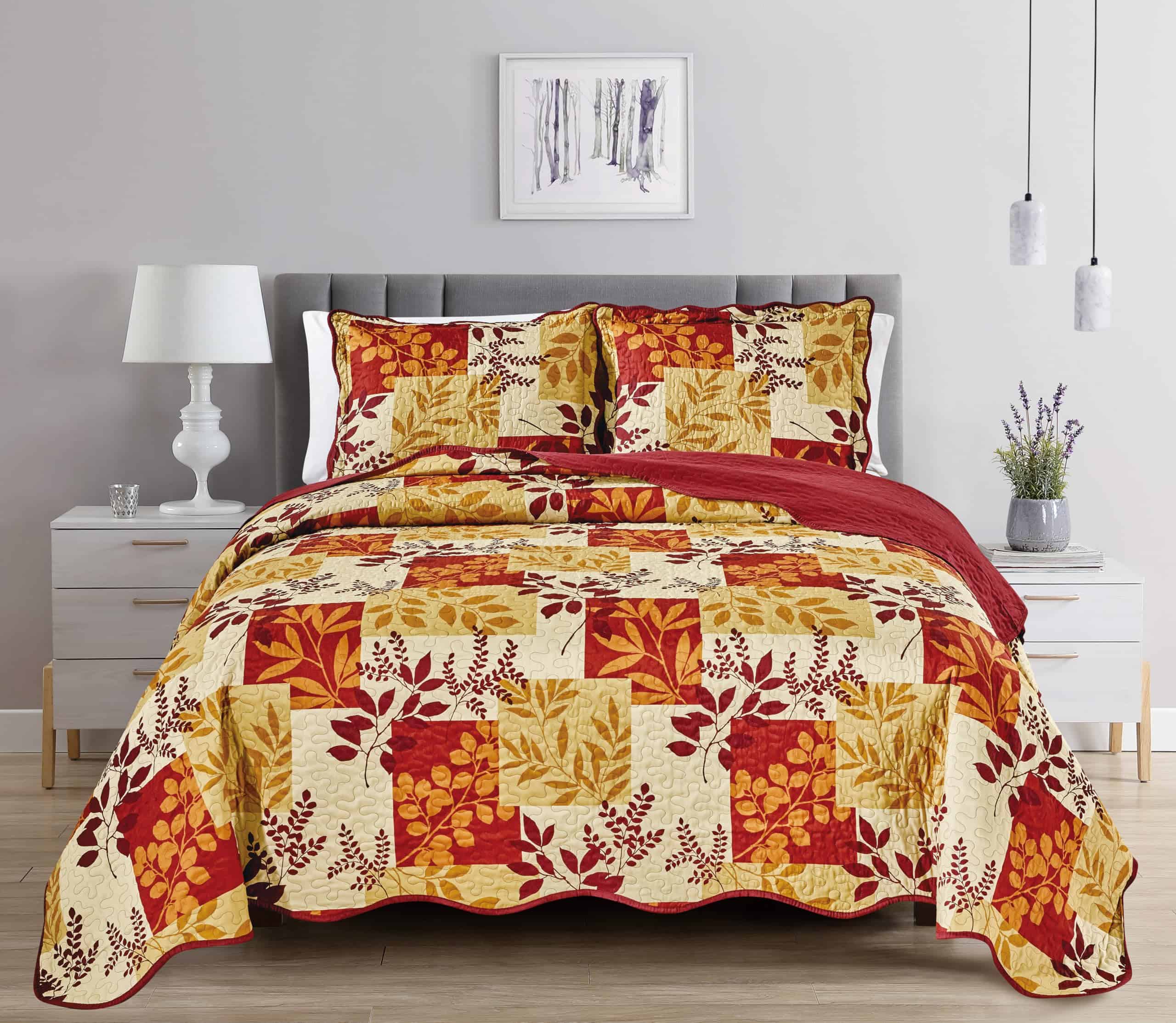2. Colcha extragrande – 120 pulgadas (extra ancho) X 106 pulgadas (extra largo), 2X Fundas de almohada tamaño California King 20″ X 36″.