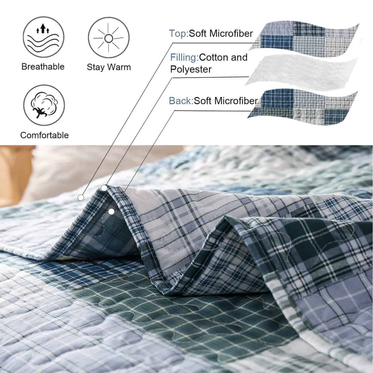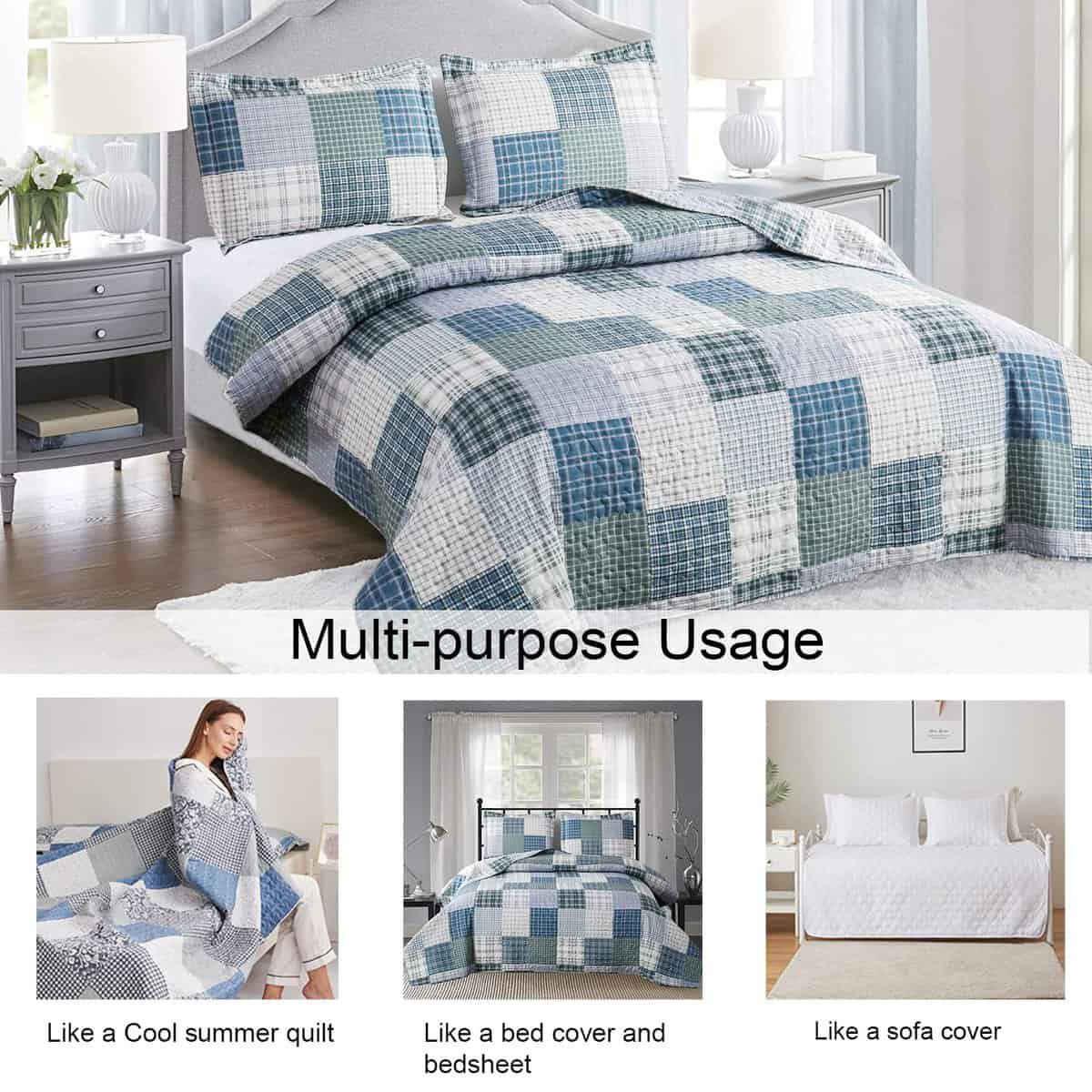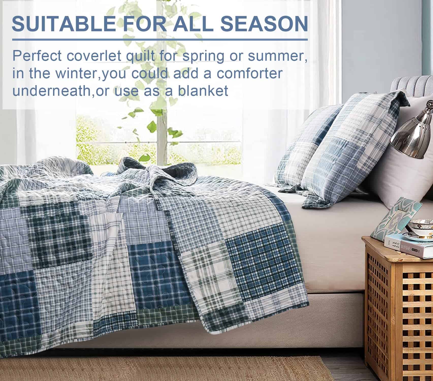 1. TAMAÑOS Y RECORDATORIOS: El set de edredón a cuadros tamaño completo/queen viene con un edredón (90 x 90 ) y 2 fundas de almohada (20″x26″+2″) – Si necesitas una colcha que cubra los bordes del colchón y del bastidor de la cama, puedes elegir un tamaño más grande para que luzca lujoso. 2. DISEÑO ÚNICO A CUADROS: Ligero set de ropa de cama reversible de patchwork de país, diseño de construcción de varias capas con impresión beige a cuadros, que consiste en 3 capas separadas cosidas cuidadosamente juntas. Relleno con relleno sintético de poliéster ligero el edredón, colcha ligera, fresca en verano y cálida en invierno. 3. MATERIAL SUAVE Y DURADERO: El set de edredón a cuadros patchwork beige está hecho de material de poliéster de microfibra de alta calidad, doble cepillado en ambos lados para una suavidad y comodidad definitivas. Edredón ligero, transpirable y cálido al dormir. Crea una experiencia de sueño fácil y cómoda, te ayuda a disfrutar de un día familiar especial y fácil. 4. CUIDADO FÁCIL: Edredón a cuadros beige suave y ligero, lavable a máquina en agua fría y secar a baja temperatura, lavar por separado de diferentes colores. Resistente a decoloración, manchas, encogimiento y arrugas. Suave y duradero, el color no se desvanecerá después de lavar, el material de poliéster de microfibra puede mantener la forma y la suavidad después de lavar repetidamente. 5. MARAVILLOSA DECORACIÓN DE CAMA: Decora tu dormitorio, habitación de invitados, casa de vacaciones con este único y elegante set de edredón a cuadros beige colcha de cama, lo suficientemente ligero para llevar cuando viajas o haces actividades al aire libre con tu familia para apreciar la belleza de la naturaleza, conveniente y práctico, la colcha de patchwork también puede ser un regalo maravilloso para bodas, cumpleaños, vacaciones y muchas otras ocasiones.