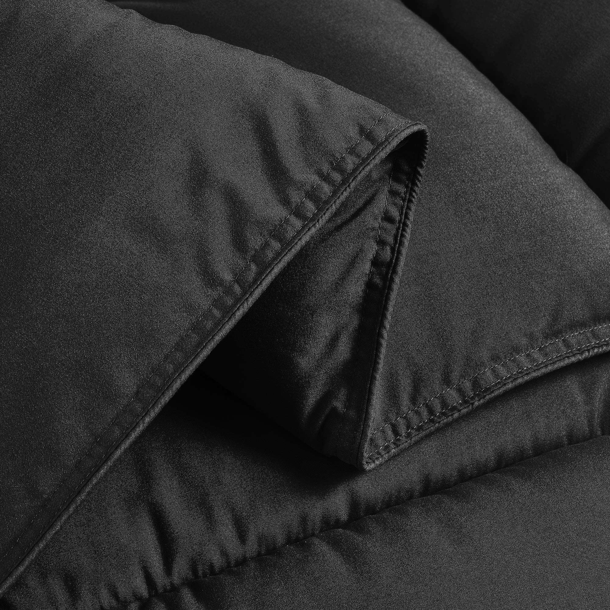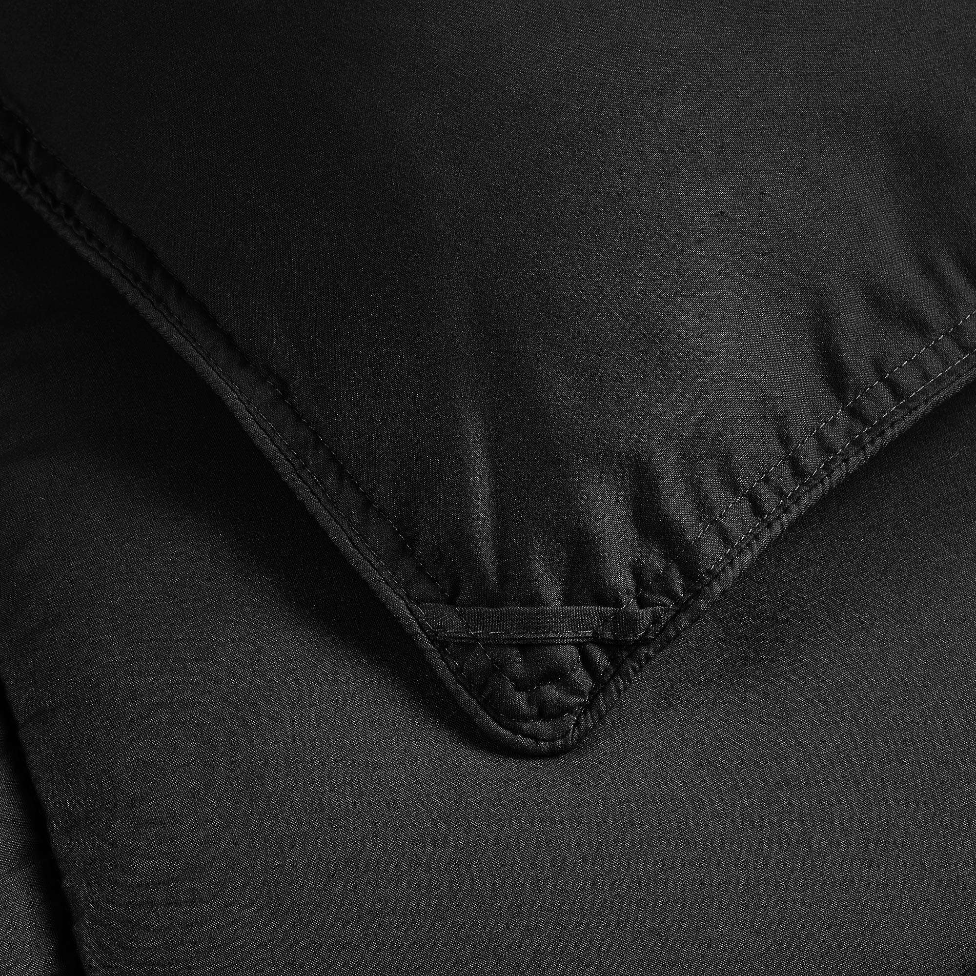 Este Set de Edredón Alternativo de 2 Piezas de Chezmoi Collection es la elección perfecta para aquellos que buscan una solución cómoda y elegante para su ropa de cama. El juego incluye un edredón tamaño individual con medidas de 64′ x 88′ y una funda de almohada de 20′ x 26′ +2′ de volante. La tela está hecha de 100% poliéster microfibra cepillado, lo que garantiza una resistencia duradera a las arrugas y a la decoloración. El acolchado de caja clásico asegura una capa uniforme de grosor, evitando que el relleno se desplace y se agrupe, manteniendo una suavidad uniforme tipo nube. Este edredón es versátil y ligero, adecuado para uso durante todo el año. El color sólido negro es conveniente para complementar y añadir elegancia a cualquier decoración de dormitorio. Además, cuenta con lengüetas en las esquinas que se pueden utilizar opcionalmente para insertarlo en un edredón y ayudar a anclar la funda del edredón, manteniendo el edredón en su lugar. Este set es de fácil cuidado, se puede lavar a máquina en frío con ciclo suave, secar a baja temperatura y no se recomienda el uso de blanqueador.