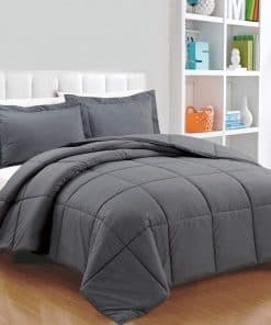 Set de Edredón Alternativo de 3 Piezas Chezmoi Collection en tamaño King. Incluye un edredón king de 102″ x 90″ y 2 fundas de almohada de 20″ x 36″ +2″ borde. Duerma placenteramente rodeado de la calidez del edredón alternativo. Costuras clásicas en cuadros para asegurar un grosor uniforme, evitando que el relleno se desplace y se amontone, junto con una suavidad uniforme tipo nube, dándole la tranquilidad de refrescarse en pura comodidad cada noche. La tela está hecha con 100% poliéster de microfibra cepillado para una resistencia duradera a las manchas y arrugas. El edredón es versátil y ligero, adecuado para su uso durante todo el año. Color sólido para complementar y agregar elegancia para combinar con cualquier decoración de dormitorio. También cuenta con pestañas en las esquinas como uso opcional para utilizarlo como un inserto para edredón, ayudando a anclar la funda del edredón y mantener el edredón en su lugar. Fácil cuidado, lavable a máquina en ciclo suave, secar a baja temperatura, no usar lejía.