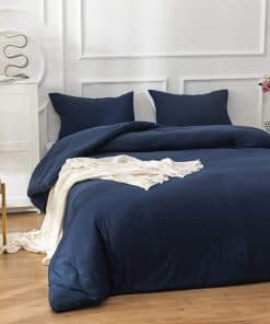 Este elegante juego de edredón de color azul marino te mantendrá abrigado en invierno, pero es lo suficientemente ligero para mantenerte acogedor durante los meses cálidos también. Moderno y elegante. Fácil de combinar. Es una buena elección para tu dormitorio. Adecuado para todas las personas, como niños, niñas, adolescentes, mujeres, hombres y personas mayores. Buen regalo para ti, tus amigos y tu familia. La moda del edredón azul marino de Cottonight es de color sólido, añadiendo un toque de elegancia a cualquier esquema de color o estética. Elegir nuestro edredón para decorar tu habitación te brinda una sensación distintiva de elegancia. Este edredón de estilo minimalista puede combinar fácilmente con todo tu estilo de habitación, ya sea en el dormitorio, la habitación de los niños o de invitados. También agregará una capa adicional de calidez mientras ves la televisión, lees, te relajas o duermes. Cuidado fácil: Lavar a máquina en ciclo suave o delicado, usando agua fría o tibia. Luego seca el edredón a calor bajo o déjalo secar al aire. Por favor, no uses lejía. Nunca uses ningún blanqueador o solución de tratamiento de color. Más sobre nuestro servicio: Somos un equipo responsable. Si tienes algún problema, no dudes en contactarnos directamente para que podamos ayudarte rápidamente. Puedes devolvernos el artículo o reemplazarlo dentro de 30 días. Te deseamos una feliz compra. Gracias.