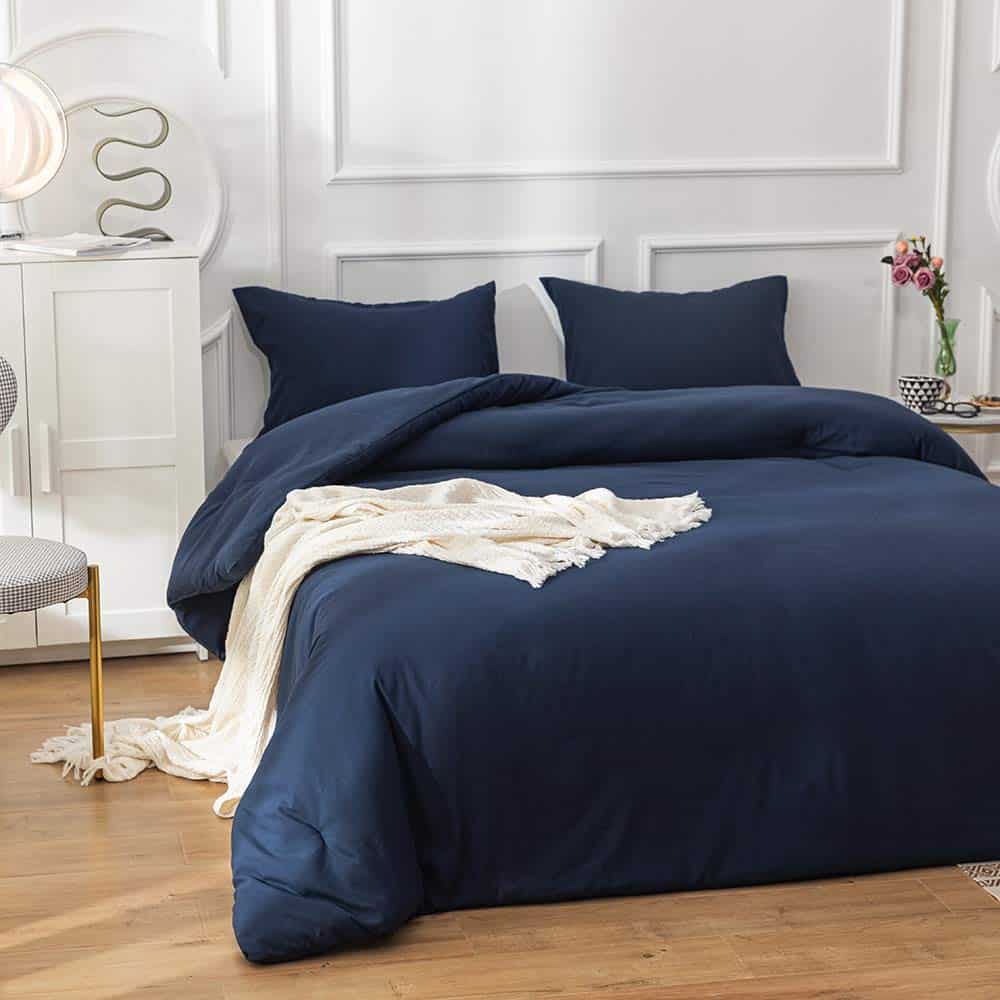 Set de Edredón Azul Marino para Cama King de Algodón para