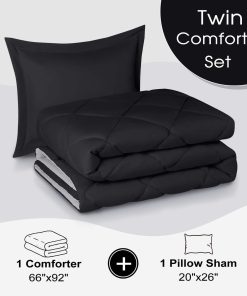 Hecho con materiales de alta calidad, este set de edredón negro Twin es suave al tacto y perfecto para brindar confort durante todo el año. Su diseño reversible te permite cambiar de estilo fácilmente según tus preferencias. El relleno sintético de alta calidad garantiza una suavidad excepcional y durabilidad, manteniendo el edredón esponjoso y en forma por mucho tiempo.