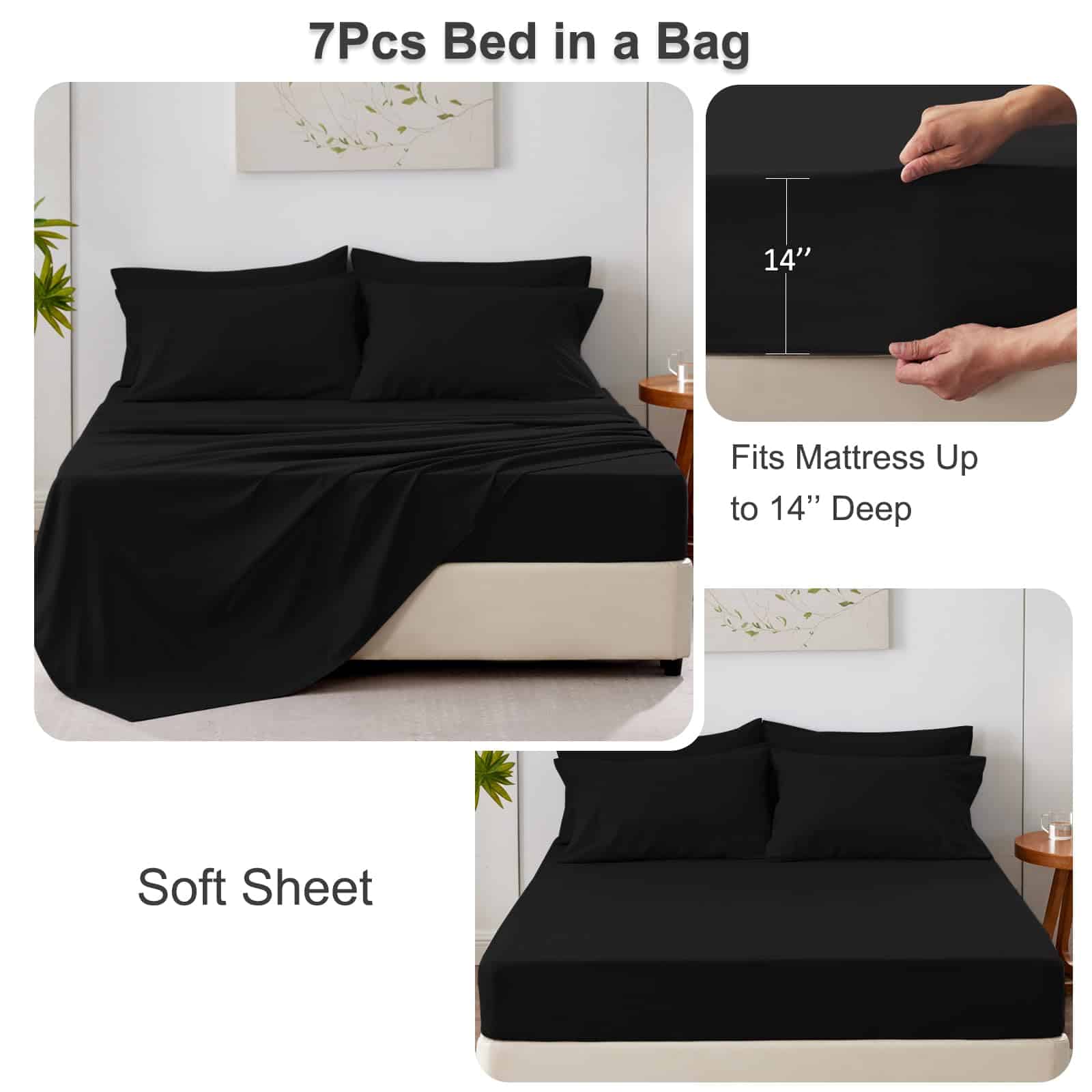 Set de Edredón California King Size Negro, 7 Piezas Juego