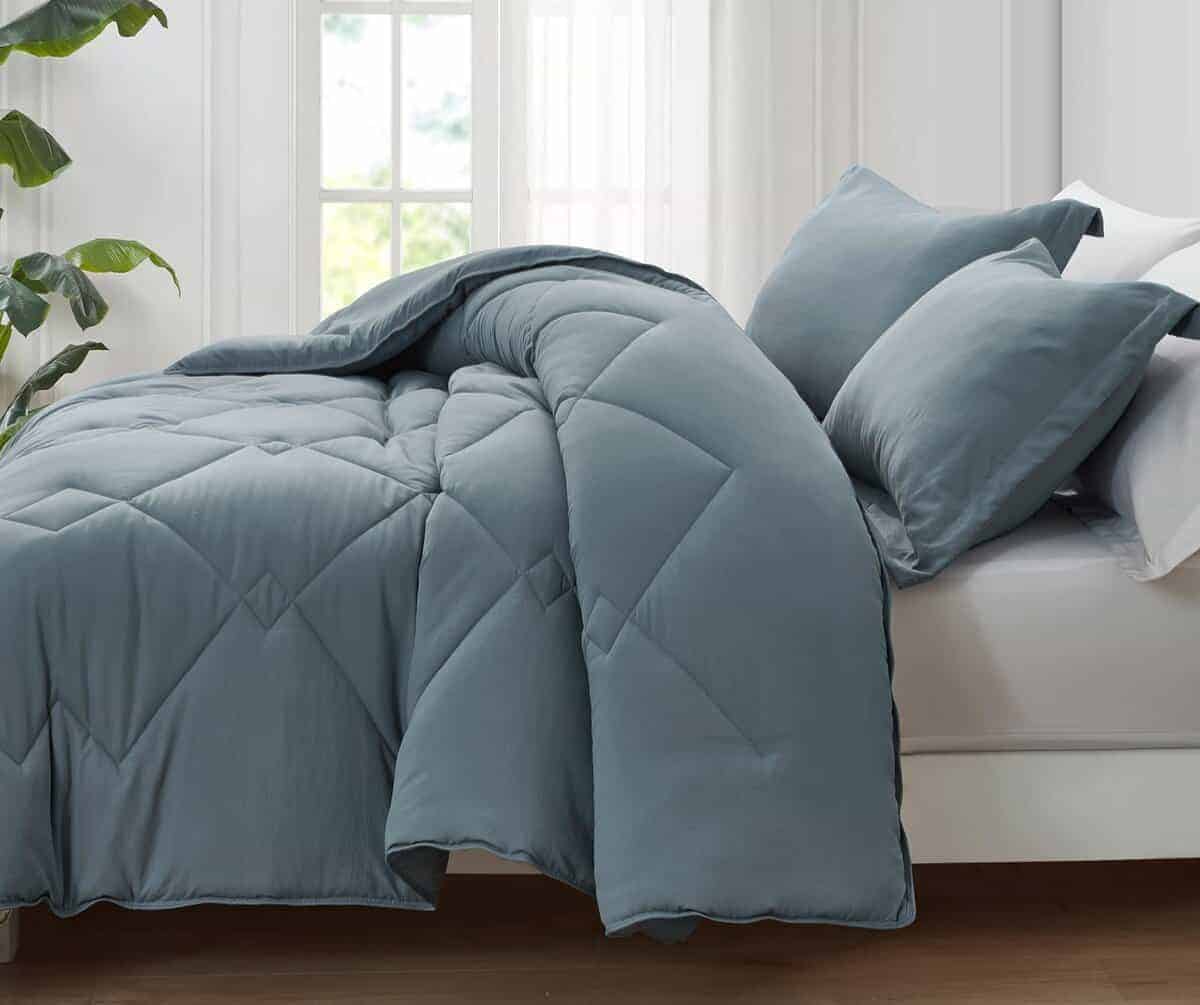 Presentamos el Set de Edredón Chezmoi Collection Logan, una combinación perfecta de estilo, confort y versatilidad. Eleva la decoración de tu dormitorio con este lujoso conjunto de ropa de cama, diseñado para proporcionar un ambiente acogedor y acogedor durante todo el año. Elaborado con microfibra suave y ligera lavada a piedra, el Set de Edredón Logan ofrece una experiencia de sueño sumamente cómoda. El acabado lavado a piedra le da al tejido un aspecto y tacto hermosamente relajados, agregando un toque de elegancia discreta a cualquier dormitorio. Incorporado con un acolchado de diamantes único que crea una dimensión adicional en tu espacio. Este set de 3 piezas incluye un lujoso edredón y dos fundas de almohada coordinadas (una funda de almohada para el tamaño Twin XL), permitiéndote completar sin esfuerzo tu conjunto de ropa de cama con un aspecto cohesivo y elegante. Ya sea que te estés acurrucando para una noche de sueño tranquila o descansando en la cama en las mañanas perezosas, el Set de Edredón Chezmoi Collection Logan te envolverá en un lujoso confort. Relleno con 220 GSM de microfibra de una sola pieza, el edredón es versátil y perfecto para todas las estaciones, seguro de convertirse en un elemento básico en la decoración de tu dormitorio. Transforma tu espacio en un refugio tranquilo con el Set de Edredón Chezmoi Collection Logan. ¡Date el gusto del máximo confort y estilo hoy mismo!