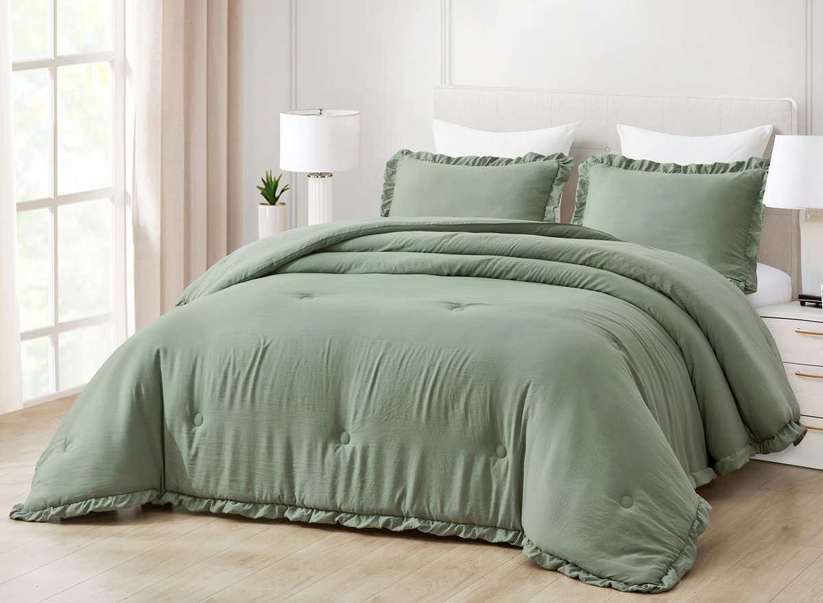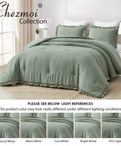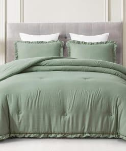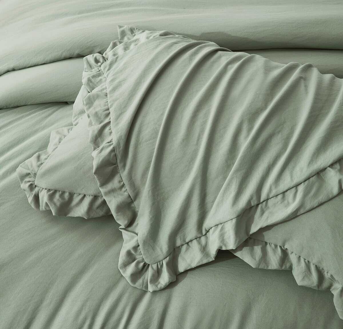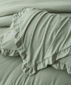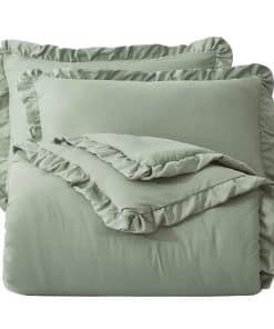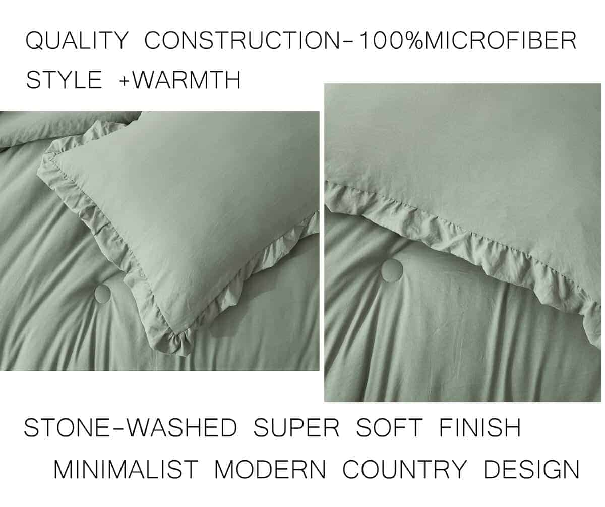 3. Presenta un patrón de ribete vintage con volantes que exhibe un aspecto y sensación elegante. Un atractivo efecto arrugado en la tela formado por un prelavado que mejora la estética del edredón, ideal con un peso de edredón para todas las estaciones, brindando comodidad acogedora a cualquier habitación durante todo el año.