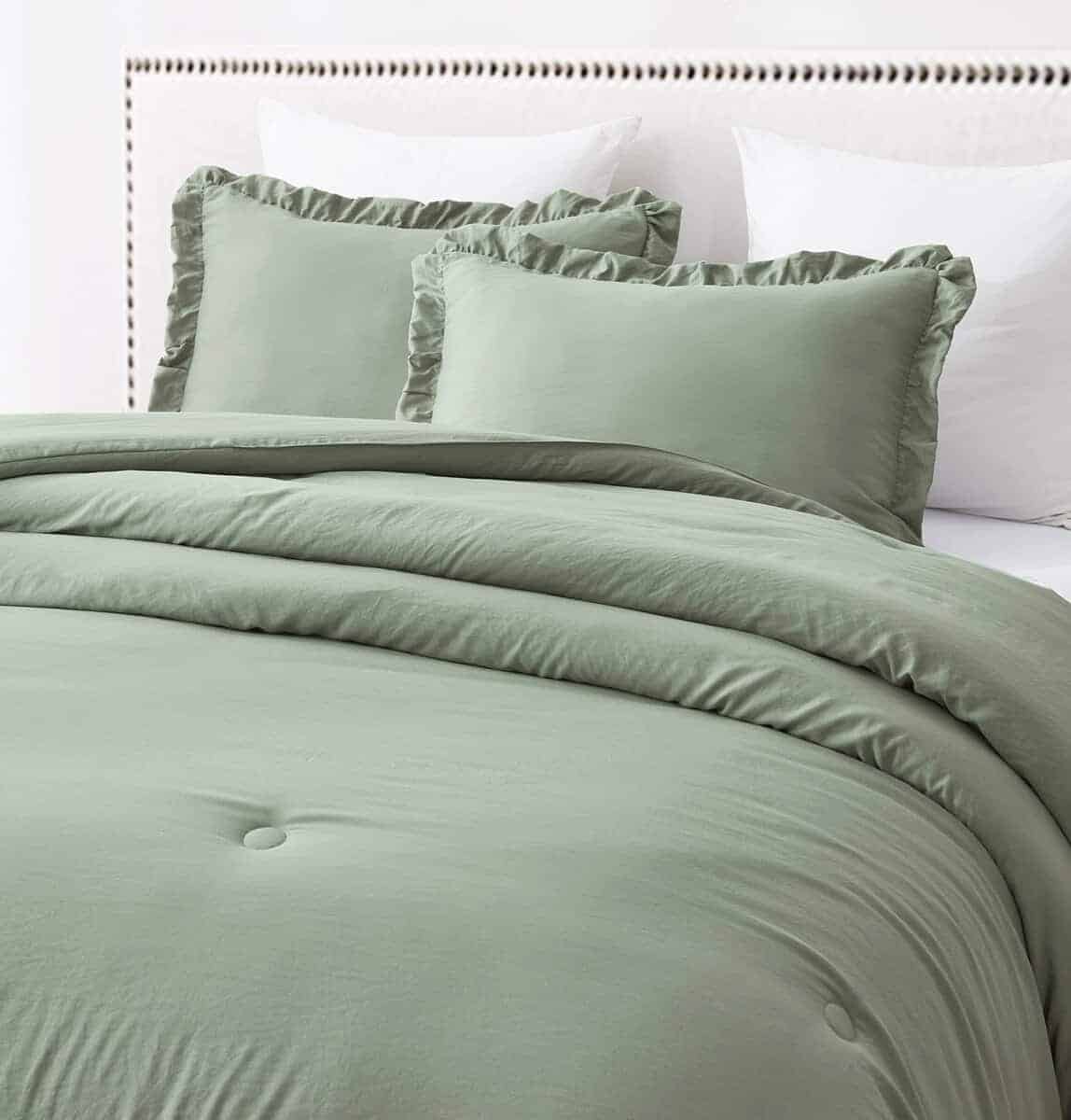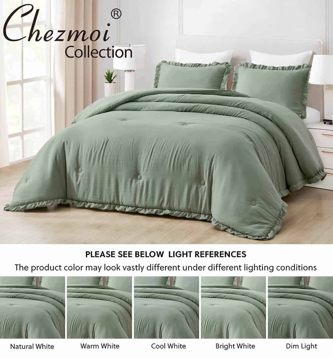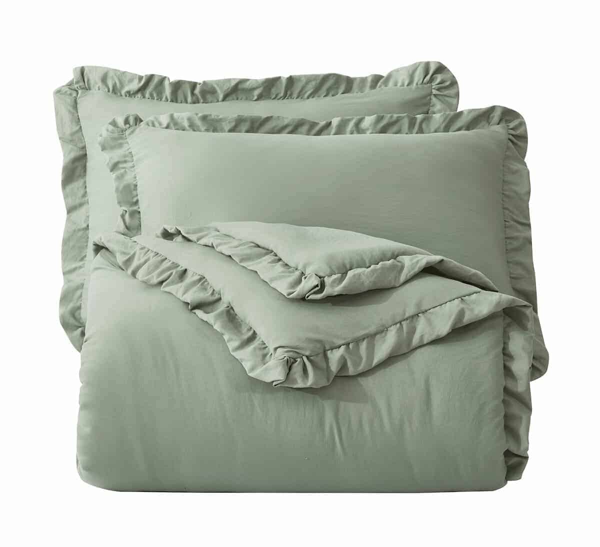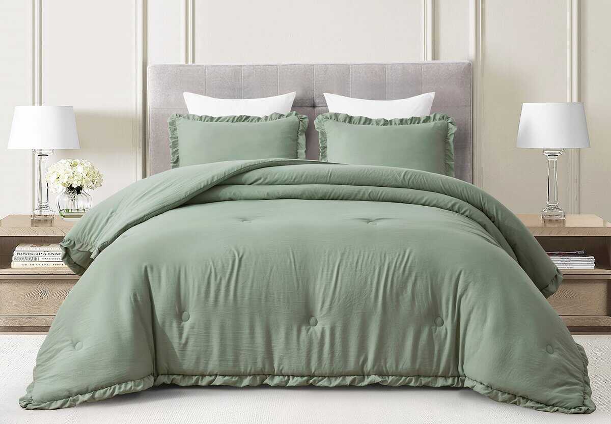 3. Presenta un patrón de ribete vintage con volantes que exhibe un aspecto y sensación elegante. Un atractivo efecto arrugado en la tela formado por un prelavado que mejora la estética del edredón, ideal con un peso de edredón para todas las estaciones, brindando comodidad acogedora a cualquier habitación durante todo el año.