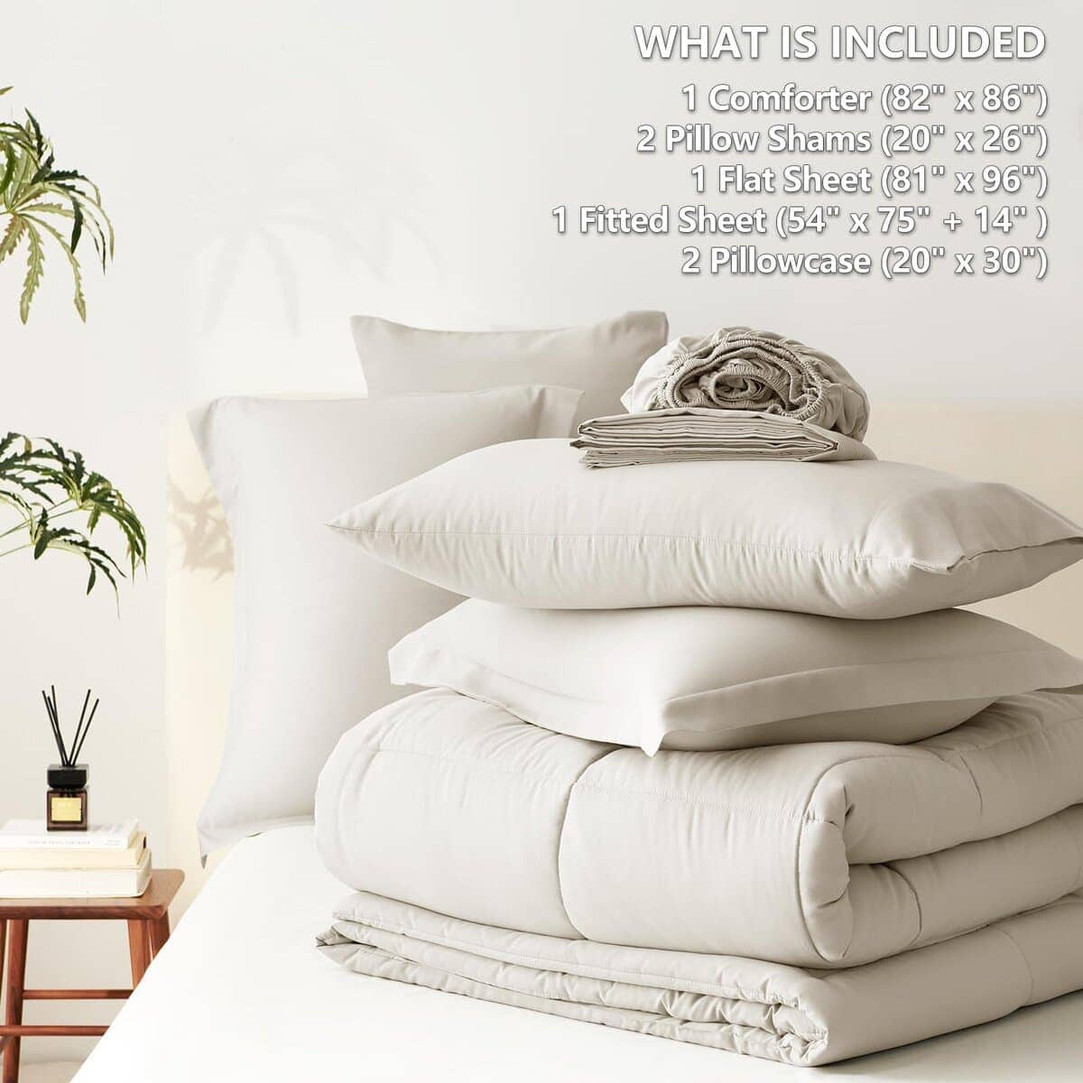 Set de edredón CozyLux Beige Full 7 Piezas Juego de ropa de