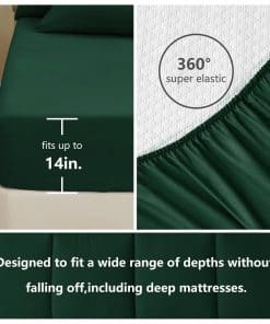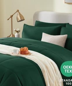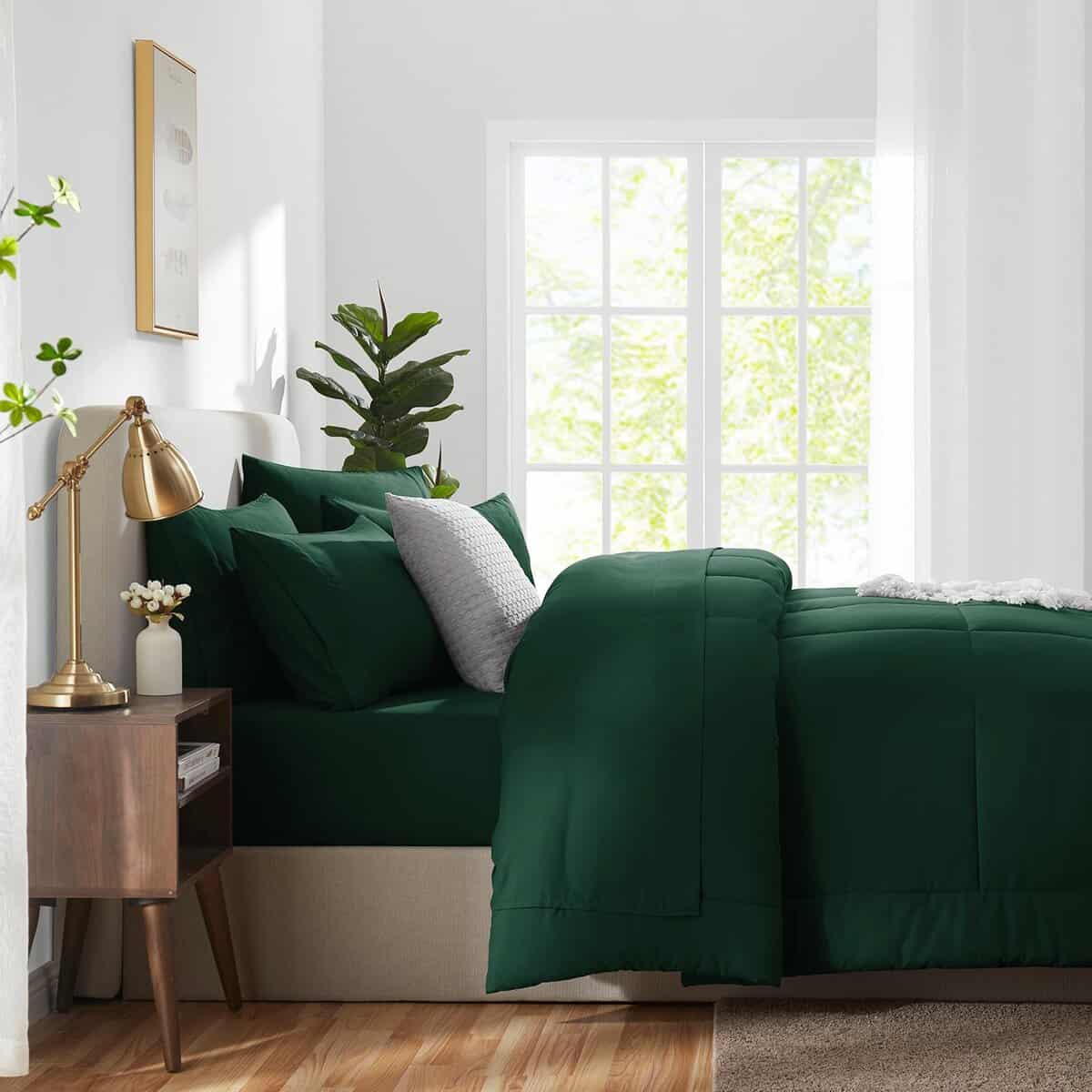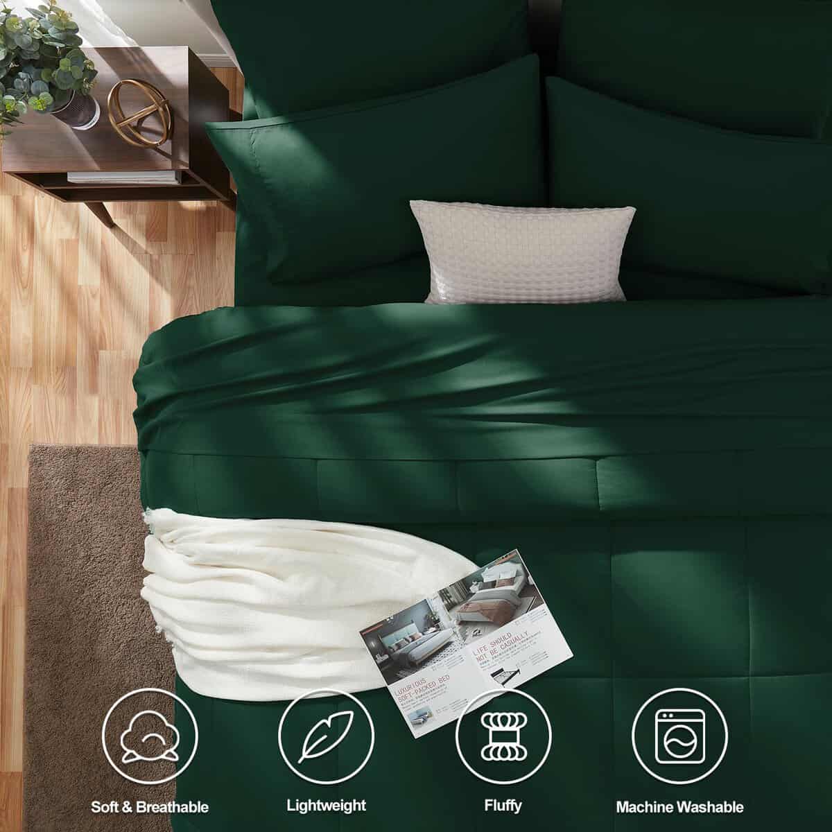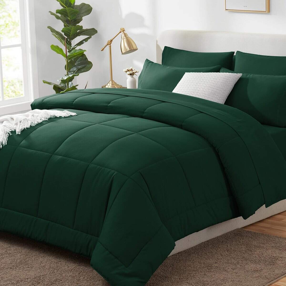 CozyLux Emerald Green Comforter Queen Set 7 Piezas Bed in a Bag Dark Green Comforters Bedding Sets Queen with All Season Quilted Comforter, Flat Sheet, Fitted Sheet, Pillowcases