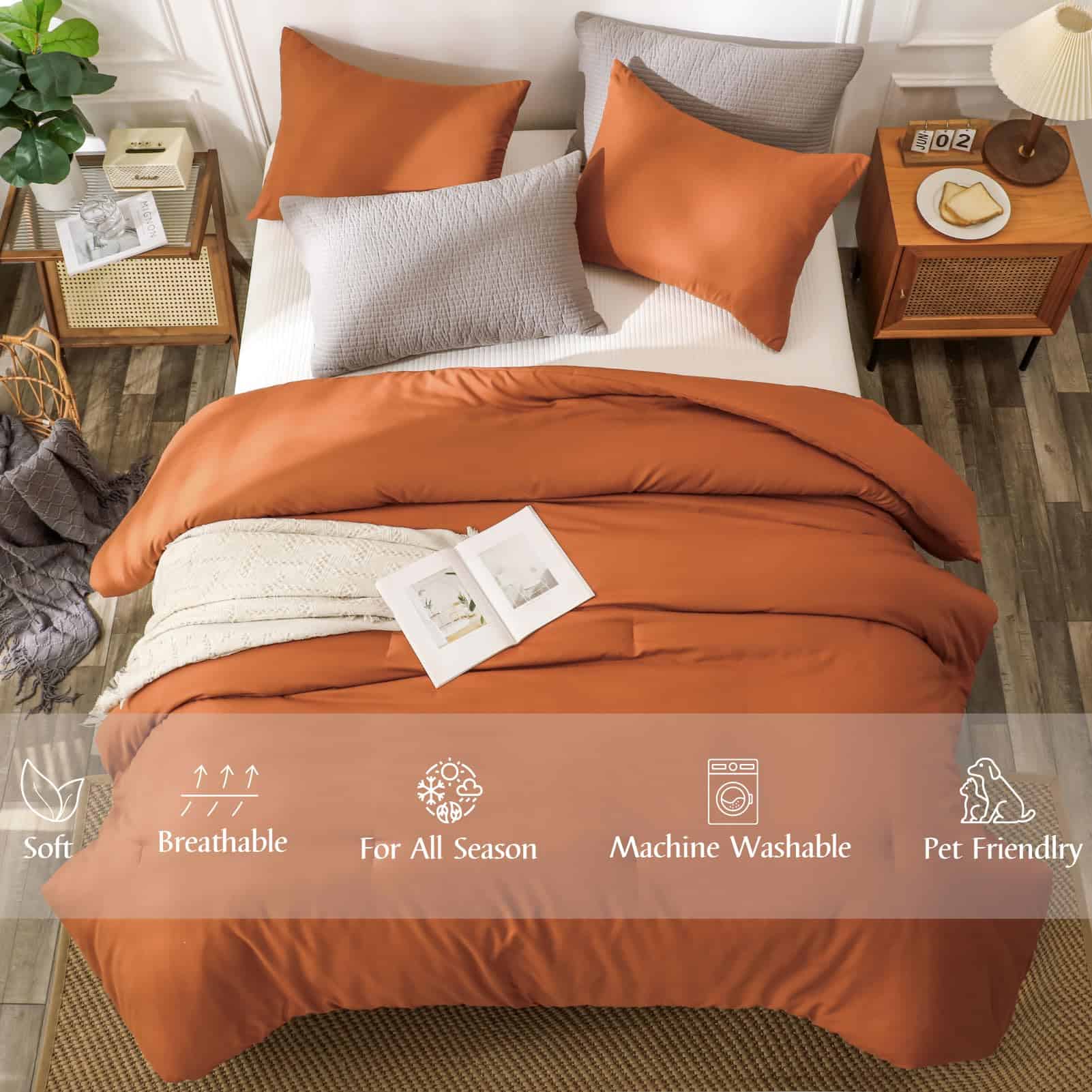 Este lujoso set de edredón está diseñado para ofrecer comodidad y estilo a su habitación. Hecho a mano con 100% algodón, este juego incluye un edredón tamaño queen, perfecto para su cama. El color naranja quemado le dará un toque vibrante a la decoración de su dormitorio. ¡Consiga este set de edredón y transforme su dormitorio en un espacio acogedor y elegante!