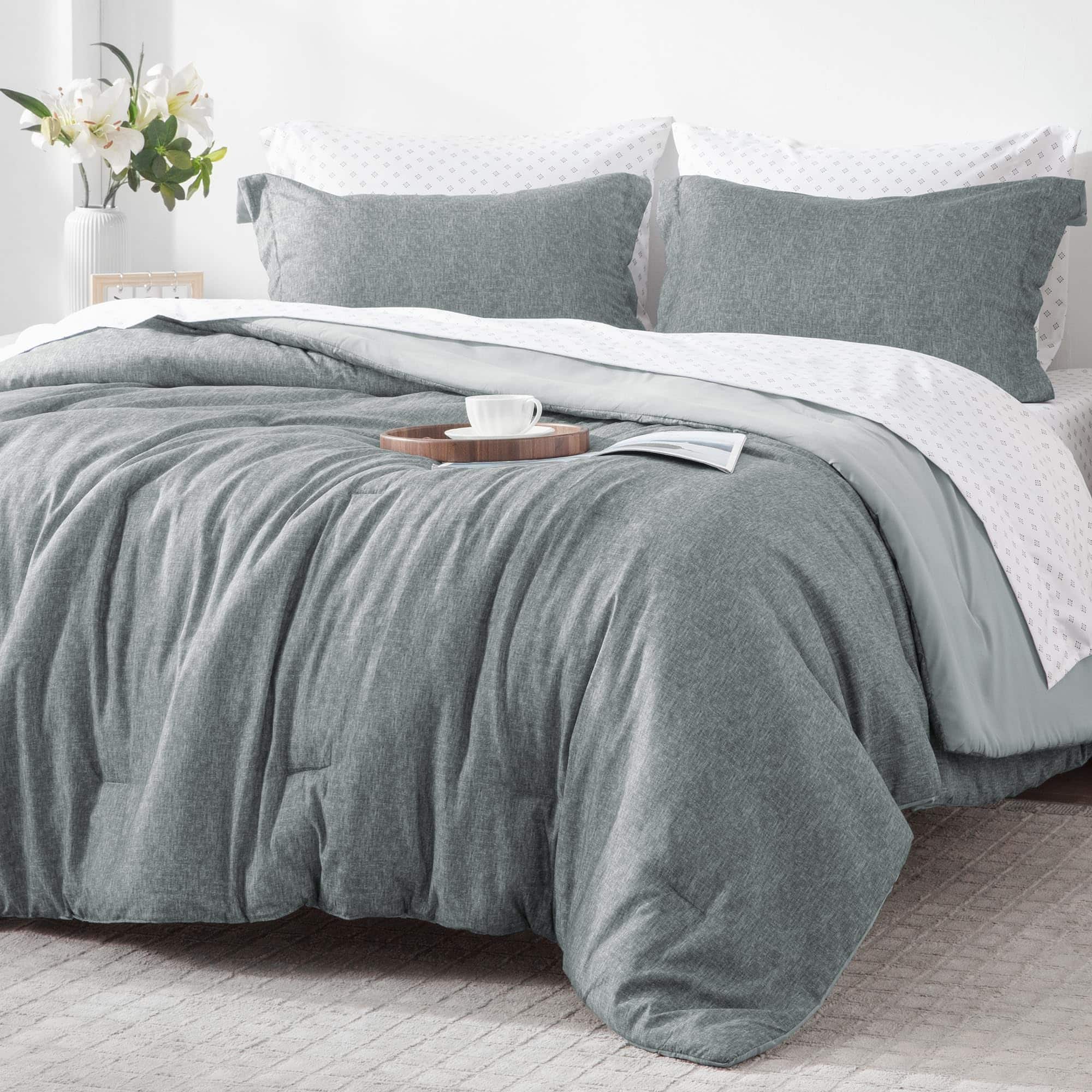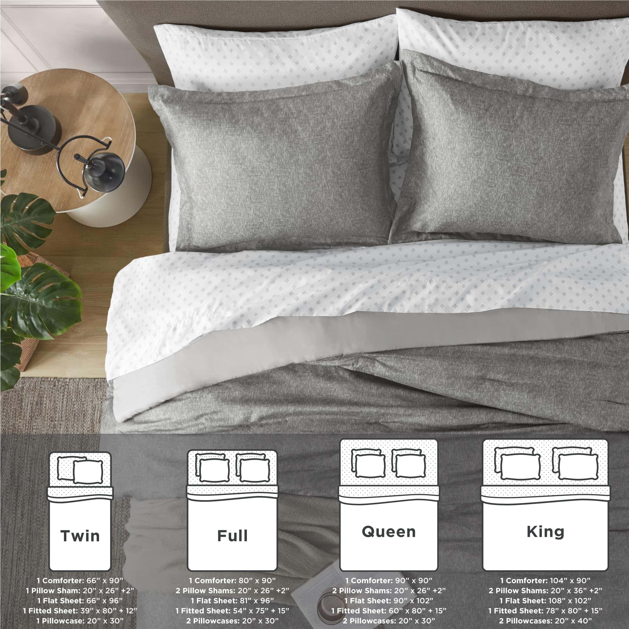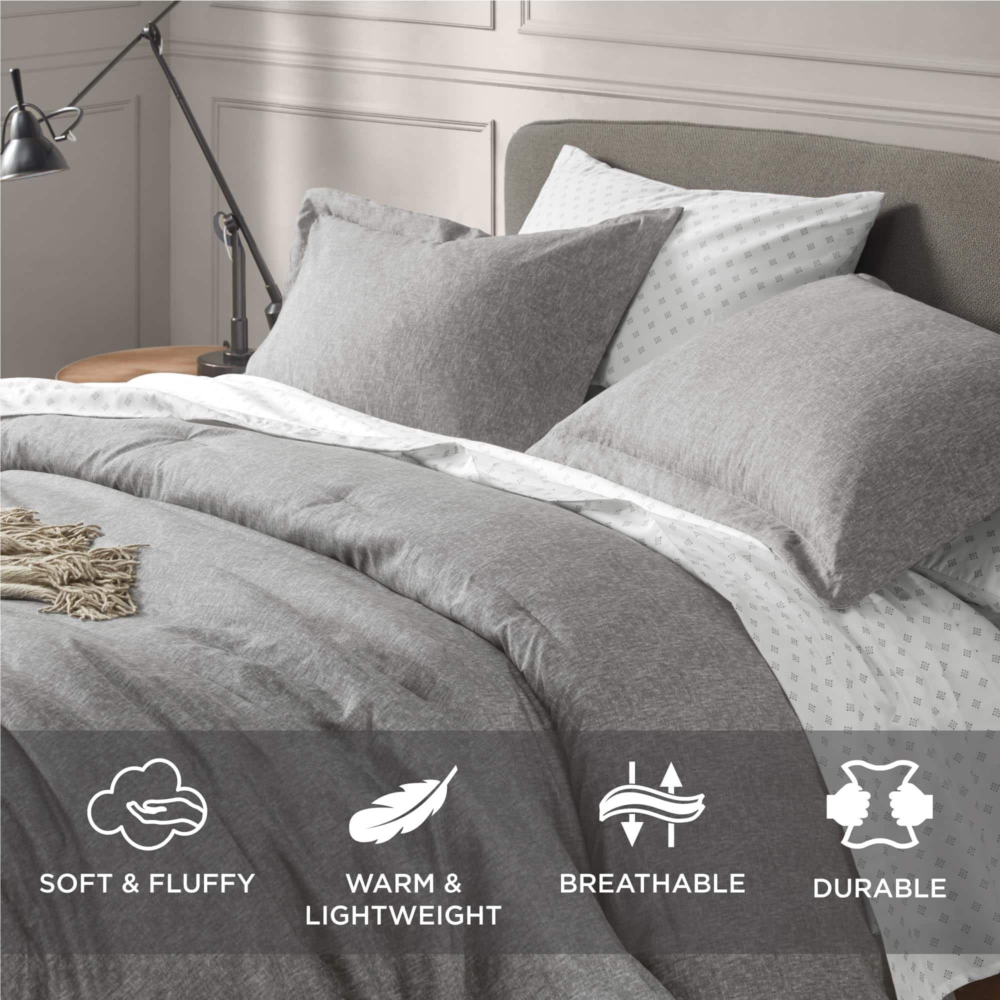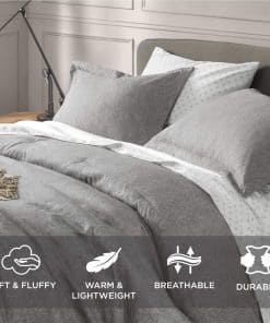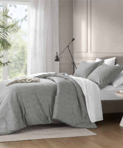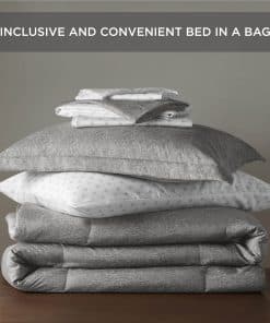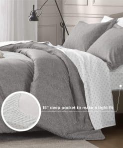 Este juego de edredón de 7 piezas en tamaño queen está diseñado para brindarte comodidad y estilo. Con un moderno diseño impreso tipo chambray en tono gris, este conjunto de ropa de cama neutral agrega un toque de elegancia casual a tu dormitorio. La suavidad increíblemente confortable y frescor en la piel proporcionados por el material de alta calidad te ayudarán a relajarte y descansar cómodamente todas las noches. Además, este juego de cama ha sido certificado por OEKO-TEX, asegurando que está libre de materiales dañinos y cumple con altos estándares de seguridad. El set incluye un edredón de 90″ x 90″, 2 fundas de almohada de 20″x26″, 2 fundas de almohada de 20″ x 30″, una sábana ajustable de 60″ x 80″ + 15″ y una sábana plana de 90″ x 102″. Empacado en una bolsa al vacío con un bonito embalaje, este juego de cama también es una excelente idea de regalo para el Día de la Madre, fiestas de cumpleaños, y más. Mantenerlo limpio y fresco es fácil, ya que es lavable a máquina. Simplemente lávalo por separado en agua fría en un ciclo suave y seca a baja temperatura para mantener la suavidad y evitar el apelmazamiento.