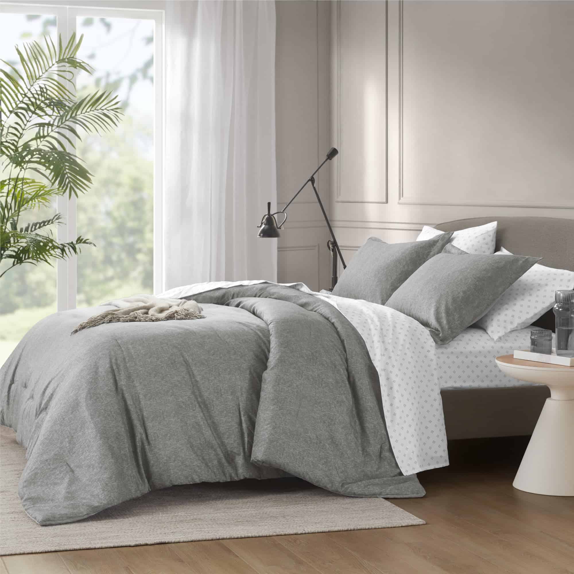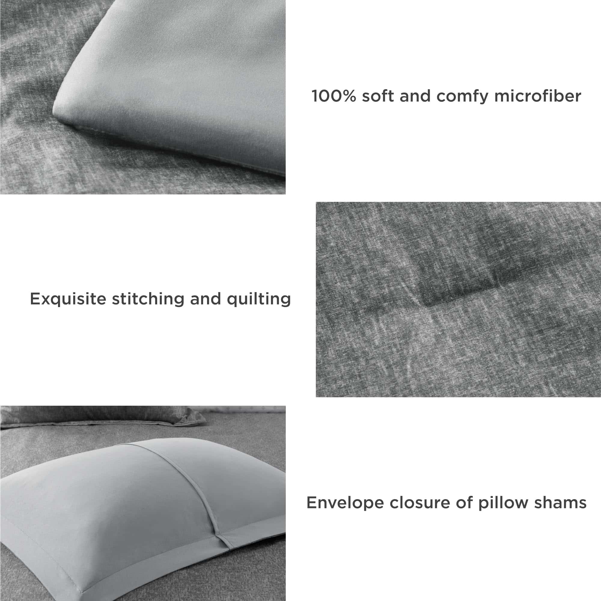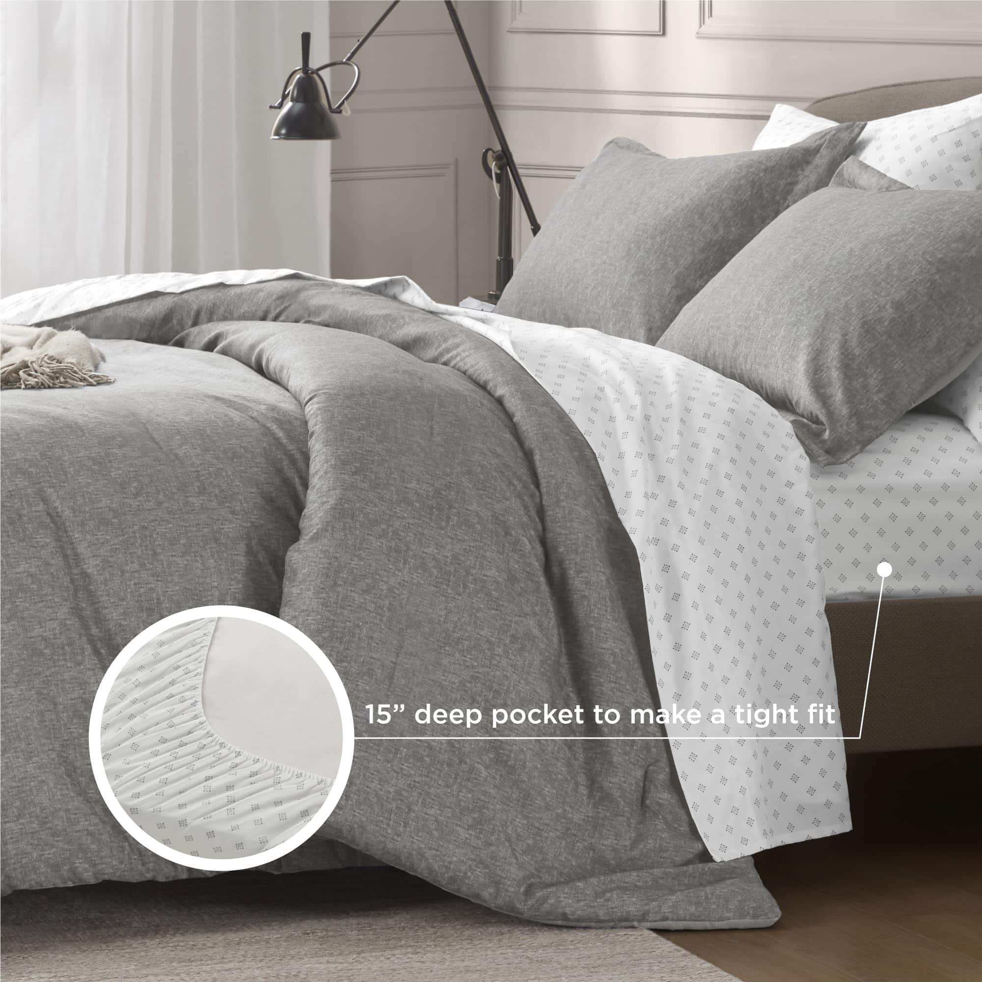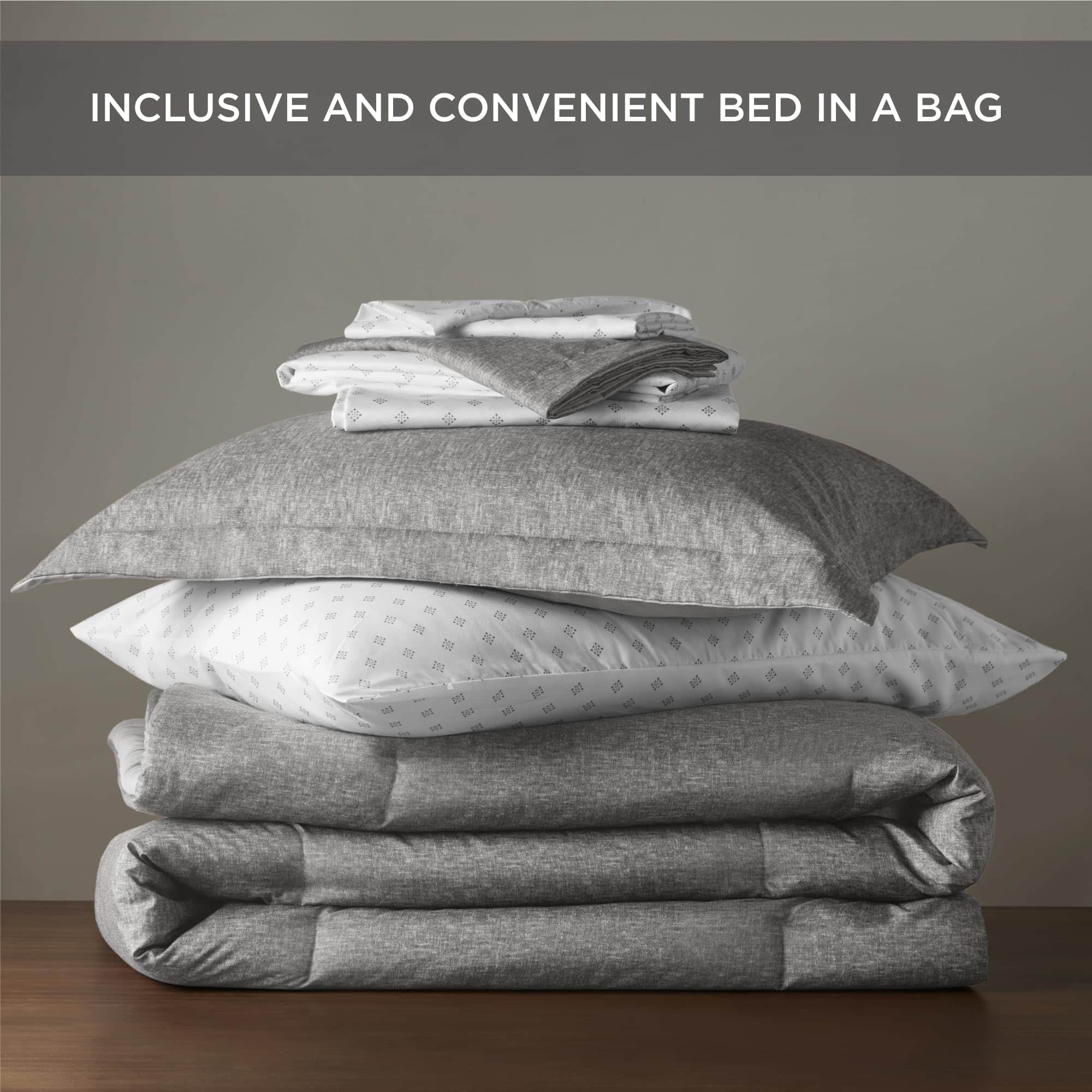 Este juego de edredón de 7 piezas en tamaño queen está diseñado para brindarte comodidad y estilo. Con un moderno diseño impreso tipo chambray en tono gris, este conjunto de ropa de cama neutral agrega un toque de elegancia casual a tu dormitorio. La suavidad increíblemente confortable y frescor en la piel proporcionados por el material de alta calidad te ayudarán a relajarte y descansar cómodamente todas las noches. Además, este juego de cama ha sido certificado por OEKO-TEX, asegurando que está libre de materiales dañinos y cumple con altos estándares de seguridad. El set incluye un edredón de 90″ x 90″, 2 fundas de almohada de 20″x26″, 2 fundas de almohada de 20″ x 30″, una sábana ajustable de 60″ x 80″ + 15″ y una sábana plana de 90″ x 102″. Empacado en una bolsa al vacío con un bonito embalaje, este juego de cama también es una excelente idea de regalo para el Día de la Madre, fiestas de cumpleaños, y más. Mantenerlo limpio y fresco es fácil, ya que es lavable a máquina. Simplemente lávalo por separado en agua fría en un ciclo suave y seca a baja temperatura para mantener la suavidad y evitar el apelmazamiento.