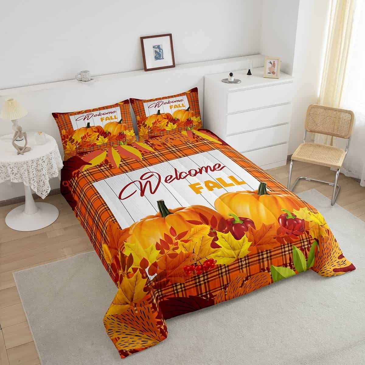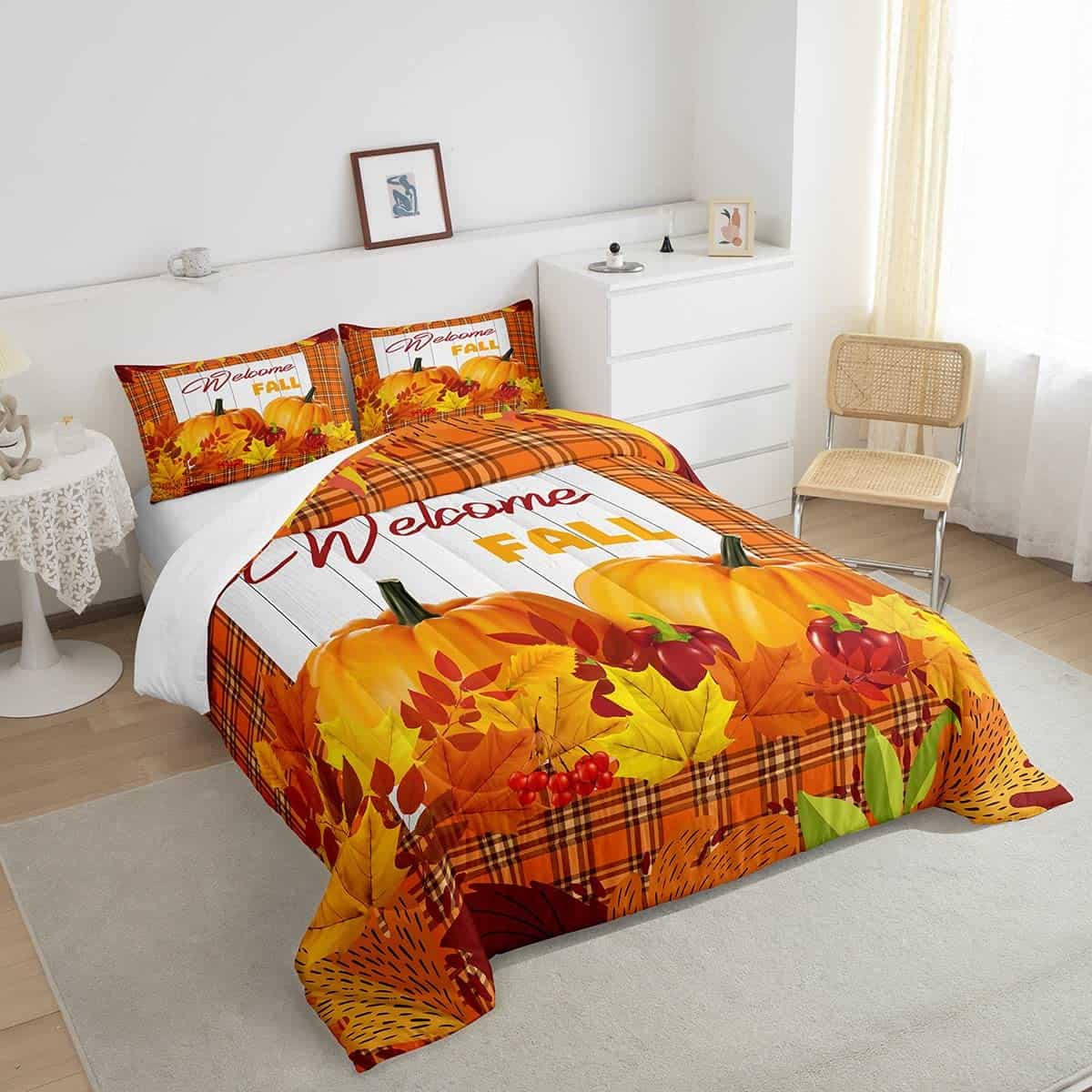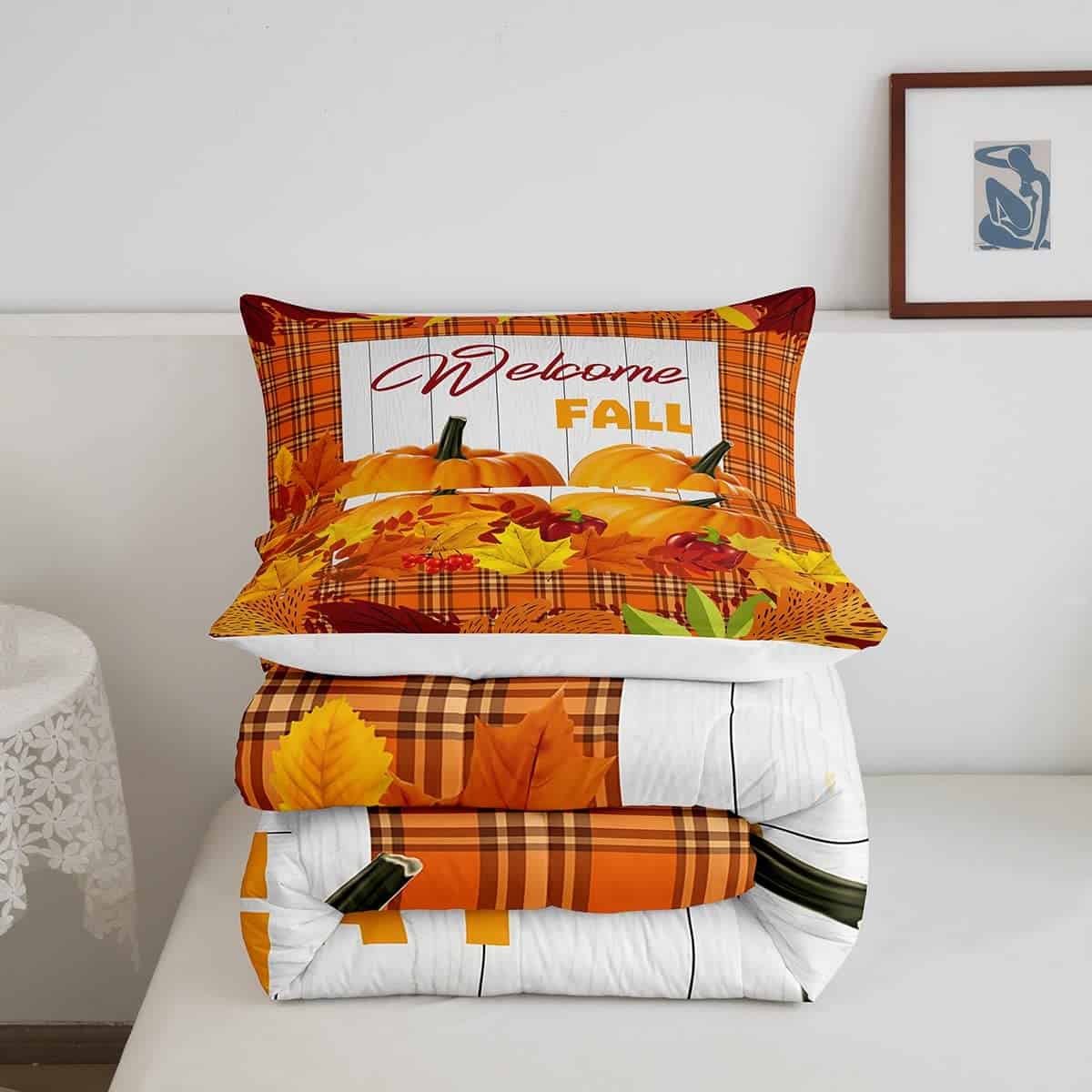 Set de edredón de calabaza para cama King Happy Fall Juego