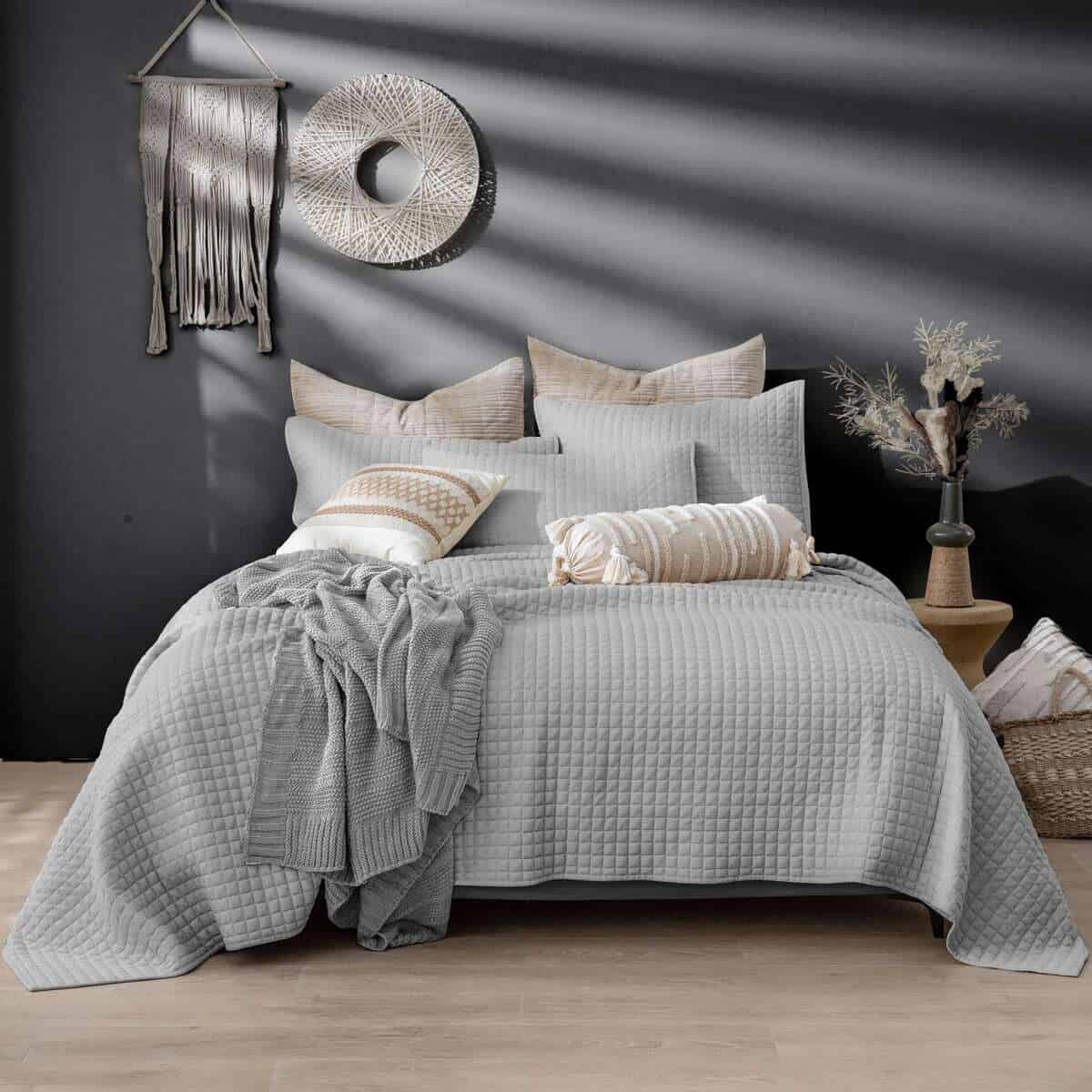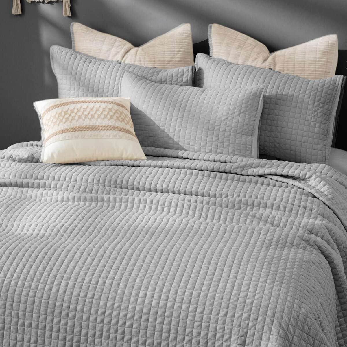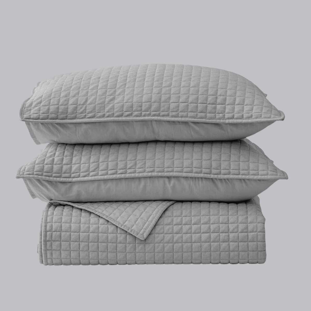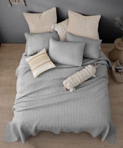 Set de Edredón de Gofre Gris Claro Maravilloso con Fundas