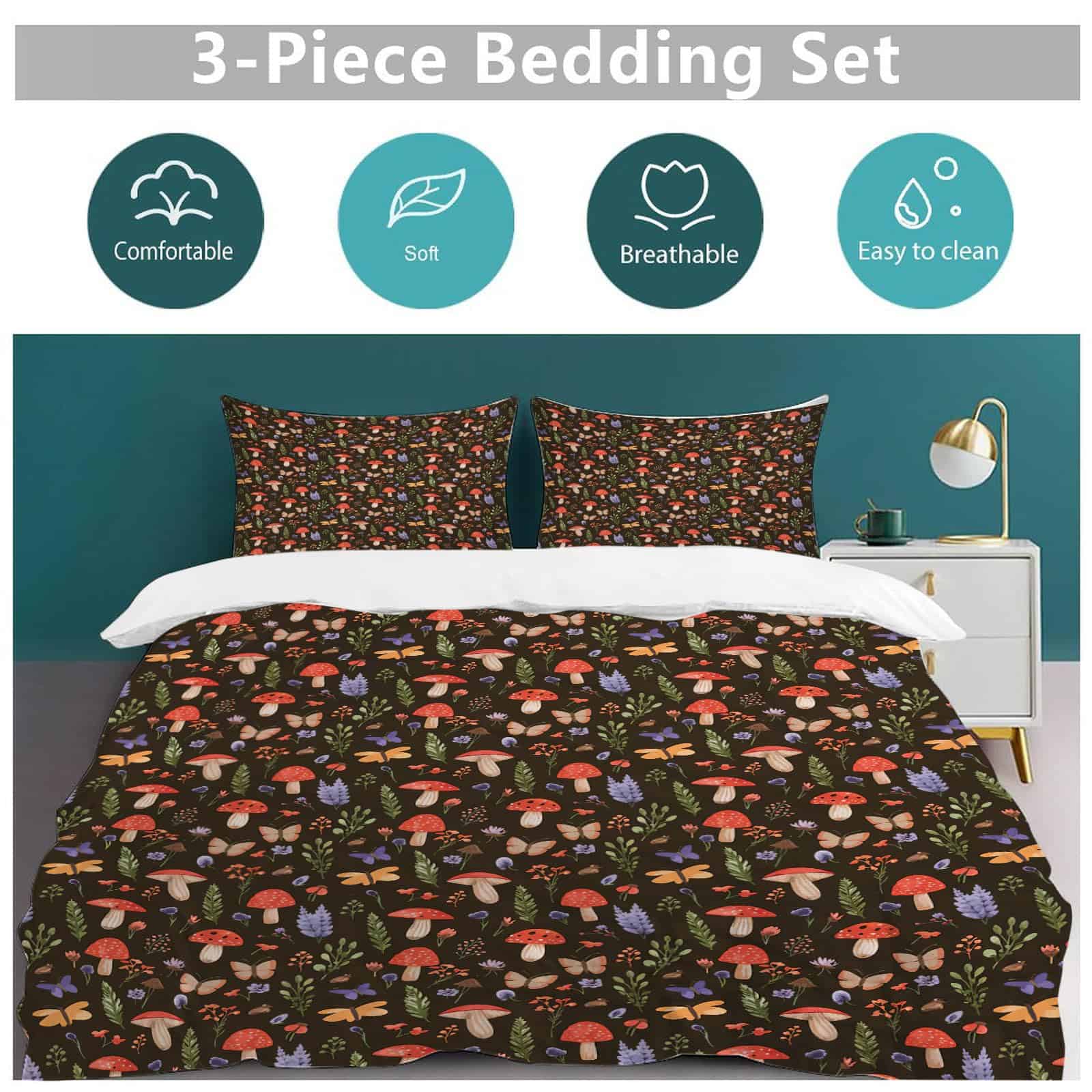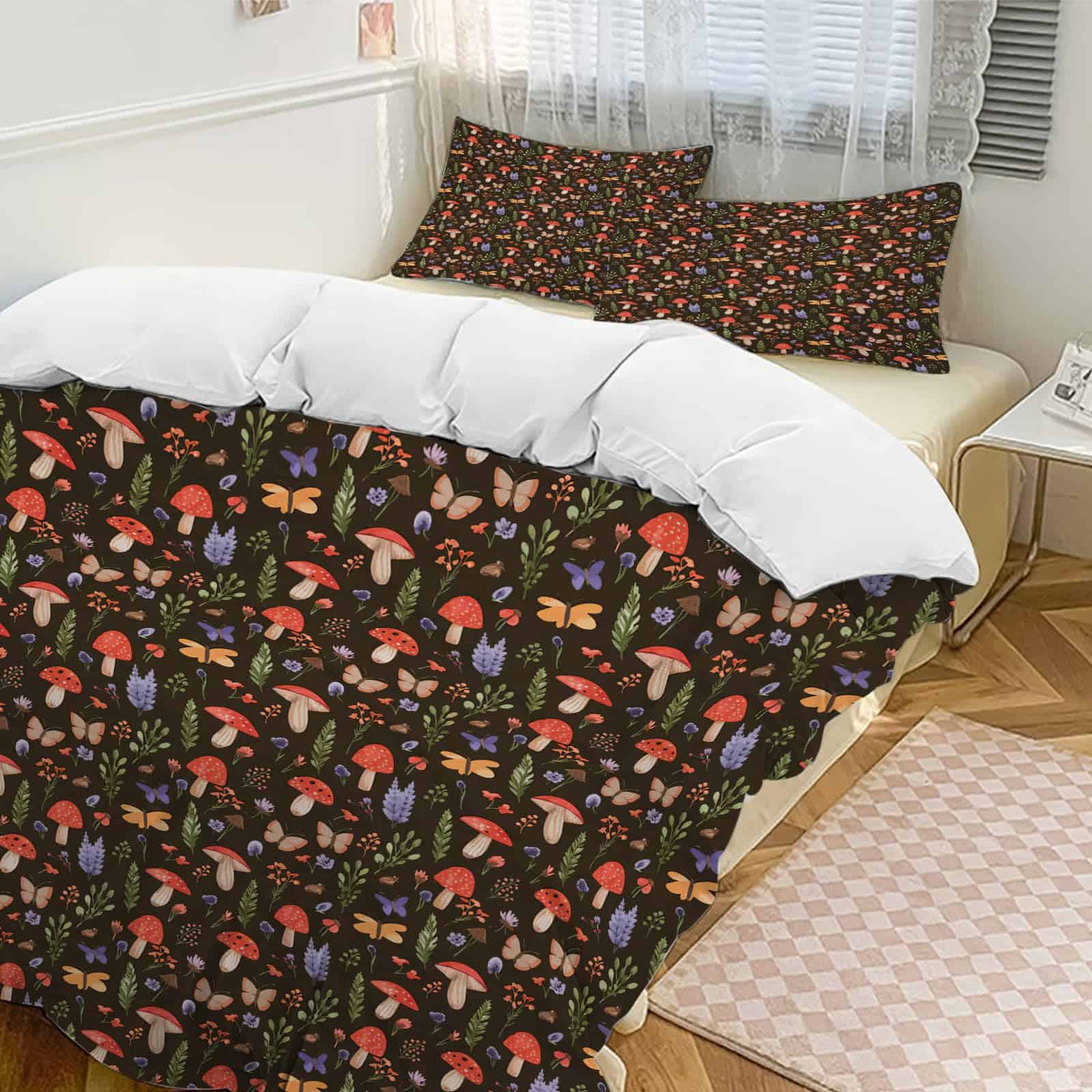 Set de Edredón de Hongo Rojo Tamaño Individual, Funda de