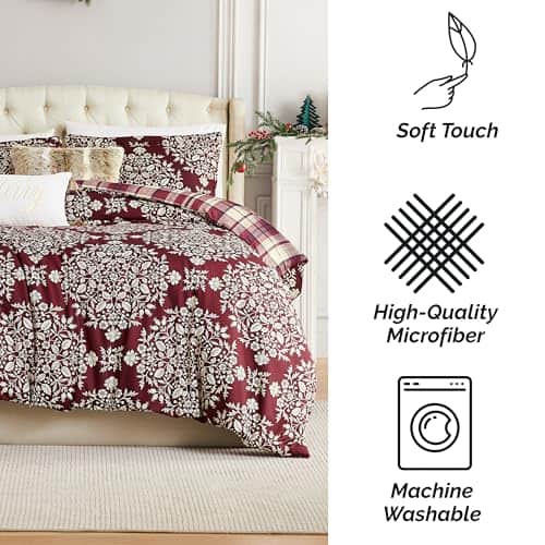 1. SET DE CAMA EN UNA BOLSA DE NAVIDAD DE TAMAÑO COMPLETO/QUEEN: Dale el toque final a tu conjunto de ropa de cama navideña con este acogedor edredón, cojines decorativos y set de fundas navideñas que pondrán a tu familia e invitados en el espíritu navideño! Impresionante transformación de la ropa de cama navideña.
