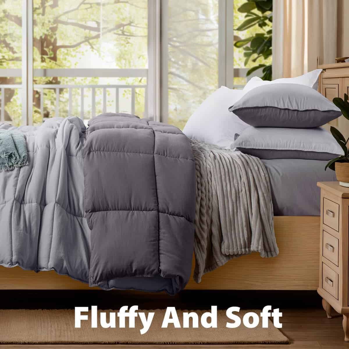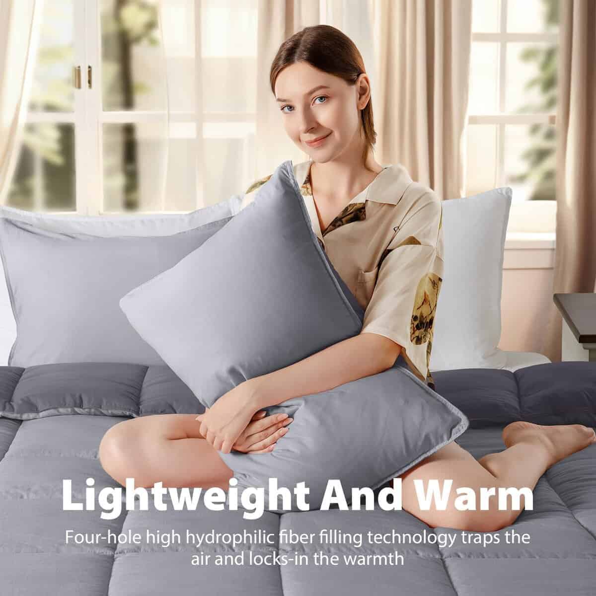 3. Relleno Hipoalergénico Alternativo al Plumón: Lleno de fibra alternativa premium al plumón, puedes usarlo como un edredón de plumón. Este edredón ofrece una suavidad y confort excepcionales sin los alérgenos asociados con un inserto de plumón. La tecnología de fibra avanzada garantiza una esponjosidad y calor duraderos, haciéndolo ideal para aquellos con alergias o sensibilidades.