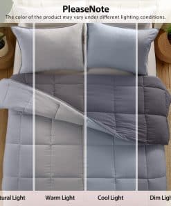 1. Set de Edredón de Tamaño Queen: Este set de ropa de cama de 3 piezas incluye un edredón de tamaño queen que mide 88″x90″ y dos fundas de almohada a juego de 21″x27″. Elaborado con una tela ultra suave y duradera, este set cuenta con un diseño moderno y elegante en Gris Cuarzo/Grava Gris, perfecto para realzar cualquier decoración de dormitorio.