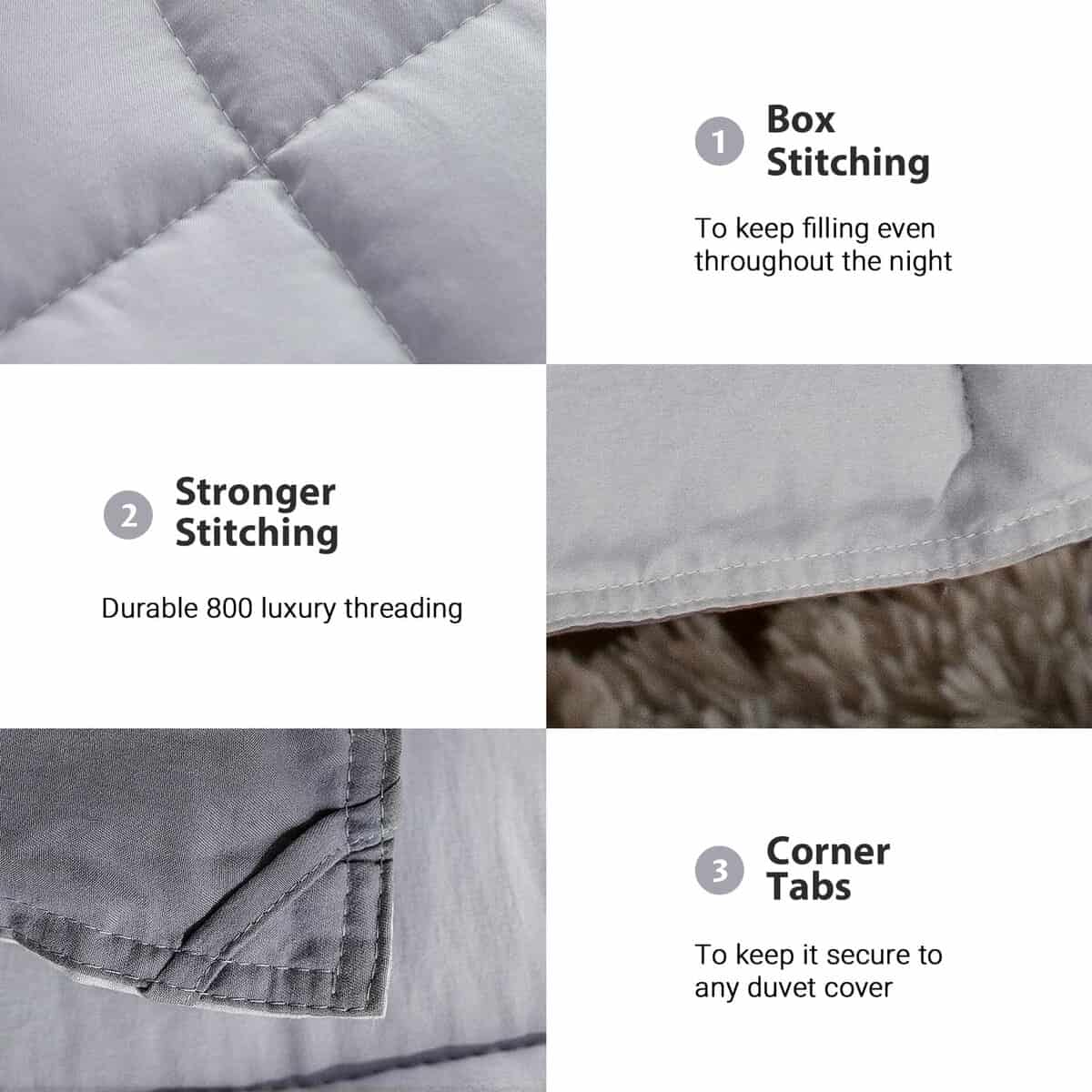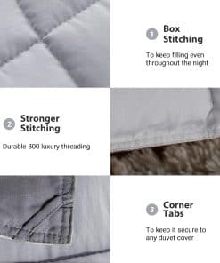4. Construcción con Costura en Cuadros: La elegante construcción con costura en cuadros no solo agrega un toque sofisticado, sino que también asegura que el relleno de fibra se distribuya uniformemente y evita que se desplace. Este diseño mejora la durabilidad del edredón y proporciona una sensación lujosa para una noche de descanso reparador.