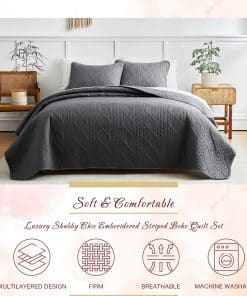 Set de Edredón de Verano Gris Sólido de 3 Piezas Tamaño