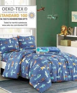 1. DISEÑO: Juego de edredón con estampado de aviones para la habitación de los niños. Ropa de cama temática de aviones suaves con un vibrante estampado de aviones. El lado frontal es estampado de aviones en cielos azules y el reverso es azul sólido. También viene con sábana ajustable y funda de almohada e incluye una almohada de forma de avión de peluche para una buena noche de sueño. 2. Tamaño: Elija entre el juego de 4 piezas de tamaño individual o el juego de 5 piezas de tamaño completo. 3. Hecho en fábrica certificada por OEKO-TEX Standard 100, un sistema de certificación independiente que garantiza la confianza del cliente al garantizar que los textiles se prueban para sustancias dañinas y cumplen con altos estándares de seguridad del producto y ambientales. 4. Juego de 5 piezas de tamaño completo incluye: 1 edredón tamaño: 76 pulgadas de ancho x 86 pulgadas de largo + 1 sábana ajustable tamaño 54 pulgadas x 75 pulgadas + 12 pulgadas + 1 almohada de peluche + 2 fundas de almohada de 20 pulgadas x 26 pulgadas. 5. Material: El material del juego de edredón de microfibra es súper suave y duradero. Mantiene a los niños cálidos y acogedores toda la noche y mientras acampan. Este juego de cama de alta calidad es bueno para cualquier dormitorio de niños, niñas o adolescentes. Los estampados y colores son vibrantes y se pueden lavar en la lavadora y secadora sin preocuparse de que se desvanezcan. 6. Instrucciones de cuidado: -lavar antes del primer uso -lavar a máquina en agua fría -ciclo suave -secar a baja temperatura -no usar lejía -no limpiar en seco
