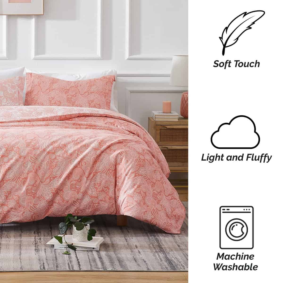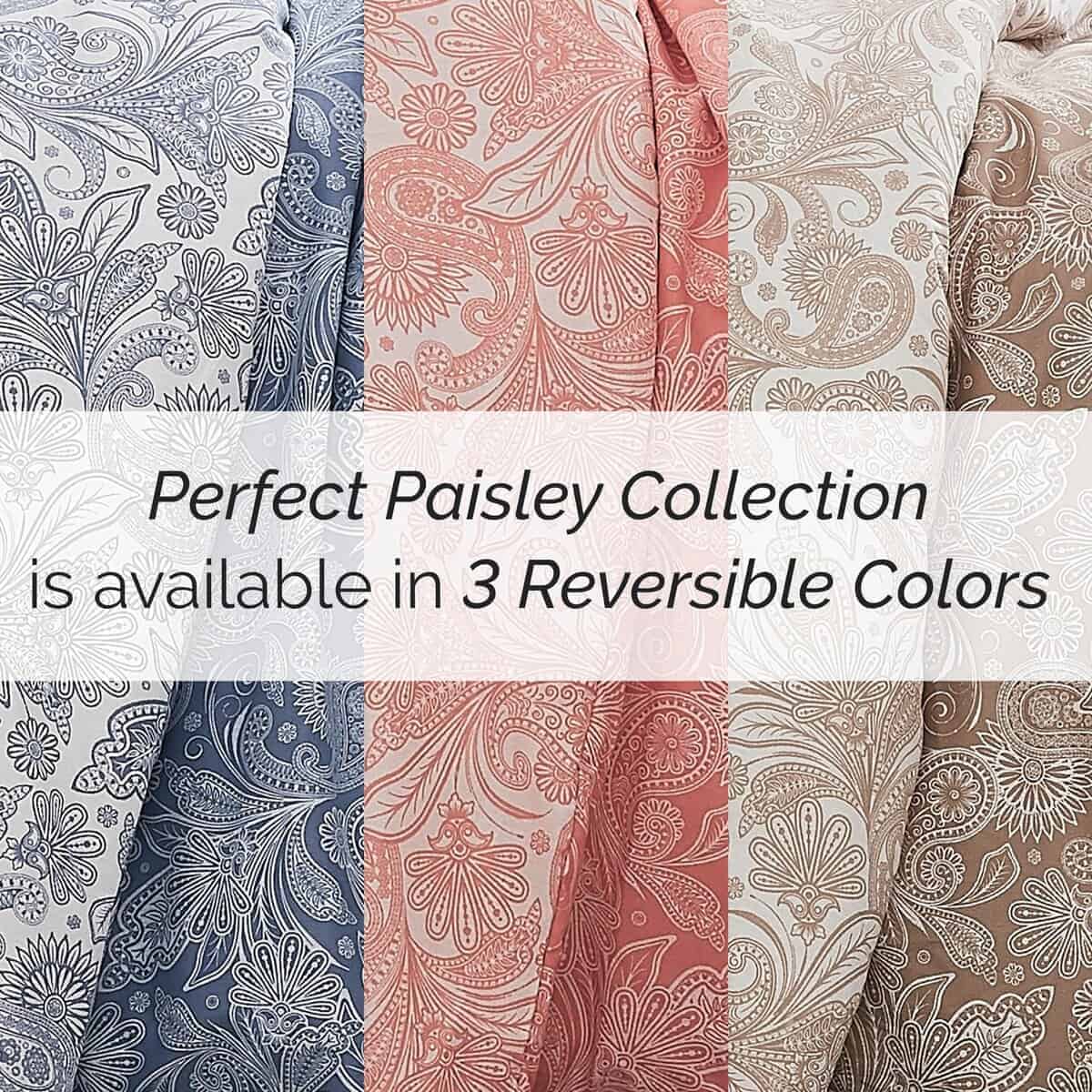 2. EDREDÓN REVERSIBLE CON DOS DISEÑOS EN UNO: Combina los edredones completos con las fundas a juego o utiliza los lados opuestos para dar un toque de color a la decoración de tu dormitorio. Este set de colcha de tamaño queen/full con alternativa a plumas es una parte acogedora de nuestra colección de ropa de cama paisley.