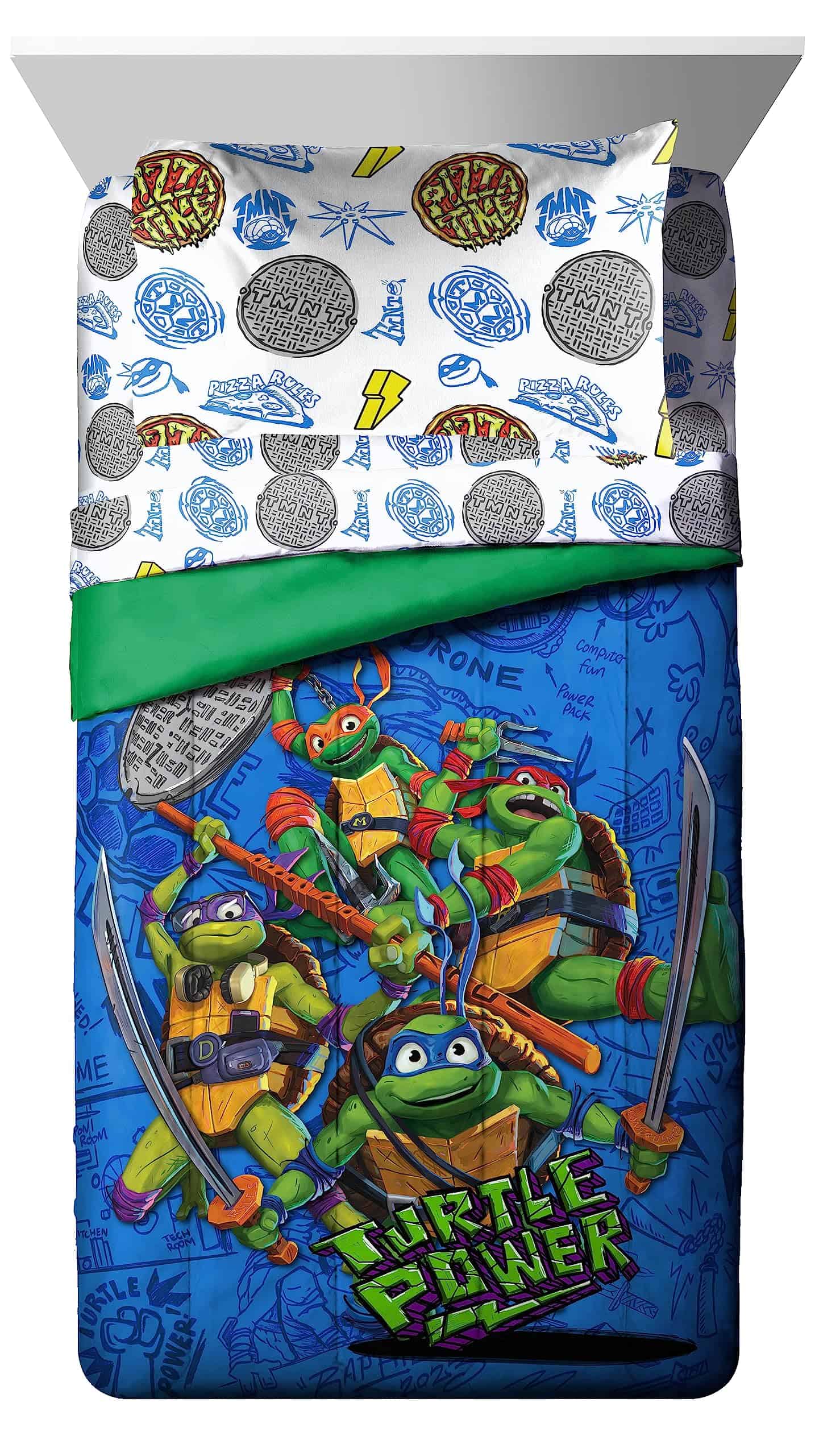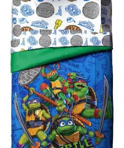 El Set de Edredón Gemelo Jay Franco Nickelodeon Teenage Mutant Ninja Turtles es perfecto para los fanáticos de estos personajes. El set incluye una variedad de piezas, como edredón, sábanas, fundas de almohada y fundas de almohada, todos con diseños de los Teenage Mutant Ninja Turtles. Hecho con microfibra de poliéster cepillado al 100%, este conjunto de cama es suave al tacto y fácil de cuidar. Además, el diseño está oficialmente licenciado por Nickelodeon para una autenticidad garantizada. Combina este set con otros productos de ropa de cama y decoración de Teenage Mutant Ninja Turtles para completar el look de la habitación de tu pequeño fanático.